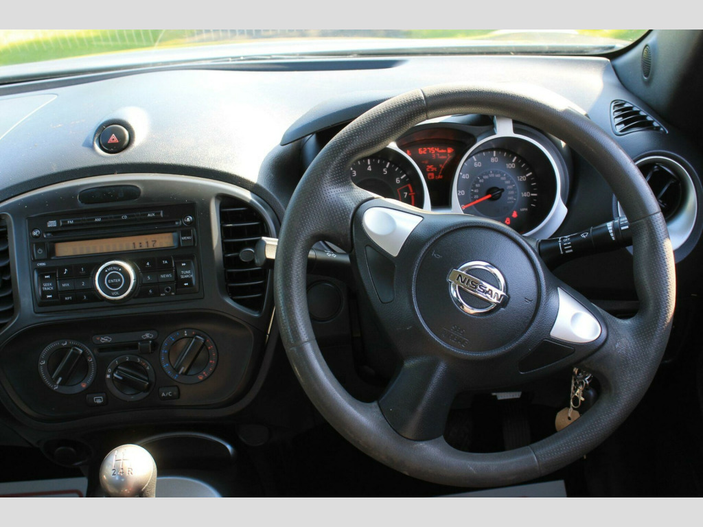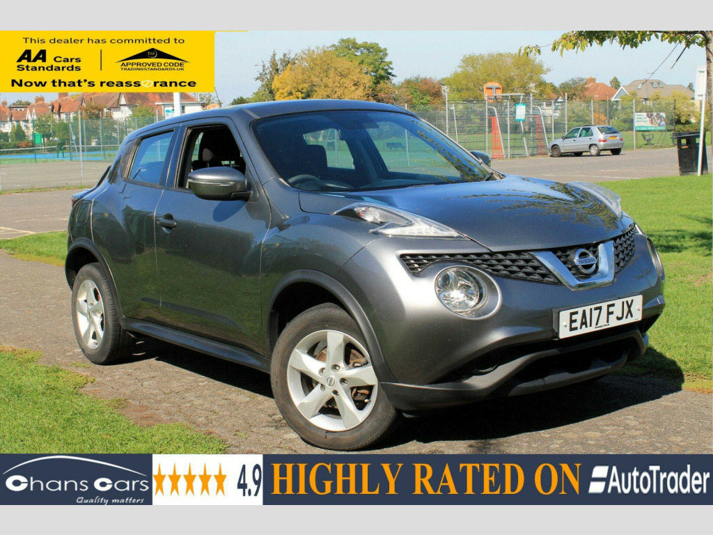 2017 Nissan Juke 1.6 Visia SUV 5dr Petrol Manual 62760 Miles ,1 previous owner, Service history With Recent Service ,MOT--19/09/2026, In built BLUETOOTH FOR PHONES ,USP PORT, Aux in, air con, alloy wheels, Immobiliser, Child locks & Isofix system , Cruise control ,Electric front/rear windows, Radio + CD ,climate control, PAS, Alarm,3 Months Warranty ,5 Day Driveway Insurance , HPI Clear , cards accepted, Finance arranged More cars at CHANSCARS.CO.UK .Viewing possible 7 days a week call 07548722574. 12V Socket - Front, 16in Alloy Wheels, 2 Speed Wiper with Variable Intermittent, 3 Adjustable Rear Head Restraints, 60-40 Split Rear Folding Seats, AUX Socket for MP3 Player, Airbag - Driver, Airbag - Front Passenger, Airbags - Curtain, Airbags - Side, Black Door Handles, Body-Coloured Door Mirrors with LED Indicators, Boot Capacity with Flexi-Floor Board, CD Radio with 4 Speakers, Drive Computer with Temperature Gauge, ESP ABS EBD and Brake Assist, Electric Adjustable Door Mirrors, Engine Immobiliser, Front Cupholders x2, Front Door Pockets with Drinks Bottle Holders, Front Map Reading Lights, Front Seat Belt Height Adjustment, Front Seat Belts with Load Limiter and Pretensioners, Front and Rear Electric Windows, Gear Shift Indicator, Glovebox, Grey Centre Console-Door Trim Finishers, Headliner - Grey, Height Adjustable Driver Seat, ISOFIX Child Seat Anchoring Points, LED Signature Daytime Running Lights, Manual Air Conditioning, Passenger Airbag Cut-Off Switch, Power Assisted Steering - Speed Sensitive, Puncture Repair Kit, Rear Door Child Locks, Rear Tonneau Cover Integrated into Tailgate, Rear Wiper with Intermittent, Remote Central Locking, TPMS - Tyre Pressure Monitoring System, Tilt Adjustable Steering Wheel, Traction Control. Part service history
