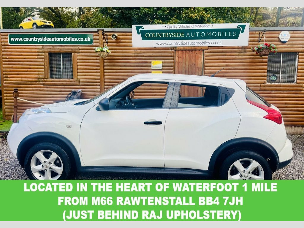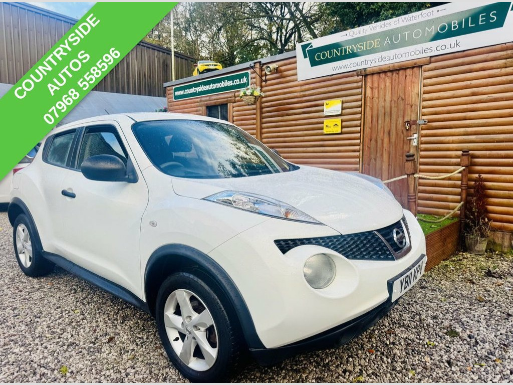 Clean and tidy example of the very sought after 1.6 Nissan Juke Visia. Represents good value for money. JUST HAD A FULL SERVICE WITH NEW DISCS AND PADS AND A NEW MOT. Good specification with Alloy wheels, Air conditioning, and Electric windows and finished in best colour White with contrasting velour trim. Comes with part service history, 2 keys and full book pack. 3 months parts warranty with an option to upgrade to 12 months parts and labour for £199 Arctic White, 12V Socket - Front, 16in Alloy Wheels, 3 Adjustable Rear Head Restraints, 60-40 Split Rear Folding Seats, ABS - Anti Lock Brakes, AUX-In Socket, Air Conditioning, Airbag - Driver, Airbag - Front Passenger, Airbags - Side, Brake Assist, Bumpers - Body Coloured, Documents Glove Box, Drive Computer, Driver Seat Height Adjustment, EBD - Electronic Brakeforce Distribution, ESP - Electronic Stability Programme, Electric Door Mirrors, Electric Speed-Sensitive Power Steering, Engine Immobiliser, Front Cupholders x2, Front and Rear Electric Windows, ISOFIX Child Seat Anchoring Points, Passenger Airbag Cut-Off Switch, Rear Door Child Locks, Remote Central Locking, Single CD Radio, Tilt A