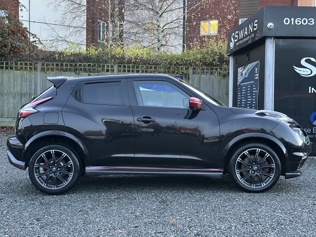 2015 Nissan Juke 1.6 DIG-T Nismo RS Petrol Manual 5 Door Hatchback Black , , - 49121 MILES. - 2 FORMER KEEPERS. - 265 POUNDS ROAD TAX PER YEAR. - TWO KEYS. - HPI CLEAR. - 3 SERVICE ENTRIES IN TOTAL. 2 OF WHICH NISSAN MAIN DEALER , , All of our retail vehicles are sold with the Swans Promise, and will go through our rigorous preparation process which includes:, - A minimum of 9 months MOT at point of sale. - No-obligation 2 Year Service Plan quote provided for every customer. - A routine service carried out, if due within next 3 months or 3,000 miles at point of sale. - Thorough safety check and road test carried out by our experienced vehicle technicians. Our on-site workshop takes pride in professionally preparing your new car to a satisfactory standard. - 3 Months Warranty (Upgrades available, please ask for details). - Full HPI Report - all of our cars are HPI checked. - Drive away insurance available, please ask for details, - We do not charge any admin fees*, , **PART EXCHANGE AVAILABLE** , , **PARTNERS WITH CLOSE BROTHER MOTOR FINANCE**, , **COMPETITIVE FINANCE OPTIONS AVAILABLE FOR ALL CREDIT PROFILES, APPLY BELOW AND GET ACCEPTED TODAY! **, , **BROKERS CHARGE FEES, WE DO NOT! TALK TO US FOR A NO-OBLIGATION QUOTE TO ENSURE YOU GET THE LOWEST MONTHLY PAYMENT POSSIBLE**, , **EVERY CAR RECEIVES A PROFESSIONAL VALET UPON ARRIVAL AND REFRESH PRIOR TO COLLECTION**, , **ASK ABOUT OUR UPGRADED VALETING OPTIONS**, , Swans Motor Group are proud to be a highly reputable, family run used vehicle dealership in the Norwich area. Having originally established our business in 2012, we have a friendly team who all benefit from previous main-dealer experience cited to assist you along the journey of purchasing your next vehicle. We have over 60 combined years of experience in various sectors of the motor industry, so you can rest assured that you are in safe hands with Swans. Customer satisfaction is our number one priority; therefore, we offer a stress-free, personable buying experience. We look forward to welcoming you to our business soon!, , We are located close to Norwich City Centre, at 231-245 Heigham Street, Norwich, NR2 4LN. , DISCLAIMER, Although we make every effort to ensure our advertised vehicle specifications are correct, due to being computer-generated, there can sometimes be errors. Please call us to verify any vehicle specifications if you are unsure or require clarification. , Admin fees may apply when using out-of-house finance companies/brokers Please contact us for details. We do not charge any admin fees for using our in-house finance options.