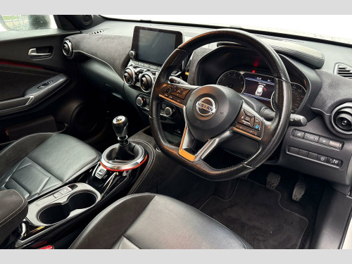 Further enhancing your driving experience, this Juke includes seamless integration with Android Auto and Apple CarPlay, allowing you to connect your smartphone with ease. The Advanced Safety Shield Pack offers sophisticated driver assistance, including Blind Spot Assistance, Adaptive Cruise Control, and a 360 degree camera for effortless parking. With an impressive fuel economy of 46 mpg and low CO2 emissions, this Nissan Juke offers a more economical and environmentally conscious choice compared to many other vehicles in its class, making it a smart and practical option for everyday driving. 19in Alloy Wheels - Akari, 2 x Cup Holder on Centre Console, 3 Adjustable Rear Head Restraints, 60-40 Split Rear Folding Seats, 7in Full Colour TFT Screen Combimeter, ABS with EBD and Brake Assist, Active Ride Control, Active Trace Control, Advanced Safety Shield Pack, Android Auto and Apple CarPlay, Auto Dimming Rear View Mirror, Automatic Air Conditioning, Automatic Hazard Signal and Emergency Stop Signal, Body Coloured Handles, Bose Personal Plus Audio System, Cabin Light Front and Rear, Chrome Interior Door Handles, Comfort Pack, DAB Radio, Design Pack, Door Ambient Lighting, Drive Modes - Sport-Normal-Eco, Driver and Passenger Sun Visor with Vanity Mirror, Driver-Passenger-Side and Curtain Airbags, ESP - Electronic Stability Programme, Electric Heated Auto-Folding Door Mirrors, Electric Parking Brake with Auto Hold Function, Emergency and Breakdown Call, Front Armrest, Front Bumper Finisher - Satin Silver, Front Door Pockets with Drinks Bottle Holders, Front Seat Back Pockets, Front Seat Belt Height Adjustment, Front and Rear Electric Windows with One Touch Driver Window, Front and Rear Seatbelt Reminder, Gear Console Ambient Circle Lighting, Grab Handles Passenger and Rear, Headlights - Follow Me Home Function, Headlights - High Beam Assist, Heat Pack, Height Adjustable Driver Seat, Hill Start Assist, ISOFIX Child Seat Anchoring Points - Rear x2, Intelligent Emergency Braking with Pedestrian and Cyclist Recognition, Intelligent Key with Start Push Button, Intelligent Lane Intervention and Warning, Interior Personalisation - Enigma Black, LED Daytime Running Lights, LED Headlights, LED Rear Fog Lights, LED Rear Lights, Leather Gear Knob, Leather Steering Wheel, Luggage Board System, Luggage Space Lighting, Monoform Sporty Seats, Multifunctional Steering Wheel, NissanConnect 8in Touchscreen Entertainment System, Outside Temperature Sensor, Parking Sensor - Front, Passenger Seat Height Adjustment, Power Assisted Steering, Rear Coat Hanger - Drivers Side, Rear Console USB Port, Rear Parking Sensors, Rear Spoiler, Speed Limiter, Syntech Leather Knee Pad, TPMS - Tyre Pressure Monitoring System, Telescopic Steering Wheel Adjustment, Three Blink Turn Signal, Traffic Sign Recognition, Tyre Repair Kit, USB-AUX Socket Input and Bluetooth Connectivity, VDC - Vehicle Dynamic Control, Welcome Light and Console Tray Ambient Lighting, WiFi and Voice Recognition