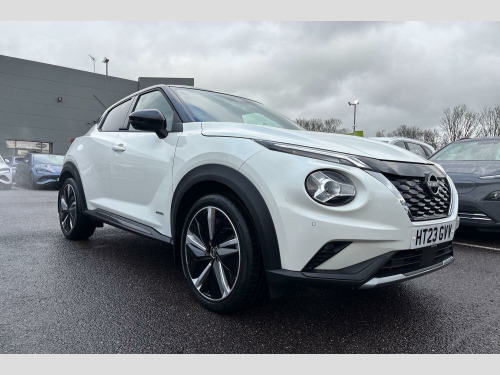 This 2023 Nissan Juke Tekna+ presents an exceptional opportunity with its remarkably low mileage of just 7770 miles, a testament to its careful single ownership. This stylish Tekna+ variant is powered by an efficient 1.6L Petrol Hybrid engine, meeting Euro 6 emission standards. It comes equipped with a desirable Heat Pack, ensuring comfort with heated seats and a heated steering wheel, alongside the advanced ProPilot Pack which includes Blind Spot Assistance, Adaptive Cruise Control, and a 360 Degree Camera for effortless parking. Further enhancing convenience are rear parking sensors and bright LED headlights, while seamless smartphone integration is provided through Apple CarPlay and Google Android Auto.