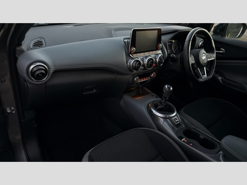 Nissan Juke 1.0 DiG-T 114 N-Connecta 5dr 7" full colour TFT screen combimeter, Apple CarPlay and Google Android auto, Drive modes select (Eco, normal and sport), eCall emergency call system, Emergency and breakdown call, Front parking sensor, Idle start/stop system, Intelligent lane intervention, Lane departure warning system, Nissan connect 8" touch screen entertainment system, Nissan connect nav with TomTom traffic, Nissan connect services and Wifi connection, Outside temperature sensor, Power Steering, Rear parking sensor, Traffic sign recognition, Trip computer, Voice recognition, Gasoline particulate filter, 6 speakers, Bluetooth system, USB, Aux-in and 12V socket, DAB Digital radio, Rear console USB port, Auto dimming interior rear view mirror, Auto headlights, Automatic hazard signal with emergency stop signal, Body colour bumpers, Body colour door handles, Electrically adjustable door mirrors with integrated indicators, Follow me home headlights, Front and rear electric window with one touch driver window, Heated and auto folding door mirrors, High beam assist, LED daytime running lights, LED headlamps, LED rear fog lamp, LED rear lamps, Rain sensor windscreen wipers, Rear privacy glass, Rear side wing doors, Rear wiper, Three blink turn signal, 3 height adjustable rear headrests, 3 seat bench in 2nd row, 60/40 split folding rear seat, Automatic climate control, Card holder on driver sunvisor, Cloth upholstery, Driver and passenger sliding and reclining seats, Driver side rear coat hanger, Driver/passenger sunvisors and vanity mirrors, Front and rear cabin lights, Front armrest, Front door pockets with bottle holders, Front head restraints, Front/rear passenger grab handles, Grey synthetic leather kneepad, Height adjustable driver's seat, Internal chrome door handles, Leather gearshift knob, Leather steering wheel, Luggage board, Luggage space lighting, Monoform sporty seats, Multifunction steering wheel, Rear door bottle holders, Single front passenger seat, Telescopic steering wheel adjustment, Two cupholders in front centre console, Two rear isofix child seat anchorage points with top tether, Welcome light and console tray ambient lighting, ABS with EBD and brake assist, Active ride control, Active Trace Control, Driver and passenger airbags, Driver and passenger side airbags, Electric handbrake with auto hold function, Electronic Stability Programme (ESP), Front and rear curtain airbags, Height adjustable seatbelts, Hill start assist, Intelligent emergency braking with pedestrian and cyclist recognition, Rear door child safety locks, Seatbelt reminder for driver/front passenger and rear seats, Single tone horn, Three 3 point rear seatbelts, Traction control, Tyre pressure monitoring system, VDC Dynamic Vehicle Control, Ventilated rear brake discs, Alarm, Immobiliser, Intelligent Key with push button starter, Remote central locking