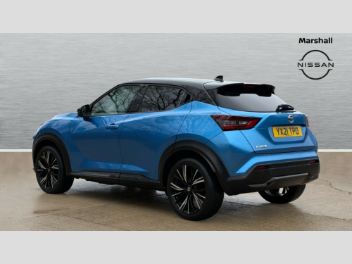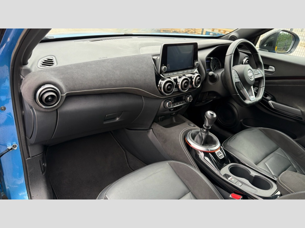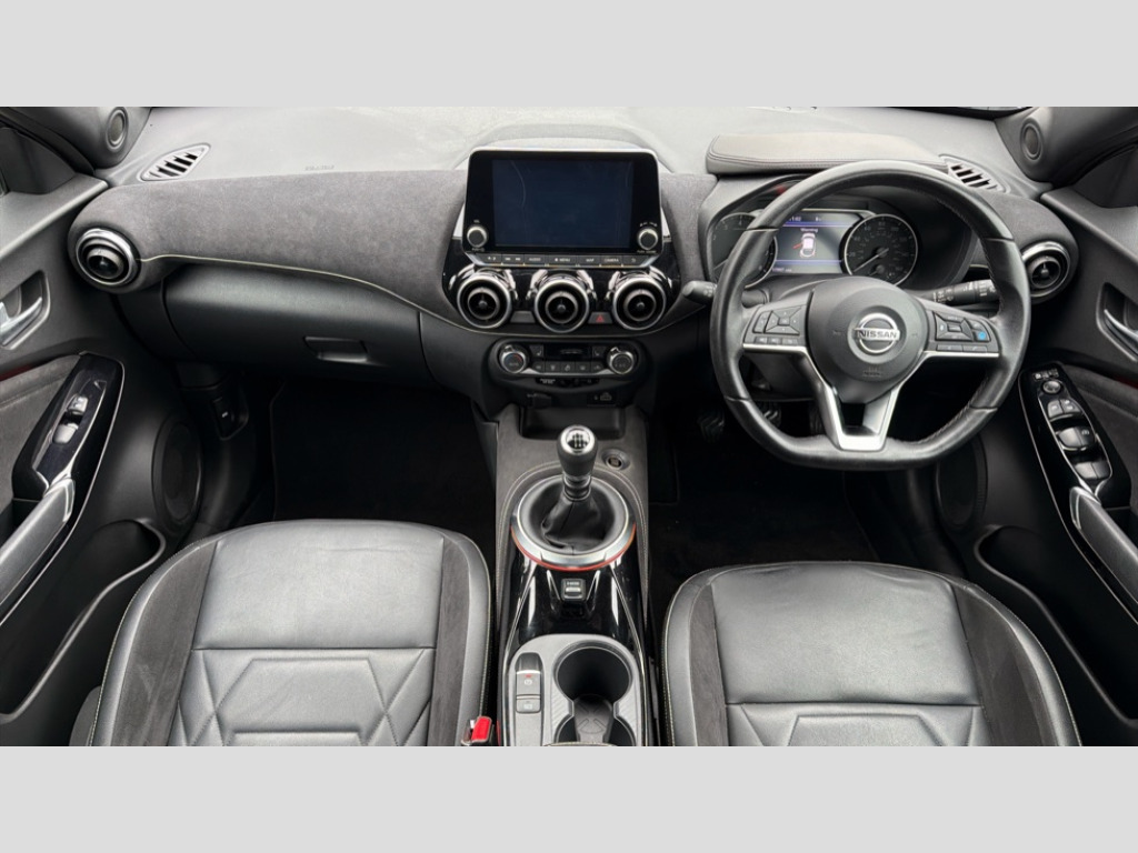 Nissan Juke 1.0 DiG-T 114 Tekna+ 5dr 7" full colour TFT screen combimeter, 8" infotainment colour display with touch screen, Apple CarPlay and Google Android auto, Drive modes select (Eco, normal and sport), Emergency and breakdown call, Front parking sensor, Idle start/stop system, Intelligent lane intervention, Lane departure warning system, Nissan connect nav with TomTom traffic, Nissan connect services and Wifi connection, Outside temperature sensor, Power Steering, Rear parking sensor, Traffic sign recognition, Trip computer, Gasoline particulate filter, Bluetooth system, USB, Aux-in and 12V socket, Bose personal plus audio system with 8 speakers(4 speakers and 2 headrest speaker for driver and passenger seats), Bose personal sound stage control, DAB Digital radio, Front lower bumper painted in silver finisher, Rear console USB port, Auto dimming interior rear view mirror, Automatic hazard signal with emergency stop signal, Body colour bumpers, Body colour door handles, Electrically adjustable door mirrors with integrated indicators, Follow me home headlights, Front and rear electric window with one touch driver window, Heated and auto folding door mirrors, High beam assist, LED daytime running lights, LED front fog lights, LED headlamps, LED rear fog lamp, LED rear lamps, Rain sensor windscreen wipers, Rear privacy glass, Rear wiper, Thermaclear heated windscreen, Three blink turn signal, 3 height adjustable rear headrests, 60/40 split folding rear seat, Automatic climate control, Card holder on driver sunvisor, Door ambient lighting, Driver and passenger sliding and reclining seats, Driver seat back pocket, Driver side rear coat hanger, Driver/passenger sunvisors and vanity mirrors, Front and rear cabin lights, Front armrest, Front door pockets with bottle holders, Front head restraints, Front passenger isofix child seat anchorage point, Front/rear passenger grab handles, Gear console ambient circle lighting, Grey synthetic leather kneepad, Heated front seats, Height adjustable driver's seat, Height adjustable passenger seat, Internal chrome door handles, Leather gearshift knob, Leather steering wheel, Luggage board, Luggage space lighting, Monoform sporty seats, Multifunction steering wheel, Passenger seat back pocket, Rear door bottle holders, Telescopic steering wheel adjustment, Two cupholders in front centre console, Two rear isofix child seat anchorage points with top tether, Voice recognition switch on steering wheel, Welcome light and console tray ambient lighting, Advanced safety shield pack - Juke, ABS with EBD and brake assist, Active ride control, Active Trace Control, Driver and passenger airbags, Driver and passenger side airbags, Electric handbrake with auto hold function, Electronic Stability Programme (ESP), Front and rear curtain airbags, Height adjustable seatbelts, Hill start assist, Intelligent emergency braking with pedestrian and cyclist recognition, Seatbelt reminder for driver/front passenger and rear seats, Single tone horn, Three 3 point rear seatbelts, Traction control, Tyre pressure monitoring system, VDC Dynamic Vehicle Control, Ventilated rear brake discs, Alarm, Immobiliser, Intelligent Key with push button starter, Remote central locking, 19" Akari alloy wheels