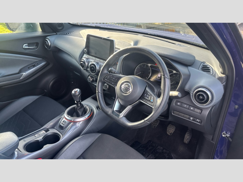 Nissan Juke 1.0 DiG-T 114 Tekna 5dr 7" full colour TFT screen combimeter, Apple CarPlay and Google Android auto, Drive modes select (Eco, normal and sport), eCall emergency call system, Emergency and breakdown call, Front parking sensor, Idle start/stop system, Intelligent lane intervention, Lane departure warning system, Nissan connect 8" touch screen entertainment system, Nissan connect nav with TomTom traffic, Nissan connect services and Wifi connection, Outside temperature sensor, Power Steering, Rear parking sensor, Traffic sign recognition, Trip computer, Voice recognition, Gasoline particulate filter, Bluetooth system, USB, Aux-in and 12V socket, Bose personal plus audio system with 8 speakers(4 speakers and 2 headrest speaker for driver and passenger seats), Bose personal sound stage control, DAB Digital radio, Rear console USB port, Auto dimming interior rear view mirror, Auto headlights, Automatic hazard signal with emergency stop signal, Body colour bumpers, Body colour door handles, Electrically adjustable door mirrors with integrated indicators, Follow me home headlights, Front and rear electric window with one touch driver window, Heated and auto folding door mirrors, High beam assist, LED daytime running lights, LED front fog lights, LED headlamps, LED rear fog lamp, LED rear lamps, Rain sensor windscreen wipers, Rear privacy glass, Rear side wing doors, Rear wiper, Thermaclear heated windscreen, Three blink turn signal, 3 height adjustable rear headrests, 3 seat bench in 2nd row, 60/40 split folding rear seat, Automatic climate control, Card holder on driver sunvisor, Cloth/Synthetic leather upholstery, Door ambient lighting, Driver and passenger sliding and reclining seats, Driver seat back pocket, Driver side rear coat hanger, Driver/passenger sunvisors and vanity mirrors, Front and rear cabin lights, Front armrest, Front door pockets with bottle holders, Front head restraints, Front passenger isofix child seat anchorage point, Front/rear passenger grab handles, Gear console ambient circle lighting, Grey synthetic leather kneepad, Heated front seats, Height adjustable driver's seat, Height adjustable passenger seat, Internal chrome door handles, Leather gearshift knob, Leather steering wheel, Luggage board, Luggage space lighting, Monoform sporty seats, Multifunction steering wheel, Passenger seat back pocket, Rear door bottle holders, Single front passenger seat, Telescopic steering wheel adjustment, Two cupholders in front centre console, Two rear isofix child seat anchorage points with top tether, Welcome light and console tray ambient lighting, Advanced safety shield pack - Juke, ABS with EBD and brake assist, Active ride control, Active Trace Control, Driver and passenger airbags, Driver and passenger side airbags, Electric handbrake with auto hold function, Electronic Stability Programme (ESP), Front and rear curtain airbags, Height adjustable seatbelts, Hill start assist, Intelligent emergency braking with pedestrian and cyclist recognition, Rear door child safety locks, Seatbelt reminder for driver/front passenger and rear seats, Single tone horn, Three 3 point rear seatbelts, Traction control, Tyre pressure monitoring system, VDC Dynamic Vehicle Control, Ventilated rear brake discs, Alarm, Immobiliser, Intelligent Key with push button starter, Remote central locking