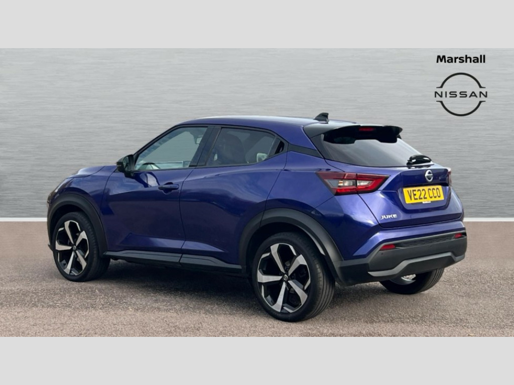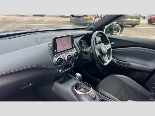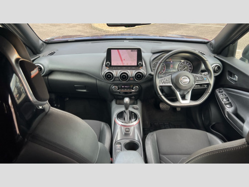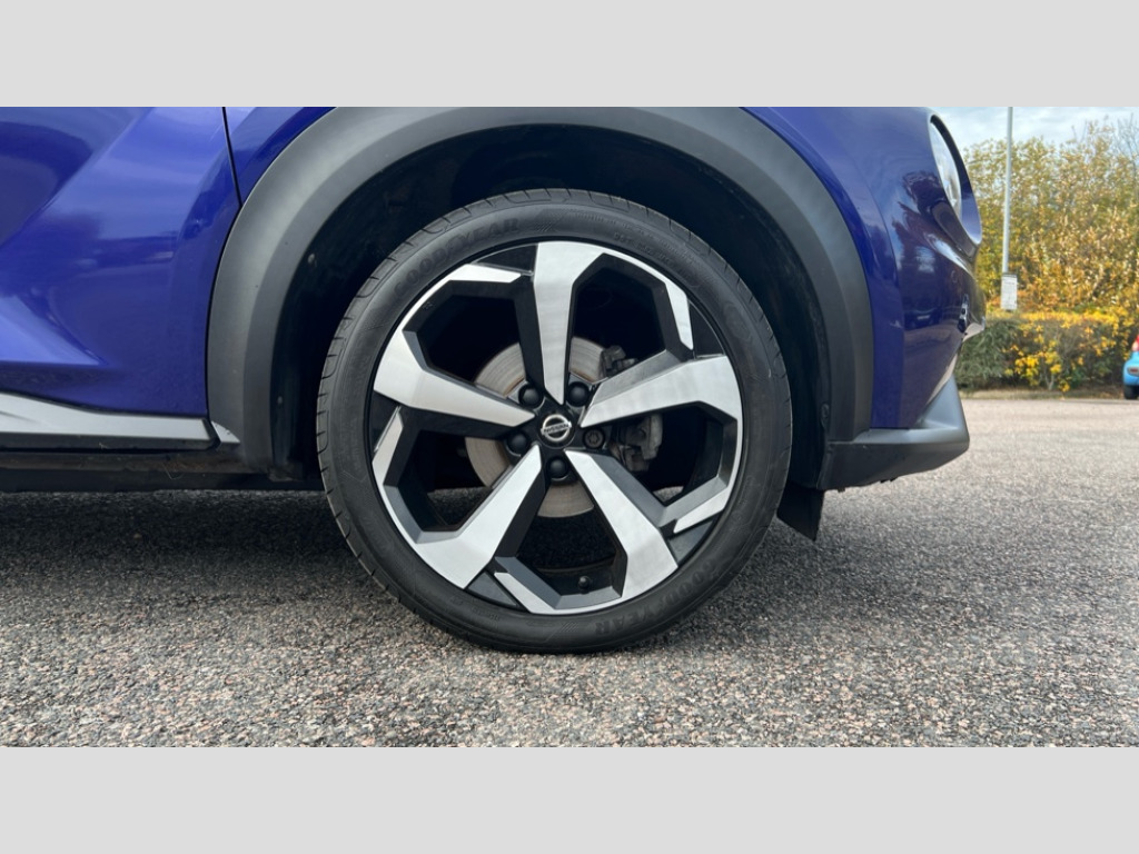 Nissan Juke 1.0 DiG-T 114 Tekna 5dr DCT 7" full colour TFT screen combimeter, Apple CarPlay and Google Android auto, Drive modes select (Eco, normal and sport), Emergency and breakdown call, Front parking sensor, Idle start/stop system, Intelligent lane intervention, Lane departure warning system, Nissan connect 8" touch screen entertainment system, Nissan connect nav with TomTom traffic, Nissan connect services and Wifi connection, Outside temperature sensor, Power Steering, Rear parking sensor, Traffic sign recognition, Trip computer, Voice recognition, Gasoline particulate filter, 10 Bose speakers 6 speakers and 2 headrest speakers for driver/passenger seats, Bluetooth system, USB, Aux-in and 12V socket, Bose personal sound stage control, DAB Digital radio, Rear console USB port, Auto dimming interior rear view mirror, Auto headlights, Automatic hazard signal with emergency stop signal, Body colour bumpers, Body colour door handles, Electrically adjustable door mirrors with integrated indicators, Follow me home headlights, Front and rear electric window with one touch driver window, Heated and auto folding door mirrors, High beam assist, LED daytime running lights, LED front fog lights, LED headlamps, LED rear fog lamp, LED rear lamps, Rain sensor windscreen wipers, Rear privacy glass, Rear side wing doors, Rear wiper, Thermaclear heated windscreen, Three blink turn signal, 3 height adjustable rear headrests, 3 seat bench in 2nd row, 60/40 split folding rear seat, Automatic climate control, Card holder on driver sunvisor, Door ambient lighting, Driver and passenger sliding and reclining seats, Driver seat back pocket, Driver side rear coat hanger, Driver/passenger sunvisors and vanity mirrors, Front and rear cabin lights, Front armrest, Front door pockets with bottle holders, Front head restraints, Front passenger isofix child seat anchorage point, Front/rear passenger grab handles, Gear console ambient circle lighting, Grey synthetic leather kneepad, Heated front seats, Height adjustable driver's seat, Height adjustable passenger seat, Internal chrome door handles, Leather gearshift knob, Leather steering wheel, Luggage board, Luggage space lighting, Monoform sporty seats, Multifunction steering wheel, Passenger seat back pocket, Rear door bottle holders, Single front passenger seat, Steering wheel mounted gearshift paddles, Synthetic leather upholstery, Telescopic steering wheel adjustment, Two cupholders in front centre console, Two rear isofix child seat anchorage points with top tether, Welcome light and console tray ambient lighting, ProPilot pack - Juke, ABS with EBD and brake assist, Active ride control, Active Trace Control, Driver and passenger airbags, Driver and passenger side airbags, Electric handbrake with auto hold function, Electronic Stability Programme (ESP), Front and rear curtain airbags, Height adjustable seatbelts, Hill start assist, Intelligent emergency braking with pedestrian and cyclist recognition, Rear door child safety locks, Seatbelt reminder for driver/front passenger and rear seats, Single tone horn, Three 3 point rear seatbelts, Traction control, Tyre pressure monitoring system, VDC Dynamic Vehicle Control, Ventilated rear brake discs, Alarm, Immobiliser, Intelligent key and start push button with walk away lock and approach unlock functions, Remote central locking