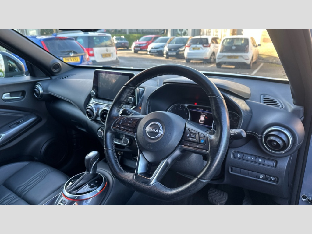 Nissan Juke 1.0 DiG-T 114 Tekna 5dr DCT 7" full colour TFT screen combimeter, Apple CarPlay and Google Android auto, Drive modes select (Eco, normal and sport), Emergency and breakdown call, Front parking sensor, Idle start/stop system, Intelligent lane intervention, Lane departure warning system, Nissan connect 8" touch screen entertainment system, Nissan connect nav with TomTom traffic, Nissan connect services and Wifi connection, Outside temperature sensor, Power Steering, Rear parking sensor, Traffic sign recognition, Trip computer, Voice recognition, Gasoline particulate filter, 10 Bose speakers 6 speakers and 2 headrest speakers for driver/passenger seats, Bluetooth system, USB, Aux-in and 12V socket, Bose personal sound stage control, DAB Digital radio, Rear console USB port, Auto dimming interior rear view mirror, Auto headlights, Automatic hazard signal with emergency stop signal, Body colour bumpers, Body colour door handles, Electrically adjustable door mirrors with integrated indicators, Follow me home headlights, Front and rear electric window with one touch driver window, Heated and auto folding door mirrors, High beam assist, LED 3rd brake light, LED daytime running lights, LED front fog lights, LED headlamps, LED rear fog lamp, LED rear lamps, Rain sensor windscreen wipers, Rear privacy glass, Rear side wing doors, Rear wiper, Roof spoiler, Shark fin roof antenna in Pearl Black, Thermaclear heated windscreen, Three blink turn signal, 3 height adjustable rear headrests, 3 seat bench in 2nd row, 60/40 split folding rear seat, Automatic climate control, Card holder on driver sunvisor, Door ambient lighting, Driver and passenger sliding and reclining seats, Driver seat back pocket, Driver side rear coat hanger, Driver/passenger sunvisors and vanity mirrors, Front and rear cabin lights, Front armrest, Front door pockets with bottle holders, Front head restraints, Front passenger isofix child seat anchorage point, Front/rear passenger grab handles, Gear console ambient circle lighting, Grey synthetic leather kneepad, Heated front seats, Height adjustable driver's seat, Height adjustable passenger seat, Internal chrome door handles, Leather gearshift knob, Leather steering wheel, Luggage board, Luggage space lighting, Monoform sporty seats, Multifunction steering wheel, Passenger seat back pocket, Rear door bottle holders, Single front passenger seat, Steering wheel mounted gearshift paddles, Synthetic leather upholstery, Telescopic steering wheel adjustment, Two cupholders in front centre console, Two rear isofix child seat anchorage points with top tether, Welcome light and console tray ambient lighting, ProPilot pack - Juke, ABS with EBD and brake assist, Active ride control, Active Trace Control, Driver and passenger airbags, Driver and passenger side airbags, Electric handbrake with auto hold function, Electronic Stability Programme (ESP), Front and rear curtain airbags, Height adjustable seatbelts, Hill start assist, Intelligent emergency braking with pedestrian and cyclist recognition, Rear door child safety locks, Seatbelt reminder for driver/front passenger and rear seats, Single tone horn, Three 3 point rear seatbelts, Traction control, Tyre pressure monitoring system, VDC Dynamic Vehicle Control, Ventilated rear brake discs, Alarm, Immobiliser, Intelligent key and start push button with walk away lock and approach unlock functions, Remote central locking