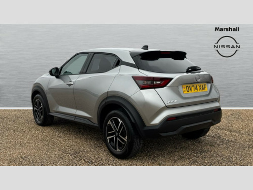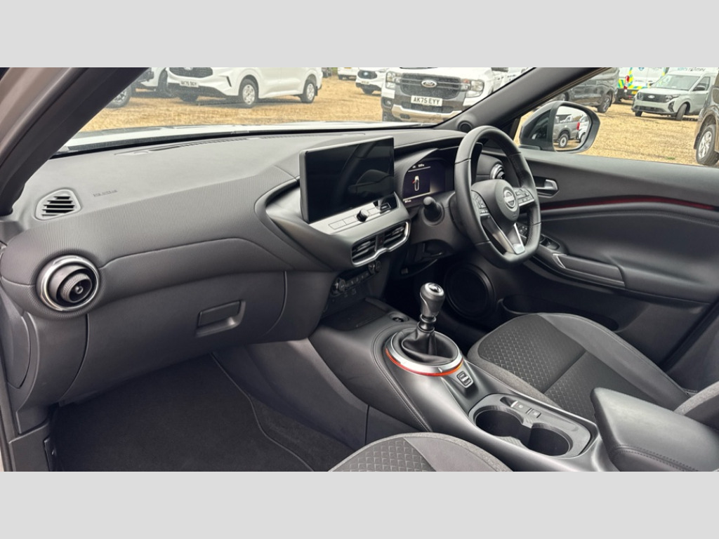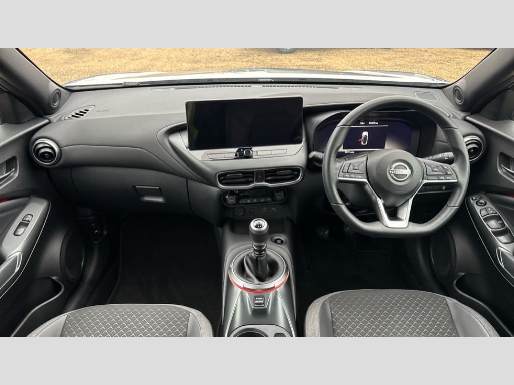 Nissan Juke 1.0 DiG-T N-Connecta 5dr 12.3" full colour TFT screen combimeter, Drive modes select (Eco, normal and sport), Emergency and breakdown call, Front parking sensor, Idle start/stop system, Intelligent driver alert system, Intelligent lane intervention, Lane departure warning system, Nissan connect 12.3" touch screen entertainment system, Nissan connect nav with TomTom traffic, Nissan connect services, Outside temperature sensor, Power Steering, Rear parking sensor, Stop/start button, Traffic sign recognition, Trip computer, Voice recognition, WiFi connectivity, Wireless Apple CarPlay and Google Android auto, Wireless Smartphone charger, 2 X Rear console USB port, 6 speakers, Bluetooth system, USB, Aux-in and 12V socket, DAB Digital radio, Auto dimming frameless rear view mirror, Automatic hazard signal with emergency stop signal, Body colour door handles, Electrically adjustable door mirrors with integrated indicators, Follow me home headlights, Front and rear electric window with one touch driver window, Heated and auto folding door mirrors, High beam assist, LED 3rd brake light, LED daytime running lights, LED headlamps, LED rear fog lamp, LED rear lamps, One touch passenger window, Rain sensor windscreen wipers, Rear privacy glass, Rear side wing doors, Rear wiper, Roof spoiler, Shark fin roof antenna in solid Black, Three blink turn signal, 3 height adjustable rear headrests, 3 seat bench in 2nd row, 60/40 split folding rear seat, Automatic climate control, Card holder on driver sunvisor, Cloth/Synthetic leather with melange fabric inserts, Driver side rear coat hanger, Driver/passenger sunvisors and vanity mirrors, Front and rear cabin lights, Front armrest, Front door pockets with bottle holders, Front head restraints, Front/rear passenger grab handles, Height adjustable driver's seat, Internal chrome door handles, Leather gearshift knob, Luggage board, Luggage space lighting, Monoform sporty seats, Multifunction steering wheel, Rear door bottle holders, Single front passenger seat, Smooth synthetic leather steering wheel, Synthetic leather kneepad, Telescopic steering wheel adjustment, Two cupholders in front centre console, Two rear isofix child seat anchorage points with top tether, Welcome light and console tray ambient lighting, ABS with EBD and brake assist, Active ride control, Active Trace Control, Driver and passenger airbags, Driver and passenger side airbags, Electric handbrake with auto hold function, Electronic Stability Programme (ESP), Front and rear curtain airbags, Height adjustable seatbelts, Hill start assist, Intelligent emergency braking with pedestrian and cyclist recognition, Rear door child safety locks, Seatbelt reminder for driver/front passenger and rear seats, Three 3 point rear seatbelts, Traction control, Tyre pressure monitoring system, VDC Dynamic Vehicle Control, Alarm, Immobiliser, Intelligent key and start push button with walk away lock and approach unlock functions, Remote central locking, 17" Alloy wheels, Tyre puncture repair kit