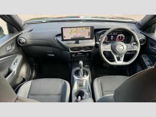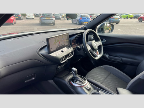 Nissan Juke 1.0 DiG-T N-Connecta 5dr DCT 12.3" full colour TFT screen combimeter, Drive modes select (Eco, normal and sport), Emergency and breakdown call, Front parking sensor, Idle start/stop system, Intelligent driver alert system, Intelligent lane intervention, Lane departure warning system, Nissan connect 12.3" touch screen entertainment system, Nissan connect nav with TomTom traffic, Nissan connect services, Outside temperature sensor, Power Steering, Rear parking sensor, Stop/start button, Traffic sign recognition, Trip computer, Voice recognition, WiFi connectivity, Wireless Apple CarPlay and Google Android auto, Wireless Smartphone charger, 2 X Rear console USB port, 6 speakers, Bluetooth system, USB, Aux-in and 12V socket, DAB Digital radio, Auto dimming frameless rear view mirror, Automatic hazard signal with emergency stop signal, Body colour door handles, Electrically adjustable door mirrors with integrated indicators, Follow me home headlights, Front and rear electric window with one touch driver window, Heated and auto folding door mirrors, High beam assist, LED 3rd brake light, LED daytime running lights, LED headlamps, LED rear fog lamp, LED rear lamps, One touch passenger window, Rain sensor windscreen wipers, Rear privacy glass, Rear side wing doors, Rear wiper, Roof spoiler, Shark fin roof antenna in solid Black, Three blink turn signal, 3 height adjustable rear headrests, 3 seat bench in 2nd row, 60/40 split folding rear seat, Automatic climate control, Card holder on driver sunvisor, Cloth/Synthetic leather with melange fabric inserts, Driver side rear coat hanger, Driver/passenger sunvisors and vanity mirrors, Front and rear cabin lights, Front armrest, Front door pockets with bottle holders, Front head restraints, Front/rear passenger grab handles, Height adjustable driver's seat, Internal chrome door handles, Leather gearshift knob, Luggage board, Luggage space lighting, Monoform sporty seats, Multifunction steering wheel, Rear door bottle holders, Single front passenger seat, Smooth synthetic leather steering wheel, Steering wheel mounted gearshift paddles, Synthetic leather kneepad, Telescopic steering wheel adjustment, Two cupholders in front centre console, Two rear isofix child seat anchorage points with top tether, Welcome light and console tray ambient lighting, ABS with EBD and brake assist, Active ride control, Active Trace Control, Driver and passenger airbags, Driver and passenger side airbags, Electric handbrake with auto hold function, Electronic Stability Programme (ESP), Front and rear curtain airbags, Height adjustable seatbelts, Hill start assist, Intelligent emergency braking with pedestrian and cyclist recognition, Rear door child safety locks, Seatbelt reminder for driver/front passenger and rear seats, Three 3 point rear seatbelts, Traction control, Tyre pressure monitoring system, VDC Dynamic Vehicle Control, Alarm, Immobiliser, Intelligent key and start push button with walk away lock and approach unlock functions, Remote central locking, 17" Alloy wheels, Tyre puncture repair kit