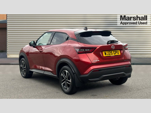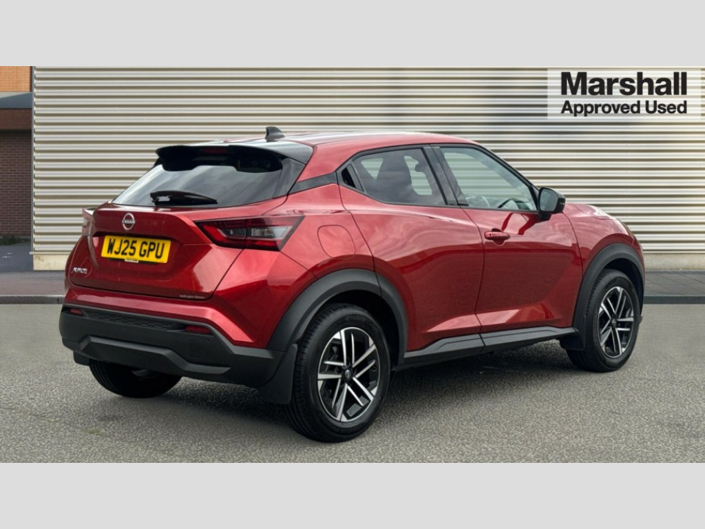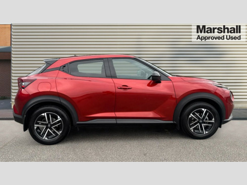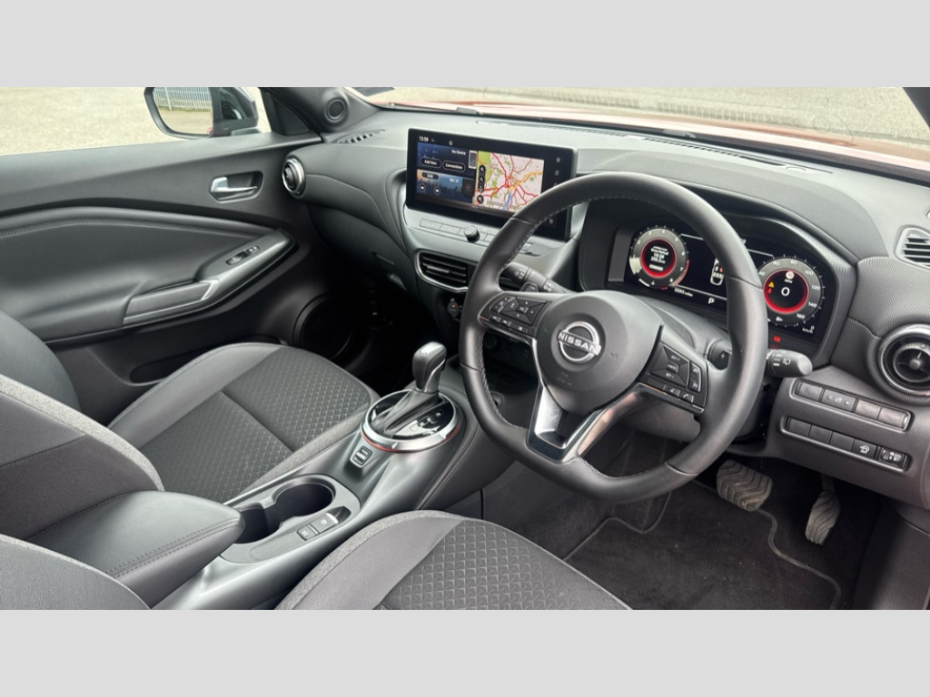 Nissan Juke 1.0 DiG-T N-Connecta 5dr DCT 12.3" full colour TFT screen combimeter, Drive modes select (Eco, normal and sport), Emergency and breakdown call, Front parking sensor, Idle start/stop system, Intelligent driver alert system, Intelligent lane intervention, Lane departure warning system, Nissan connect 12.3" touch screen entertainment system, Nissan connect nav with TomTom traffic, Nissan connect services, Outside temperature sensor, Power Steering, Rear parking sensor, Stop/start button, Traffic sign recognition, Trip computer, Voice recognition, WiFi connectivity, Wireless Apple CarPlay and Google Android auto, Wireless Smartphone charger, 2 X Rear console USB port, 6 speakers, Bluetooth system, USB, Aux-in and 12V socket, DAB Digital radio, Auto dimming frameless rear view mirror, Automatic hazard signal with emergency stop signal, Body colour door handles, Electrically adjustable door mirrors with integrated indicators, Follow me home headlights, Front and rear electric window with one touch driver window, Heated and auto folding door mirrors, High beam assist, LED 3rd brake light, LED daytime running lights, LED headlamps, LED rear fog lamp, LED rear lamps, One touch passenger window, Rain sensor windscreen wipers, Rear privacy glass, Rear side wing doors, Rear wiper, Roof spoiler, Shark fin roof antenna in solid Black, Three blink turn signal, 3 height adjustable rear headrests, 3 seat bench in 2nd row, 60/40 split folding rear seat, Automatic climate control, Card holder on driver sunvisor, Cloth/Synthetic leather with melange fabric inserts, Driver side rear coat hanger, Driver/passenger sunvisors and vanity mirrors, Front and rear cabin lights, Front armrest, Front door pockets with bottle holders, Front head restraints, Front/rear passenger grab handles, Height adjustable driver's seat, Internal chrome door handles, Leather gearshift knob, Luggage board, Luggage space lighting, Monoform sporty seats, Multifunction steering wheel, Rear door bottle holders, Single front passenger seat, Smooth synthetic leather steering wheel, Steering wheel mounted gearshift paddles, Synthetic leather kneepad, Telescopic steering wheel adjustment, Two cupholders in front centre console, Two rear isofix child seat anchorage points with top tether, Welcome light and console tray ambient lighting, ABS with EBD and brake assist, Active ride control, Active Trace Control, Driver and passenger airbags, Driver and passenger side airbags, Electric handbrake with auto hold function, Electronic Stability Programme (ESP), Front and rear curtain airbags, Height adjustable seatbelts, Hill start assist, Intelligent emergency braking with pedestrian and cyclist recognition, Rear door child safety locks, Seatbelt reminder for driver/front passenger and rear seats, Three 3 point rear seatbelts, Traction control, Tyre pressure monitoring system, VDC Dynamic Vehicle Control, Alarm, Immobiliser, Intelligent key and start push button with walk away lock and approach unlock functions, Remote central locking, 17" Alloy wheels, Tyre puncture repair kit