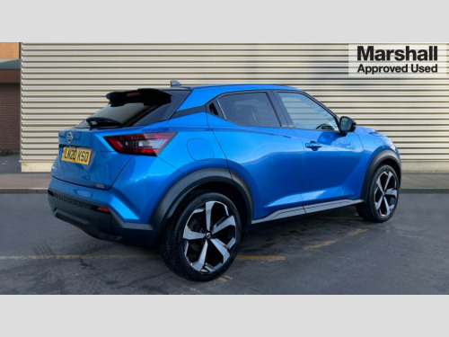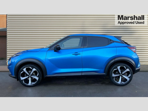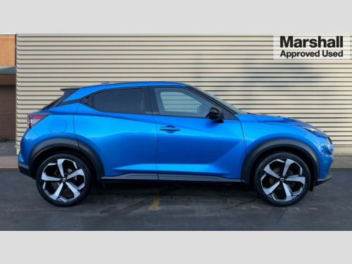 Nissan Juke 1.0 DiG-T Tekna 5dr 7" full colour TFT screen combimeter, 8" infotainment colour display with touch screen, Apple CarPlay and Google Android auto, Drive modes select (Eco, normal and sport), Emergency and breakdown call, Front parking sensor, Idle start/stop system, Intelligent lane intervention, Lane departure warning system, Nissan connect nav with TomTom traffic, Nissan connect services and Wifi connection, Outside temperature sensor, Power Steering, Rear parking sensor, Traffic sign recognition, Trip computer, Gasoline particulate filter, Bluetooth system, USB, Aux-in and 12V socket, Bose personal plus audio system with 8 speakers(4 speakers and 2 headrest speaker for driver and passenger seats), Bose personal sound stage control, DAB Digital radio, Rear console USB port, Auto dimming interior rear view mirror, Automatic hazard signal with emergency stop signal, Body colour bumpers, Body colour door handles, Electrically adjustable door mirrors with integrated indicators, Follow me home headlights, Front and rear electric window with one touch driver and passenger window, Heated and auto folding door mirrors, High beam assist, LED daytime running lights, LED front fog lights, LED headlamps, LED rear fog lamp, LED rear lamps, Rain sensor windscreen wipers, Rear privacy glass, Rear spoiler, Rear wiper, Thermaclear heated windscreen, Three blink turn signal, 3 height adjustable rear headrests, 60/40 split folding rear seat, Automatic climate control, Card holder on driver sunvisor, Cloth/Synthetic leather upholstery, Door ambient lighting, Driver and passenger sliding and reclining seats, Driver seat back pocket, Driver side rear coat hanger, Driver/passenger sunvisors and illuminated vanity mirrors, Front and rear cabin lights, Front armrest, Front door pockets with bottle holders, Front head restraints, Front passenger isofix child seat anchorage point, Front/rear passenger grab handles, Gear console ambient circle lighting, Grey synthetic leather kneepad, Heated front seats, Height adjustable driver's seat, Height adjustable passenger seat, Internal chrome door handles, Leather gearshift knob, Leather steering wheel, Luggage board, Luggage space lighting, Monoform sporty seats, Multifunction steering wheel, Passenger seat back pocket, Rear door bottle holders, Telescopic steering wheel adjustment, Two cupholders in front centre console, Two rear isofix child seat anchorage points with top tether, Voice recognition switch on steering wheel, Welcome light and console tray ambient lighting, Advanced safety shield pack - Juke, ABS with EBD and brake assist, Active ride control, Active Trace Control, Driver and passenger airbags, Driver and passenger side airbags, Electric handbrake with auto hold function, Electronic Stability Programme (ESP), Front and rear curtain airbags, Height adjustable seatbelts, Hill start assist, Intelligent emergency braking with pedestrian and cyclist recognition, Seatbelt reminder for driver/front passenger and rear seats, Single tone horn, Three 3 point rear seatbelts, Traction control, Tyre pressure monitoring system, VDC Dynamic Vehicle Control, Ventilated rear brake discs, Alarm, Immobiliser, Intelligent Key with push button starter, Remote central locking