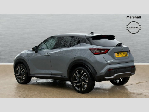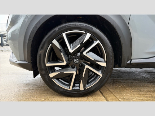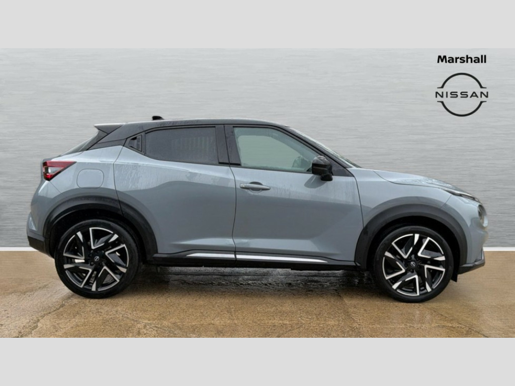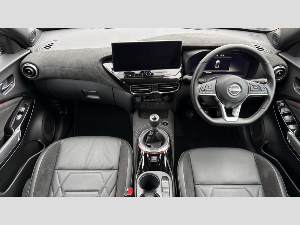 Nissan Juke 1.0 DiG-T Tekna+ 5dr 12.3" full colour TFT screen combimeter, Drive modes select (Eco, normal and sport), Emergency and breakdown call, Front parking sensor, Idle start/stop system, Intelligent driver alert system, Intelligent lane intervention, Lane departure warning system, Nissan connect 12.3" touch screen entertainment system, Nissan connect nav with TomTom traffic, Nissan connect services, Outside temperature sensor, Power Steering, Rear parking sensor, Stop/start button, Traffic sign recognition, Trip computer, Voice recognition, WiFi connectivity, Wireless Apple CarPlay and Google Android auto, Wireless Smartphone charger, 10 Bose speakers 6 speakers and 2 headrest speakers for driver/passenger seats, 2 X Rear console USB port, Bluetooth system, USB, Aux-in and 12V socket, Bose personal sound stage control, DAB Digital radio, Auto dimming frameless rear view mirror, Automatic hazard signal with emergency stop signal, Body colour door handles, Electrically adjustable door mirrors with integrated indicators, Follow me home headlights, Front and rear electric window with one touch driver window, Heated and auto folding door mirrors, High beam assist, LED 3rd brake light, LED daytime running lights, LED front fog lights, LED headlamps, LED rear fog lamp, LED rear lamps, One touch passenger window, Rain sensor windscreen wipers, Rear privacy glass, Rear side wing doors, Rear wiper, Roof spoiler, Shark fin roof antenna in solid Black, Three blink turn signal, 3 height adjustable rear headrests, 3 seat bench in 2nd row, 60/40 split folding rear seat, Automatic climate control, Card holder on driver sunvisor, Door ambient lighting, Driver seat back pocket, Driver side rear coat hanger, Driver/passenger sunvisors and vanity mirrors, Front and rear cabin lights, Front armrest, Front door pockets with bottle holders, Front head restraints, Front/rear passenger grab handles, Gear console ambient circle lighting, Height adjustable driver's seat, Internal chrome door handles, Leather gearshift knob, Luggage board, Luggage space lighting, Monoform sporty seats, Multifunction steering wheel, Passenger seat back pocket, Rear door bottle holders, Single front passenger seat, Smooth synthetic leather steering wheel, Synthetic leather kneepad, Telescopic steering wheel adjustment, Two cupholders in front centre console, Two rear isofix child seat anchorage points with top tether, Welcome light and console tray ambient lighting, Advanced safety shield pack - Juke Manual, Heat pack with height adjustable passenger seats - Juke, Interior personalisation pack - Juke, Satin grey exterior personalisation pack - Juke, ABS with EBD and brake assist, Active ride control, Active Trace Control, Driver and passenger airbags, Driver and passenger side airbags, Electric handbrake with auto hold function, Electronic Stability Programme (ESP), Front and rear curtain airbags, Height adjustable seatbelts, Hill start assist, Intelligent emergency braking with pedestrian and cyclist recognition, Rear door child safety locks, Seatbelt reminder for driver/front passenger and rear seats, Three 3 point rear seatbelts, Traction control, Tyre pressure monitoring system, VDC Dynamic Vehicle Control, Alarm, Immobiliser, Intelligent key and start push button with walk away lock and approach unlock functions, Remote central locking, 19" Alloy wheels with deep 3D effect, Tyre puncture repair kit