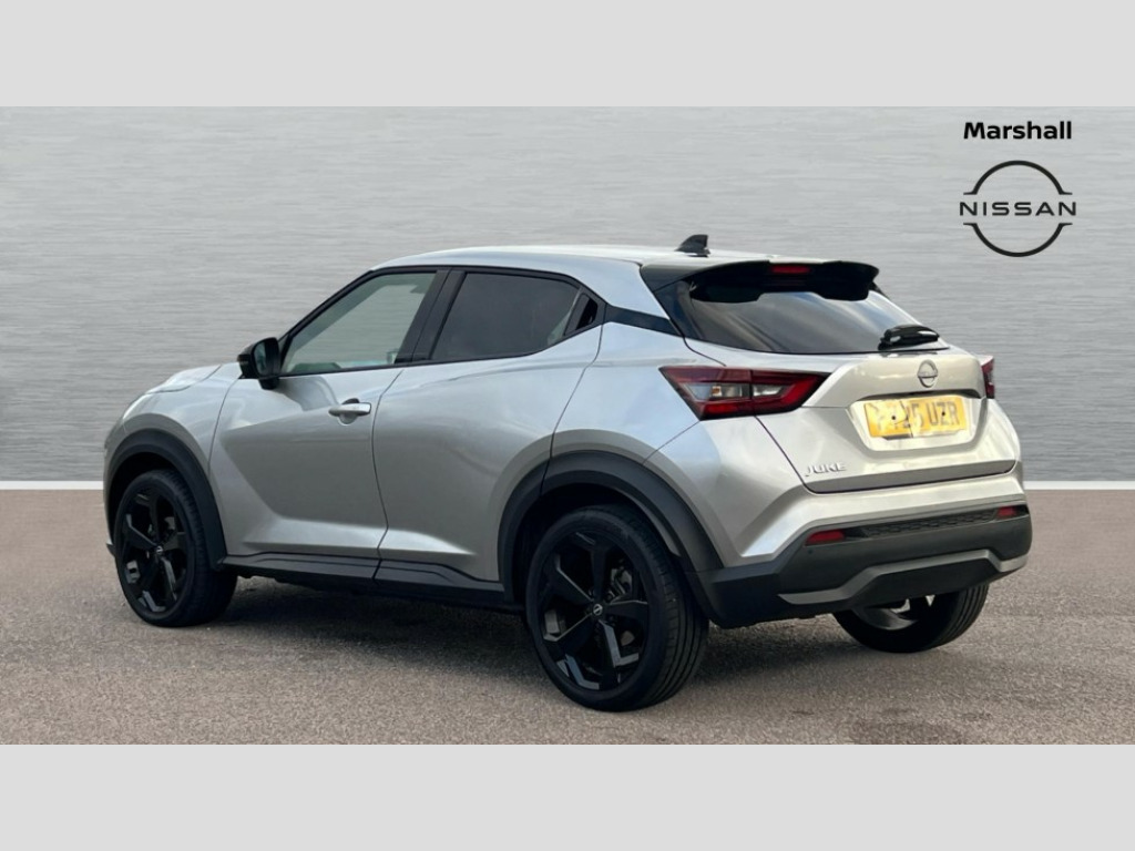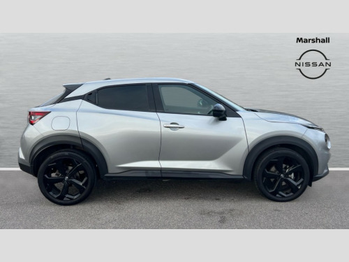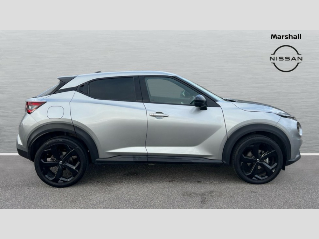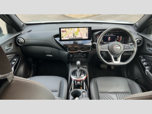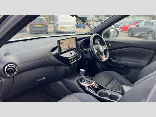 Nissan Juke 1.0 DiG-T Tekna 5dr DCT 12.3" full colour TFT screen combimeter, Drive modes select (Eco, normal and sport), Emergency and breakdown call, Front parking sensor, Idle start/stop system, Intelligent driver alert system, Intelligent lane intervention, Lane departure warning system, Nissan connect 12.3" touch screen entertainment system, Nissan connect nav with TomTom traffic, Nissan connect services, Outside temperature sensor, Power Steering, Rear parking sensor, Stop/start button, Traffic sign recognition, Trip computer, Voice recognition, WiFi connectivity, Wireless Apple CarPlay and Google Android auto, Wireless Smartphone charger, 10 Bose speakers 6 speakers and 2 headrest speakers for driver/passenger seats, 2 X Rear console USB port, Bluetooth system, USB, Aux-in and 12V socket, Bose personal sound stage control, DAB Digital radio, Auto dimming frameless rear view mirror, Automatic hazard signal with emergency stop signal, Body colour door handles, Electrically adjustable door mirrors with integrated indicators, Follow me home headlights, Front and rear electric window with one touch driver window, Heated and auto folding door mirrors, High beam assist, LED 3rd brake light, LED daytime running lights, LED front fog lights, LED headlamps, LED rear fog lamp, LED rear lamps, One touch passenger window, Rain sensor windscreen wipers, Rear privacy glass, Rear side wing doors, Rear wiper, Roof spoiler, Shark fin roof antenna in solid Black, Three blink turn signal, 3 height adjustable rear headrests, 3 seat bench in 2nd row, 60/40 split folding rear seat, Automatic climate control, Card holder on driver sunvisor, Door ambient lighting, Driver seat back pocket, Driver side rear coat hanger, Driver/passenger sunvisors and vanity mirrors, Front and rear cabin lights, Front armrest, Front door pockets with bottle holders, Front head restraints, Front/rear passenger grab handles, Gear console ambient circle lighting, Height adjustable driver's seat, Internal chrome door handles, Leather gearshift knob, Luggage board, Luggage space lighting, Monoform sporty seats, Multifunction steering wheel, Passenger seat back pocket, Rear door bottle holders, Single front passenger seat, Smooth synthetic leather steering wheel, Steering wheel mounted gearshift paddles, Synthetic leather kneepad, Synthetic leather upholstery, Telescopic steering wheel adjustment, Two cupholders in front centre console, Two rear isofix child seat anchorage points with top tether, Welcome light and console tray ambient lighting, Heat pack with height adjustable passenger seats - Juke, ProPilot pack - Juke Auto, ABS with EBD and brake assist, Active ride control, Active Trace Control, Driver and passenger airbags, Driver and passenger side airbags, Electric handbrake with auto hold function, Electronic Stability Programme (ESP), Front and rear curtain airbags, Height adjustable seatbelts, Hill start assist, Intelligent emergency braking with pedestrian and cyclist recognition, Rear door child safety locks, Seatbelt reminder for driver/front passenger and rear seats, Three 3 point rear seatbelts, Traction control, Tyre pressure monitoring system, VDC Dynamic Vehicle Control, Alarm, Immobiliser, Intelligent key and start push button with walk away lock and approach unlock functions, Remote central locking, 19" Alloy wheels, Tyre puncture repair kit