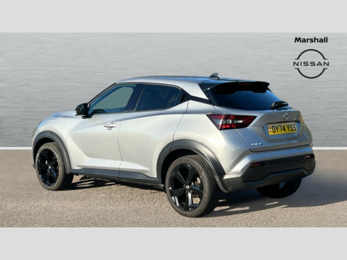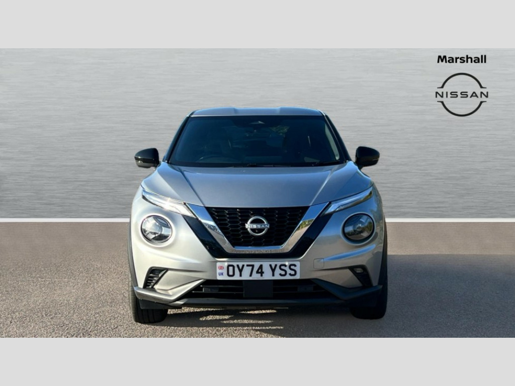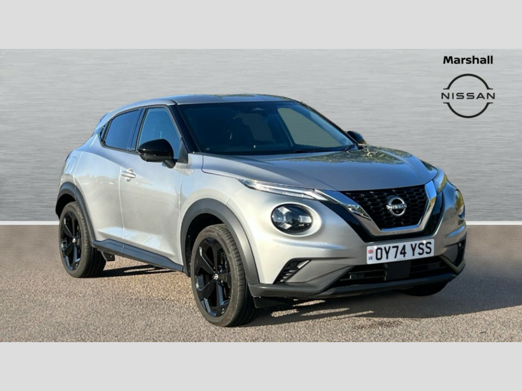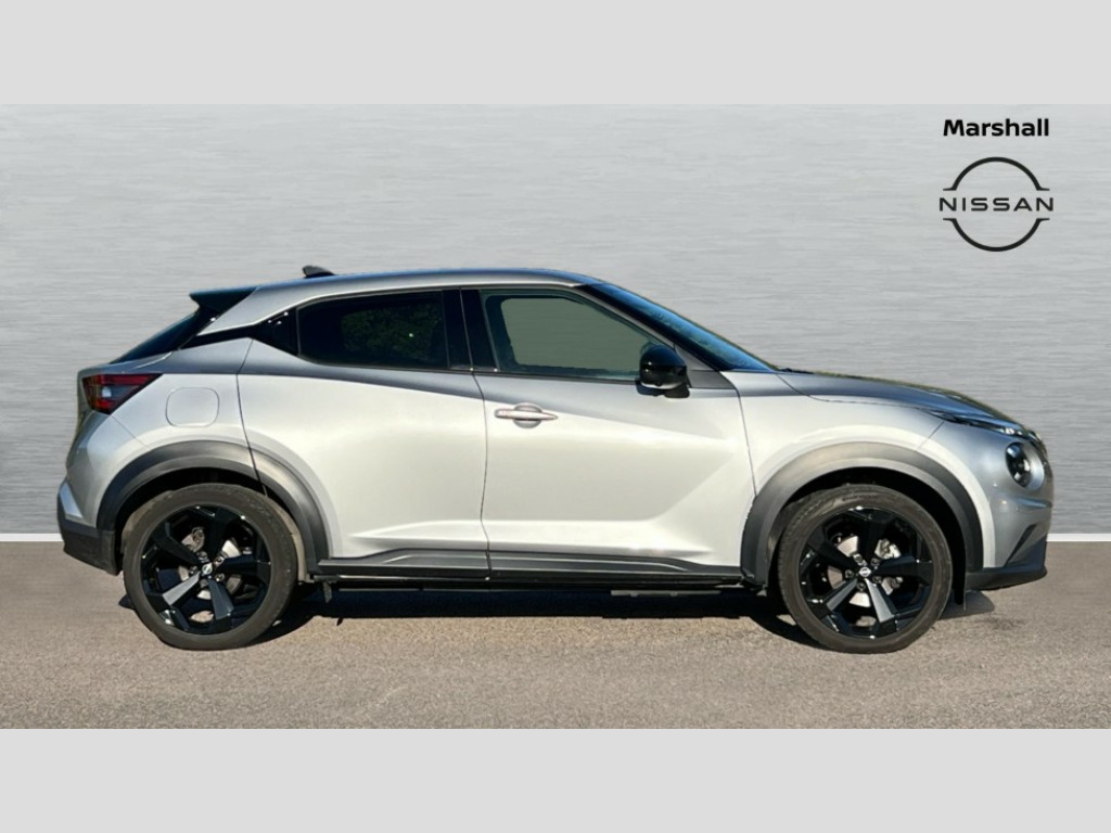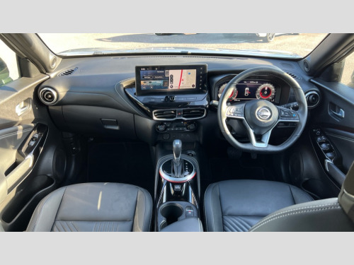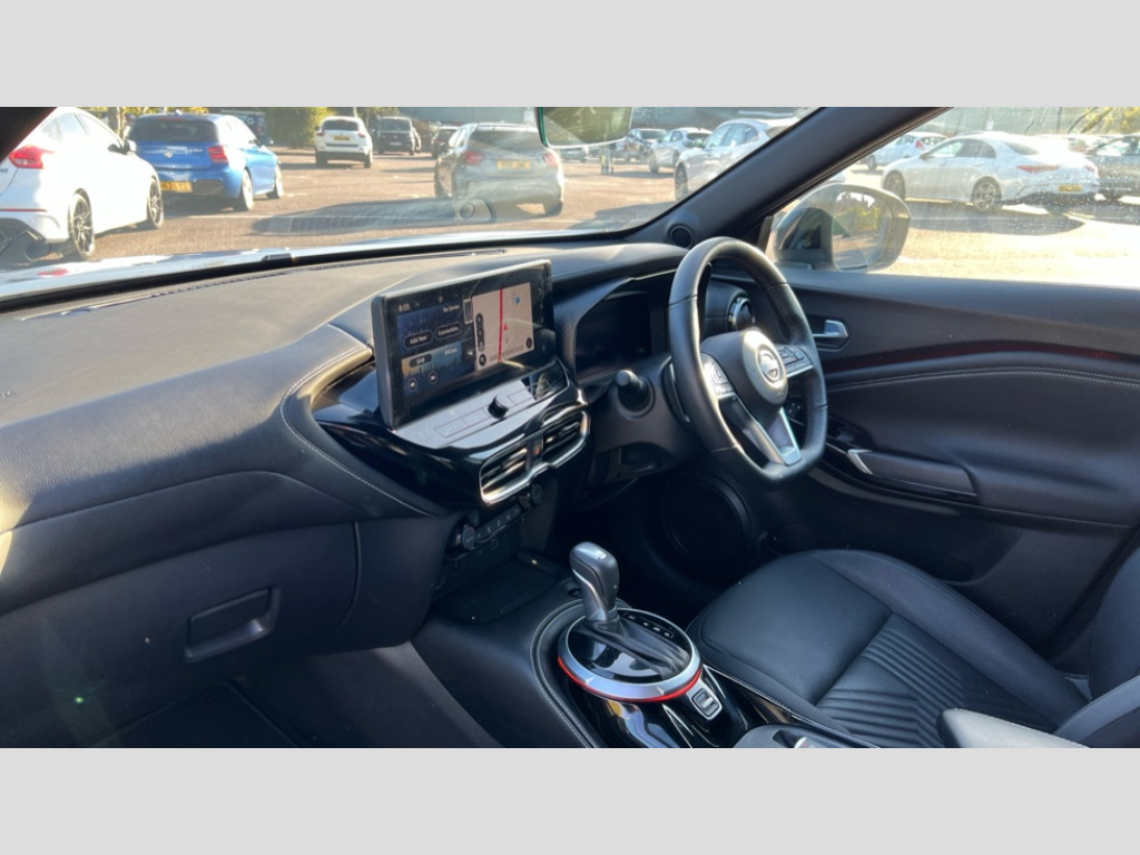 Nissan Juke 1.0 DiG-T Tekna 5dr DCT 12.3" full colour TFT screen combimeter, Drive modes select (Eco, normal and sport), Emergency and breakdown call, Front parking sensor, Idle start/stop system, Intelligent driver alert system, Intelligent lane intervention, Lane departure warning system, Nissan connect 12.3" touch screen entertainment system, Nissan connect nav with TomTom traffic, Nissan connect services, Outside temperature sensor, Power Steering, Rear parking sensor, Stop/start button, Traffic sign recognition, Trip computer, Voice recognition, WiFi connectivity, Wireless Apple CarPlay and Google Android auto, Wireless Smartphone charger, 10 Bose speakers 6 speakers and 2 headrest speakers for driver/passenger seats, 2 X Rear console USB port, Bluetooth system, USB, Aux-in and 12V socket, Bose personal sound stage control, DAB Digital radio, Auto dimming frameless rear view mirror, Automatic hazard signal with emergency stop signal, Body colour door handles, Electrically adjustable door mirrors with integrated indicators, Follow me home headlights, Front and rear electric window with one touch driver window, Heated and auto folding door mirrors, High beam assist, LED 3rd brake light, LED daytime running lights, LED front fog lights, LED headlamps, LED rear fog lamp, LED rear lamps, One touch passenger window, Rain sensor windscreen wipers, Rear privacy glass, Rear side wing doors, Rear wiper, Roof spoiler, Shark fin roof antenna in solid Black, Three blink turn signal, 3 height adjustable rear headrests, 3 seat bench in 2nd row, 60/40 split folding rear seat, Automatic climate control, Card holder on driver sunvisor, Door ambient lighting, Driver seat back pocket, Driver side rear coat hanger, Driver/passenger sunvisors and vanity mirrors, Front and rear cabin lights, Front armrest, Front door pockets with bottle holders, Front head restraints, Front/rear passenger grab handles, Gear console ambient circle lighting, Height adjustable driver's seat, Internal chrome door handles, Leather gearshift knob, Luggage board, Luggage space lighting, Monoform sporty seats, Multifunction steering wheel, Passenger seat back pocket, Rear door bottle holders, Single front passenger seat, Smooth synthetic leather steering wheel, Steering wheel mounted gearshift paddles, Synthetic leather kneepad, Synthetic leather upholstery, Telescopic steering wheel adjustment, Two cupholders in front centre console, Two rear isofix child seat anchorage points with top tether, Welcome light and console tray ambient lighting, Heat pack with height adjustable passenger seats - Juke, ProPilot pack - Juke Auto, ABS with EBD and brake assist, Active ride control, Active Trace Control, Driver and passenger airbags, Driver and passenger side airbags, Electric handbrake with auto hold function, Electronic Stability Programme (ESP), Front and rear curtain airbags, Height adjustable seatbelts, Hill start assist, Intelligent emergency braking with pedestrian and cyclist recognition, Rear door child safety locks, Seatbelt reminder for driver/front passenger and rear seats, Three 3 point rear seatbelts, Traction control, Tyre pressure monitoring system, VDC Dynamic Vehicle Control, Alarm, Immobiliser, Intelligent key and start push button with walk away lock and approach unlock functions, Remote central locking, 19" Alloy wheels, Tyre puncture repair kit