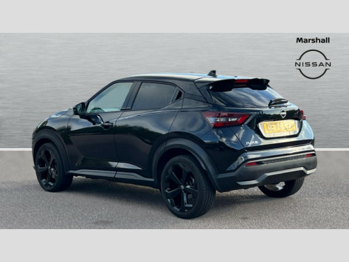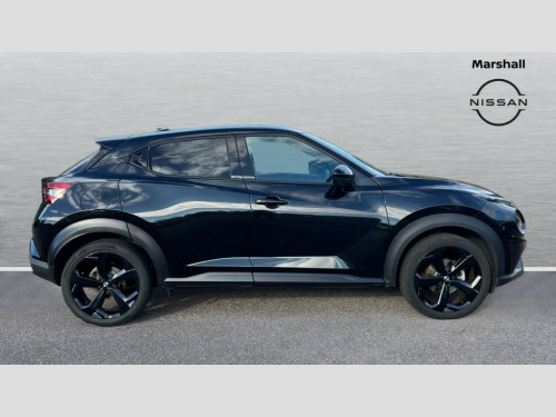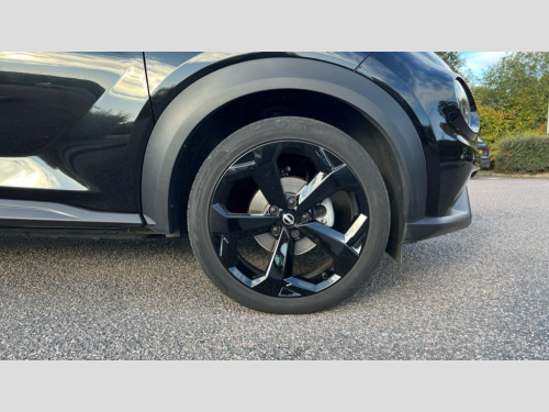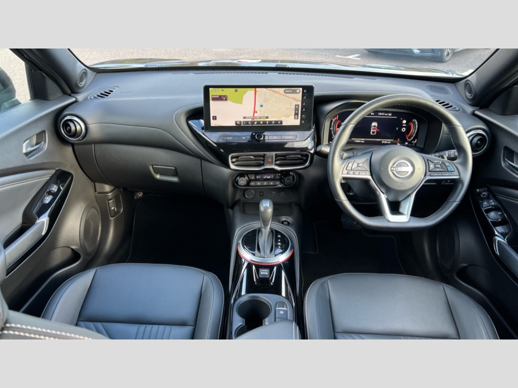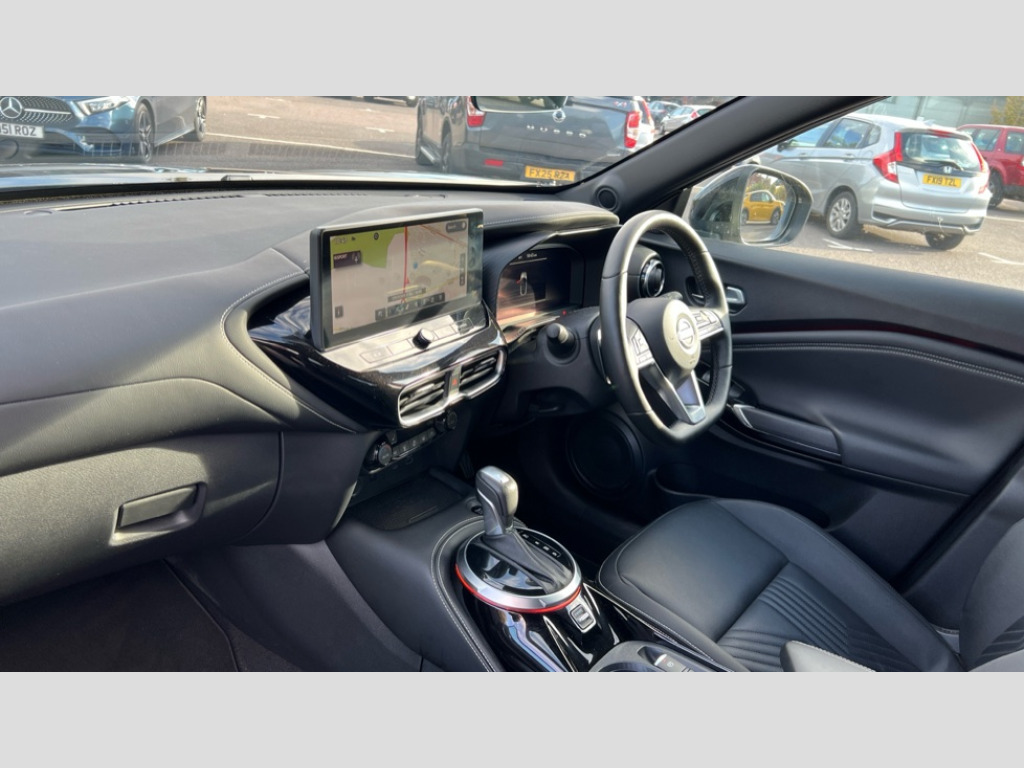 Nissan Juke 1.0 DiG-T Tekna 5dr DCT 12.3" full colour TFT screen combimeter, Drive modes select (Eco, normal and sport), Emergency and breakdown call, Front parking sensor, Idle start/stop system, Intelligent driver alert system, Intelligent lane intervention, Lane departure warning system, Nissan connect 12.3" touch screen entertainment system, Nissan connect nav with TomTom traffic, Nissan connect services, Outside temperature sensor, Power Steering, Rear parking sensor, Stop/start button, Traffic sign recognition, Trip computer, Voice recognition, WiFi connectivity, Wireless Apple CarPlay and Google Android auto, Wireless Smartphone charger, 10 Bose speakers 6 speakers and 2 headrest speakers for driver/passenger seats, 2 X Rear console USB port, Bluetooth system, USB, Aux-in and 12V socket, Bose personal sound stage control, DAB Digital radio, Auto dimming frameless rear view mirror, Automatic hazard signal with emergency stop signal, Body colour door handles, Electrically adjustable door mirrors with integrated indicators, Follow me home headlights, Front and rear electric window with one touch driver window, Heated and auto folding door mirrors, High beam assist, LED 3rd brake light, LED daytime running lights, LED front fog lights, LED headlamps, LED rear fog lamp, LED rear lamps, One touch passenger window, Rain sensor windscreen wipers, Rear privacy glass, Rear side wing doors, Rear wiper, Roof spoiler, Shark fin roof antenna in solid Black, Three blink turn signal, 3 height adjustable rear headrests, 3 seat bench in 2nd row, 60/40 split folding rear seat, Automatic climate control, Card holder on driver sunvisor, Door ambient lighting, Driver seat back pocket, Driver side rear coat hanger, Driver/passenger sunvisors and vanity mirrors, Front and rear cabin lights, Front armrest, Front door pockets with bottle holders, Front head restraints, Front/rear passenger grab handles, Gear console ambient circle lighting, Height adjustable driver's seat, Internal chrome door handles, Leather gearshift knob, Luggage board, Luggage space lighting, Monoform sporty seats, Multifunction steering wheel, Passenger seat back pocket, Rear door bottle holders, Single front passenger seat, Smooth synthetic leather steering wheel, Steering wheel mounted gearshift paddles, Synthetic leather kneepad, Synthetic leather upholstery, Telescopic steering wheel adjustment, Two cupholders in front centre console, Two rear isofix child seat anchorage points with top tether, Welcome light and console tray ambient lighting, Heat pack with height adjustable passenger seats - Juke, ProPilot pack - Juke Auto, ABS with EBD and brake assist, Active ride control, Active Trace Control, Driver and passenger airbags, Driver and passenger side airbags, Electric handbrake with auto hold function, Electronic Stability Programme (ESP), Front and rear curtain airbags, Height adjustable seatbelts, Hill start assist, Intelligent emergency braking with pedestrian and cyclist recognition, Rear door child safety locks, Seatbelt reminder for driver/front passenger and rear seats, Three 3 point rear seatbelts, Traction control, Tyre pressure monitoring system, VDC Dynamic Vehicle Control, Alarm, Immobiliser, Intelligent key and start push button with walk away lock and approach unlock functions, Remote central locking, 19" Alloy wheels, Tyre puncture repair kit