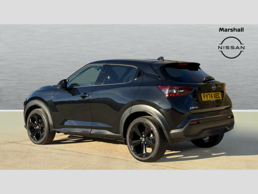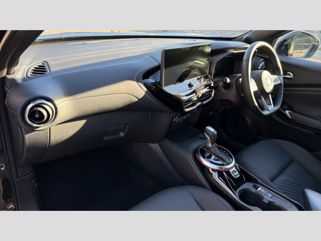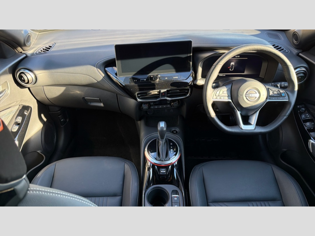 Nissan Juke 1.0 DiG-T Tekna 5dr DCT 12.3" full colour TFT screen combimeter, Drive modes select (Eco, normal and sport), Emergency and breakdown call, Front parking sensor, Idle start/stop system, Intelligent driver alert system, Intelligent lane intervention, Lane departure warning system, Nissan connect 12.3" touch screen entertainment system, Nissan connect nav with TomTom traffic, Nissan connect services, Outside temperature sensor, Power Steering, Rear parking sensor, Stop/start button, Traffic sign recognition, Trip computer, Voice recognition, WiFi connectivity, Wireless Apple CarPlay and Google Android auto, Wireless Smartphone charger, 10 Bose speakers 6 speakers and 2 headrest speakers for driver/passenger seats, 2 X Rear console USB port, Bluetooth system, USB, Aux-in and 12V socket, Bose personal sound stage control, DAB Digital radio, Auto dimming frameless rear view mirror, Automatic hazard signal with emergency stop signal, Body colour door handles, Electrically adjustable door mirrors with integrated indicators, Follow me home headlights, Front and rear electric window with one touch driver window, Heated and auto folding door mirrors, High beam assist, LED 3rd brake light, LED daytime running lights, LED front fog lights, LED headlamps, LED rear fog lamp, LED rear lamps, One touch passenger window, Rain sensor windscreen wipers, Rear privacy glass, Rear side wing doors, Rear wiper, Roof spoiler, Shark fin roof antenna in solid Black, Three blink turn signal, 3 height adjustable rear headrests, 3 seat bench in 2nd row, 60/40 split folding rear seat, Automatic climate control, Card holder on driver sunvisor, Door ambient lighting, Driver seat back pocket, Driver side rear coat hanger, Driver/passenger sunvisors and vanity mirrors, Front and rear cabin lights, Front armrest, Front door pockets with bottle holders, Front head restraints, Front/rear passenger grab handles, Gear console ambient circle lighting, Height adjustable driver's seat, Internal chrome door handles, Leather gearshift knob, Luggage board, Luggage space lighting, Monoform sporty seats, Multifunction steering wheel, Passenger seat back pocket, Rear door bottle holders, Single front passenger seat, Smooth synthetic leather steering wheel, Steering wheel mounted gearshift paddles, Synthetic leather kneepad, Synthetic leather upholstery, Telescopic steering wheel adjustment, Two cupholders in front centre console, Two rear isofix child seat anchorage points with top tether, Welcome light and console tray ambient lighting, Heat pack with height adjustable passenger seats - Juke, ProPilot pack - Juke Auto, ABS with EBD and brake assist, Active ride control, Active Trace Control, Driver and passenger airbags, Driver and passenger side airbags, Electric handbrake with auto hold function, Electronic Stability Programme (ESP), Front and rear curtain airbags, Height adjustable seatbelts, Hill start assist, Intelligent emergency braking with pedestrian and cyclist recognition, Rear door child safety locks, Seatbelt reminder for driver/front passenger and rear seats, Three 3 point rear seatbelts, Traction control, Tyre pressure monitoring system, VDC Dynamic Vehicle Control, Alarm, Immobiliser, Intelligent key and start push button with walk away lock and approach unlock functions, Remote central locking, 19" Alloy wheels, Tyre puncture repair kit