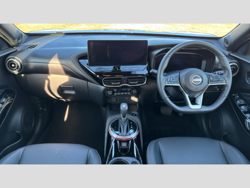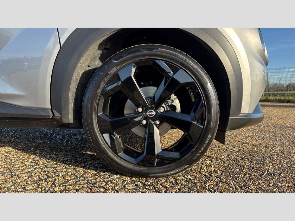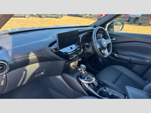Nissan Juke 1.0 DiG-T Tekna 5dr DCT 12.3" full colour TFT screen combimeter, Drive modes select (Eco, normal and sport), Emergency and breakdown call, Front parking sensor, Idle start/stop system, Intelligent driver alert system, Intelligent lane intervention, Lane departure warning system, Nissan connect 12.3" touch screen entertainment system, Nissan connect nav with TomTom traffic, Nissan connect services, Outside temperature sensor, Power Steering, Rear parking sensor, Stop/start button, Traffic sign recognition, Trip computer, Voice recognition, WiFi connectivity, Wireless Apple CarPlay and Google Android auto, Wireless Smartphone charger, 10 Bose speakers 6 speakers and 2 headrest speakers for driver/passenger seats, 2 X Rear console USB port, Bluetooth system, USB, Aux-in and 12V socket, Bose personal sound stage control, DAB Digital radio, Auto dimming frameless rear view mirror, Automatic hazard signal with emergency stop signal, Body colour door handles, Electrically adjustable door mirrors with integrated indicators, Follow me home headlights, Front and rear electric window with one touch driver window, Heated and auto folding door mirrors, High beam assist, LED 3rd brake light, LED daytime running lights, LED front fog lights, LED headlamps, LED rear fog lamp, LED rear lamps, One touch passenger window, Rain sensor windscreen wipers, Rear privacy glass, Rear side wing doors, Rear wiper, Roof spoiler, Shark fin roof antenna in solid Black, Three blink turn signal, 3 height adjustable rear headrests, 3 seat bench in 2nd row, 60/40 split folding rear seat, Automatic climate control, Card holder on driver sunvisor, Door ambient lighting, Driver seat back pocket, Driver side rear coat hanger, Driver/passenger sunvisors and vanity mirrors, Front and rear cabin lights, Front armrest, Front door pockets with bottle holders, Front head restraints, Front/rear passenger grab handles, Gear console ambient circle lighting, Height adjustable driver's seat, Internal chrome door handles, Leather gearshift knob, Luggage board, Luggage space lighting, Monoform sporty seats, Multifunction steering wheel, Passenger seat back pocket, Rear door bottle holders, Single front passenger seat, Smooth synthetic leather steering wheel, Steering wheel mounted gearshift paddles, Synthetic leather kneepad, Synthetic leather upholstery, Telescopic steering wheel adjustment, Two cupholders in front centre console, Two rear isofix child seat anchorage points with top tether, Welcome light and console tray ambient lighting, Heat pack with height adjustable passenger seats - Juke, ProPilot pack - Juke Auto, ABS with EBD and brake assist, Active ride control, Active Trace Control, Driver and passenger airbags, Driver and passenger side airbags, Electric handbrake with auto hold function, Electronic Stability Programme (ESP), Front and rear curtain airbags, Height adjustable seatbelts, Hill start assist, Intelligent emergency braking with pedestrian and cyclist recognition, Rear door child safety locks, Seatbelt reminder for driver/front passenger and rear seats, Three 3 point rear seatbelts, Traction control, Tyre pressure monitoring system, VDC Dynamic Vehicle Control, Alarm, Immobiliser, Intelligent key and start push button with walk away lock and approach unlock functions, Remote central locking, 19" Alloy wheels, Tyre puncture repair kit