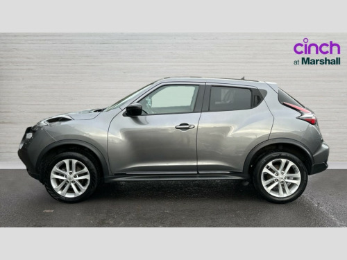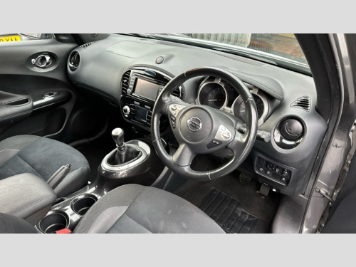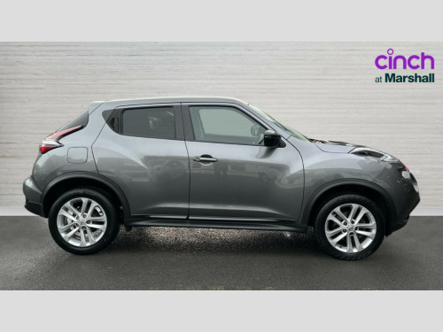 Nissan Juke 1.2 DiG-T Bose Personal Edition 5dr Bluetooth system, Colour rear view camera, Cruise control + speed limiter, Door/boot open warning light, Electric speed sensitive power steering, Exterior temperature gauge, Low fuel level warning light, Nissan connect sat nav system, Push button starter, Service interval indicator, Trip computer, 6 speakers, Aux input, DAB Digital radio, Steering wheel mounted audio controls, Stereo radio/CD player and MP3 facility, USB port, Automatic headlights, Body colour bumpers, Body colour door handles, Electric door mirrors, Electric folding door mirrors, Electric front/rear windows, Heated door mirrors, Heated rear windscreen, LED daytime running lights, LED front fog lights, LED indicators in door mirrors, Privacy glass, Rain sensor windscreen wipers, Rear wiper, 12V socket, 3 height adjustable rear headrests, 60/40 split folding rear seat, Artificial leather/suede upholstery, Climate control, Driver/passenger reading lights, Driver/passenger sunvisors and vanity mirrors, Front armrest, Front cupholders x 2, Front door pockets with bottle holders, Front head restraints, Front seat belt pre-tensioners with load limiters, Gear shift indicator, Glovebox, Height adjustable driver's seat, Interior courtesy lights, Internal chrome door handles, Isofix child seat preparation, Leather steering wheel and gear knob, Luggage area under floor storage box, Map reading lamp, Passenger seat back pocket, Pollen filter, Rear tonneau cover integrated into tailgate, Sports seats, Steering wheel rake adjustment, ABS + EBD + EBA, Child locks on rear doors, Driver and passenger airbags, Driver and passenger side airbags, ESP + traction control, Front and rear curtain airbags, Height adjustable front seatbelts, Passenger airbag deactivate switch, Three 3 point rear seatbelts, Tyre pressure monitoring system, VDC Dynamic Vehicle Control, Warning triangle and first aid kit, Alarm, Immobiliser, Intelligent Key, Remote central locking, 16" Aero black alloy wheels, Tyre repair kit
