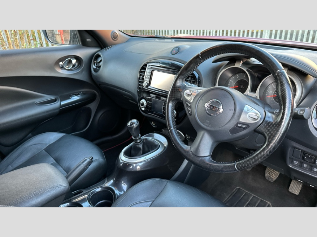 Nissan Juke 1.5 dCi Tekna 5dr Around View Monitor, Blind spot monitoring, Bluetooth system, Colour rear view camera, Cruise control + speed limiter, Electric speed sensitive power steering, Lane departure warning system, Moving object detection, Nissan connect sat nav system, Push button starter, Service interval indicator, Trip computer, 6 speakers, Aux input, DAB Digital radio, Steering wheel mounted audio controls, Stereo radio/CD player and MP3 facility, USB port, 2 speed wipers+variable intermittent wipe, Automatic headlights, Body colour bumpers, Body colour door handles, Dusk sensor, Electric door mirrors, Electric folding door mirrors, Electric front/rear windows, Front fog lights, Heated door mirrors, LED daytime running lights, Privacy glass, Rain sensor, Rear wiper, 12V socket, 60/40 split folding rear seat, Climate control, Front armrest, Front cupholders x 2, Front door pockets with bottle holders, Front head restraints, Front seat belt pre-tensioners with load limiters, Gear shift indicator, Glovebox, Heated front seats, Height adjustable driver's seat, Internal chrome door handles, Isofix child seat preparation, Leather steering wheel and gear knob, Leather upholstery, Luggage area under floor storage box, Map reading lamp, Passenger seat back pocket, Pollen filter, Rear headrests, Rear tonneau cover integrated into tailgate, Sports seats, Steering wheel rake adjustment, ABS + EBD + EBA, Child locks on rear doors, Driver and passenger airbags, Driver and passenger side airbags, ESP + traction control, Front and rear curtain airbags, Height adjustable front seatbelts, Passenger airbag deactivate switch, Three 3 point rear seatbelts, Tyre pressure monitoring system, VDC Dynamic Vehicle Control, Warning triangle and first aid kit, Alarm, Immobiliser, Intelligent Key, Remote central locking, 17" Urban alloy wheels, Tyre repair kit