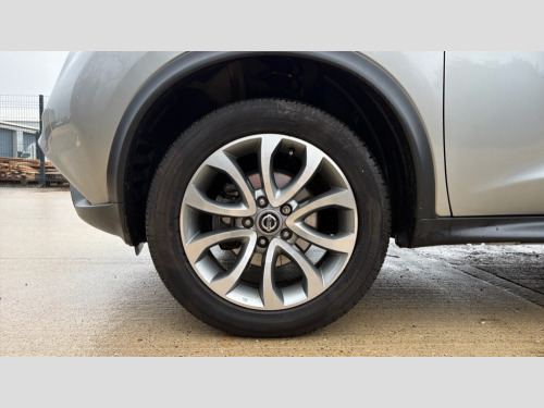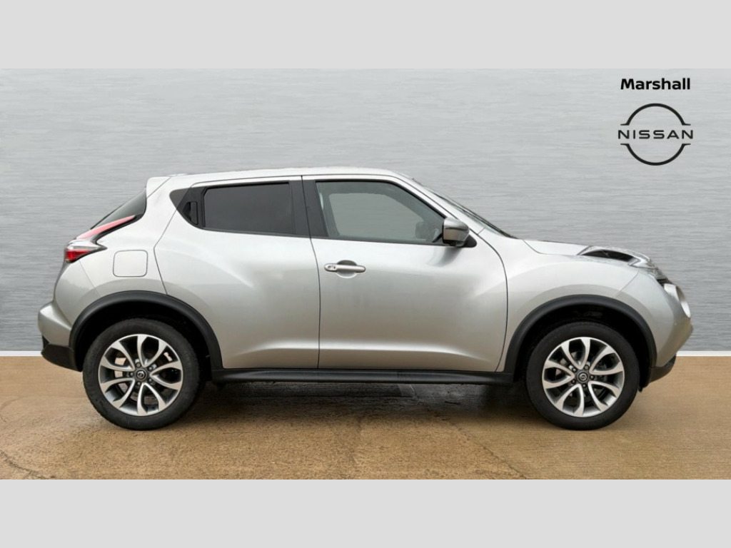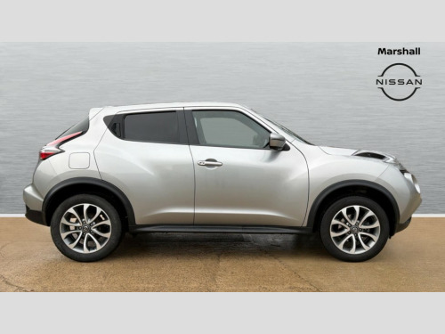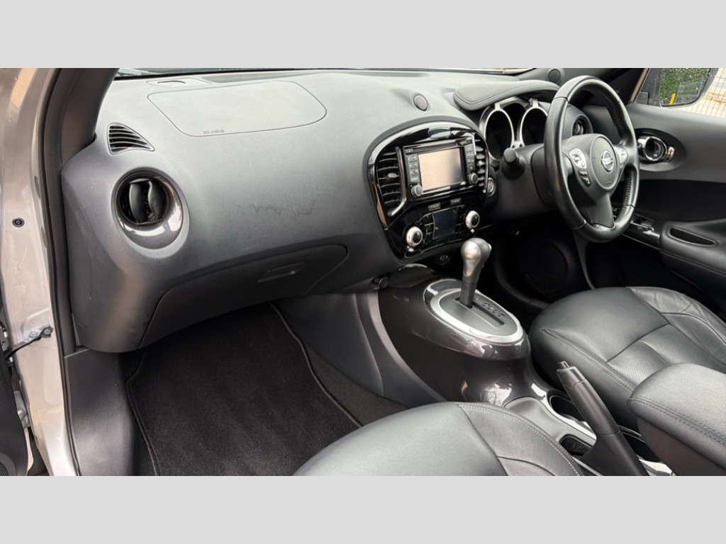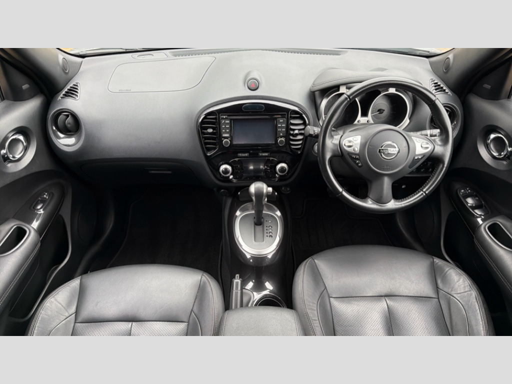 Nissan Juke 1.6 [112] Tekna 5dr CVT [Bose] Around View Monitor, Blind spot monitoring, Bluetooth system, Colour rear view camera, Cruise control + speed limiter, Door/boot open warning light, Electric speed sensitive power steering, Exterior temperature gauge, Lane departure warning system, Low fuel level warning light, Moving object detection, Nissan connect sat nav system, Push button starter, Service interval indicator, Trip computer, 6 speakers, Aux input, Bose personal sound system, DAB Digital radio, Steering wheel mounted audio controls, Stereo radio/CD player and MP3 facility, USB port, Automatic headlights, Body colour bumpers, Body colour door handles, Body colour door mirrors, Dark chrome grille, Dusk sensor, Electric door mirrors, Electric folding door mirrors, Electric front/rear windows, Heated door mirrors, Heated rear windscreen, LED daytime running lights, LED front fog lights, LED indicators in door mirrors, Privacy glass, Rain sensor windscreen wipers, Rear wiper, 12V socket, 3 height adjustable rear headrests, 60/40 split folding rear seat, Climate control, Driver/passenger reading lights, Driver/passenger sunvisors and vanity mirrors, Front armrest, Front cupholders x 2, Front door pockets with bottle holders, Front head restraints, Front seat belt pre-tensioners with load limiters, Gear shift indicator, Glovebox, Heated front seats, Height adjustable driver's seat, Interior courtesy lights, Internal chrome door handles, Isofix child seat preparation, Leather steering wheel and gear knob, Leather upholstery, Luggage area under floor storage box, Map reading lamp, Passenger seat back pocket, Pollen filter, Rear tonneau cover integrated into tailgate, Sports seats, Steering wheel rake adjustment, ABS + EBD + EBA, Child locks on rear doors, Driver and passenger airbags, Driver and passenger side airbags, ESP + traction control, Front and rear curtain airbags, Height adjustable front seatbelts, Passenger airbag deactivate switch, Three 3 point rear seatbelts, Tyre pressure monitoring system, VDC Dynamic Vehicle Control, Warning triangle and first aid kit, Alarm, Immobiliser, Intelligent Key, Remote central locking, 17" Urban alloy wheels, Tyre repair kit