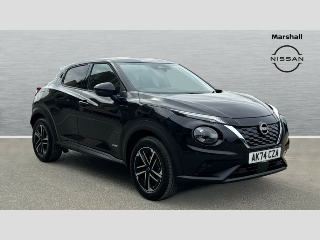 Nissan Juke 1.6 Hybrid N-Connecta 5dr Auto 12.3" full colour TFT screen combimeter, Drive modes select (Eco, normal and sport), e-Pedal step, Emergency and breakdown call, EV mode switch, Front parking sensor, Intelligent driver alert system, Intelligent lane intervention, Lane departure warning system, Nissan connect 12.3" touch screen entertainment system, Nissan connect nav with TomTom traffic, Nissan connect services, Outside temperature sensor, Power Steering, Rear parking sensor, Stop/start button, Traffic sign recognition, Trip computer, Voice recognition, WiFi connectivity, Wireless Apple CarPlay and Google Android auto, Wireless Smartphone charger, 2 X Rear console USB port, 6 speakers, Bluetooth system, USB, Aux-in and 12V socket, DAB Digital radio, Auto dimming frameless rear view mirror, Automatic hazard signal with emergency stop signal, Body colour door handles, Electrically adjustable door mirrors with integrated indicators, Follow me home headlights, Front and rear electric window with one touch driver window, Heated and auto folding door mirrors, High beam assist, LED 3rd brake light, LED daytime running lights, LED headlamps, LED rear fog lamp, LED rear lamps, One touch passenger window, Rain sensor windscreen wipers, Rear privacy glass, Rear side wing doors, Rear wiper, Roof spoiler, Shark fin roof antenna in solid Black, Three blink turn signal, 3 height adjustable rear headrests, 3 seat bench in 2nd row, 60/40 split folding rear seat, Automatic climate control, Card holder on driver sunvisor, Cloth/Synthetic leather with melange fabric inserts, Driver side rear coat hanger, Driver/passenger sunvisors and vanity mirrors, Front and rear cabin lights, Front armrest, Front door pockets with bottle holders, Front head restraints, Front/rear passenger grab handles, Height adjustable driver's seat, Internal chrome door handles, Leather gearshift knob, Luggage board, Luggage space lighting, Monoform sporty seats, Multifunction steering wheel, Rear door bottle holders, Single front passenger seat, Smooth synthetic leather steering wheel, Synthetic leather kneepad, Telescopic steering wheel adjustment, Two cupholders in front centre console, Two rear isofix child seat anchorage points with top tether, Welcome light and console tray ambient lighting, ABS with EBD and brake assist, Active ride control, Active Trace Control, Driver and passenger airbags, Driver and passenger side airbags, Electric handbrake with auto hold function, Electronic Stability Programme (ESP), Front and rear curtain airbags, Height adjustable seatbelts, Hill start assist, Intelligent emergency braking with pedestrian and cyclist recognition, Rear door child safety locks, Seatbelt reminder for driver/front passenger and rear seats, Three 3 point rear seatbelts, Traction control, Tyre pressure monitoring system, VDC Dynamic Vehicle Control, Alarm, Immobiliser, Intelligent key and start push button with walk away lock and approach unlock functions, Remote central locking, 17" Alloy wheels, Tyre puncture repair kit