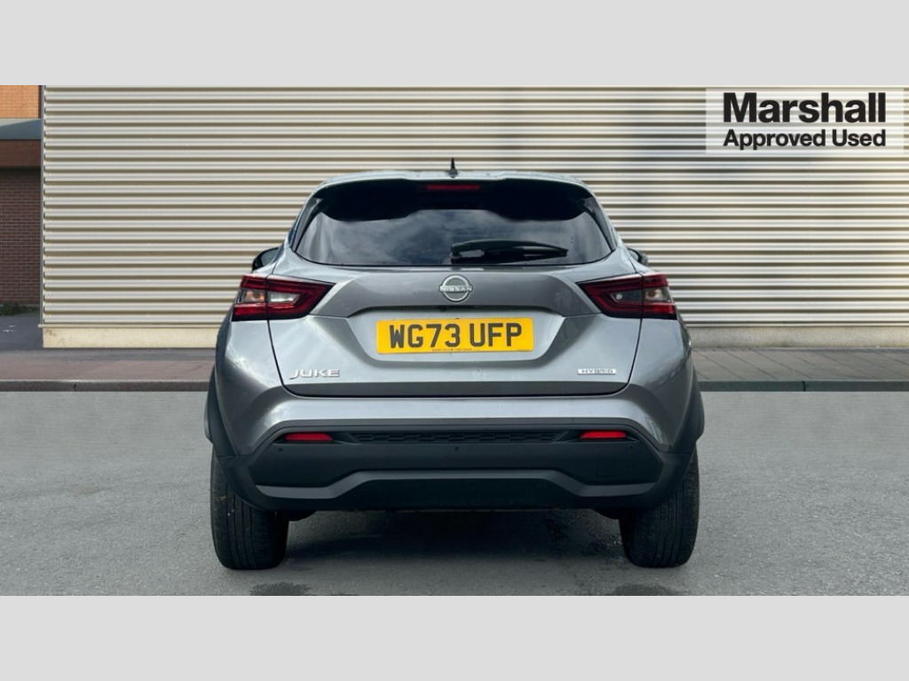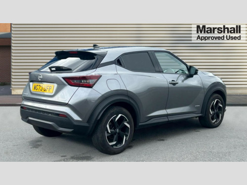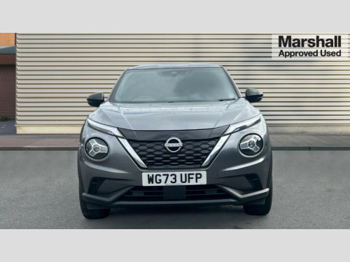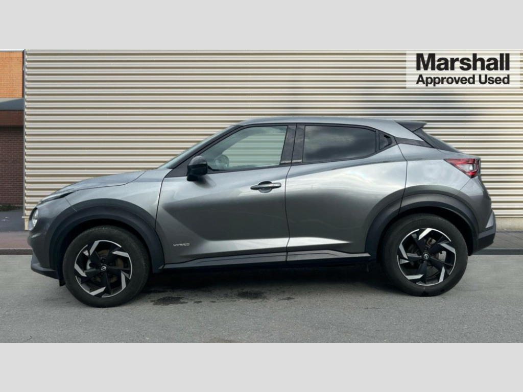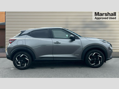 Nissan Juke 1.6 Hybrid N-Connecta 5dr Auto 7" full colour TFT screen combimeter, Apple CarPlay and Google Android auto, Drive modes select (Eco, normal and sport), e-Pedal step, Emergency and breakdown call, EV mode selector, Front parking sensor, Intelligent lane intervention, Lane departure warning system, Nissan connect 8" touch screen entertainment system, Nissan connect nav with TomTom traffic, Nissan connect services and Wifi connection, Outside temperature sensor, Power Steering, Rear parking sensor, Traffic sign recognition, Trip computer, Voice recognition, Gasoline particulate filter, 6 speakers, Bluetooth system, USB, Aux-in and 12V socket, DAB Digital radio, Rear console USB port, Auto dimming interior rear view mirror, Auto headlights, Automatic hazard signal with emergency stop signal, Body colour bumpers, Body colour door handles, Electrically adjustable door mirrors with integrated indicators, Follow me home headlights, Front and rear electric window with one touch driver window, Heated and auto folding door mirrors, High beam assist, LED 3rd brake light, LED daytime running lights, LED headlamps, LED rear fog lamp, LED rear lamps, Rain sensor windscreen wipers, Rear privacy glass, Rear side wing doors, Rear wiper, Roof spoiler, Shark fin roof antenna in Pearl Black, Three blink turn signal, 3 height adjustable rear headrests, 3 seat bench in 2nd row, 60/40 split folding rear seat, Automatic climate control, Card holder on driver sunvisor, Cloth upholstery with black and metallic grey syntech leather inserts, Driver and passenger sliding and reclining seats, Driver side rear coat hanger, Driver/passenger sunvisors and vanity mirrors, Front and rear cabin lights, Front armrest, Front door pockets with bottle holders, Front head restraints, Front/rear passenger grab handles, Grey synthetic leather kneepad, Height adjustable driver's seat, Internal chrome door handles, Leather gearshift knob, Leather steering wheel, Luggage board, Luggage space lighting, Monoform sporty seats, Multifunction steering wheel, Rear door bottle holders, Single front passenger seat, Steering wheel mounted gearshift paddles, Telescopic steering wheel adjustment, Two cupholders in front centre console, Two rear isofix child seat anchorage points with top tether, Welcome light and console tray ambient lighting, ABS with EBD and brake assist, Active ride control, Active Trace Control, Driver and passenger airbags, Driver and passenger side airbags, Electric handbrake with auto hold function, Electronic Stability Programme (ESP), Front and rear curtain airbags, Height adjustable seatbelts, Hill start assist, Intelligent emergency braking with pedestrian and cyclist recognition, Rear door child safety locks, Seatbelt reminder for driver/front passenger and rear seats, Single tone horn, Three 3 point rear seatbelts, Traction control, Tyre pressure monitoring system, VDC Dynamic Vehicle Control, Ventilated rear brake discs, Alarm, Immobiliser, Intelligent key and start push button with walk away lock and approach unlock functions, Remote central locking