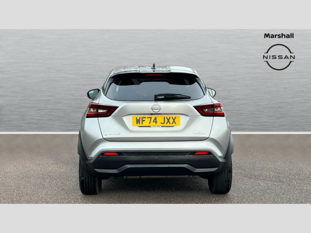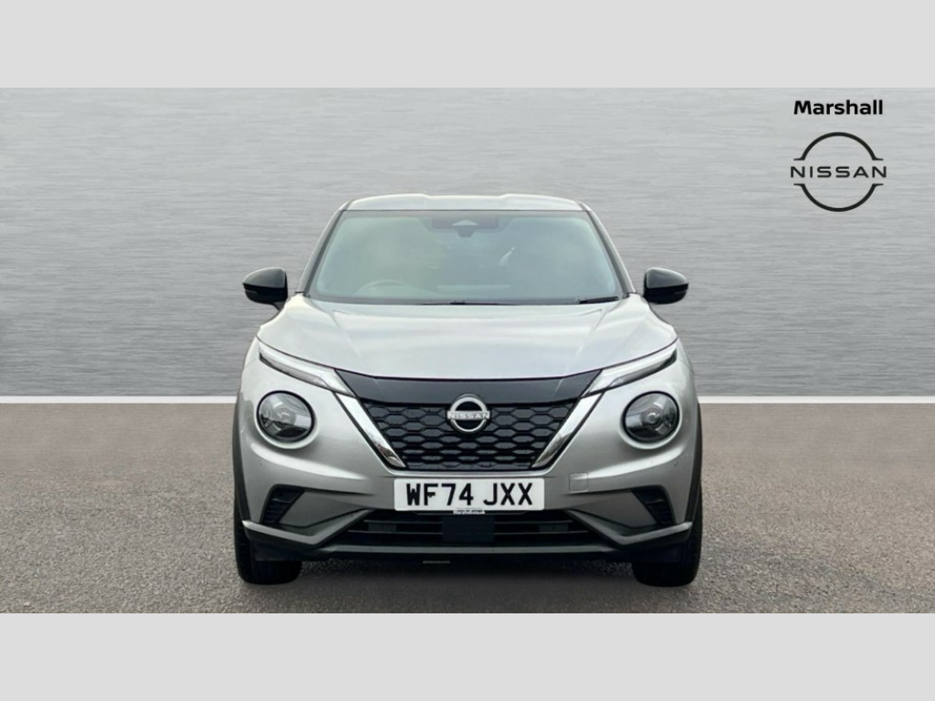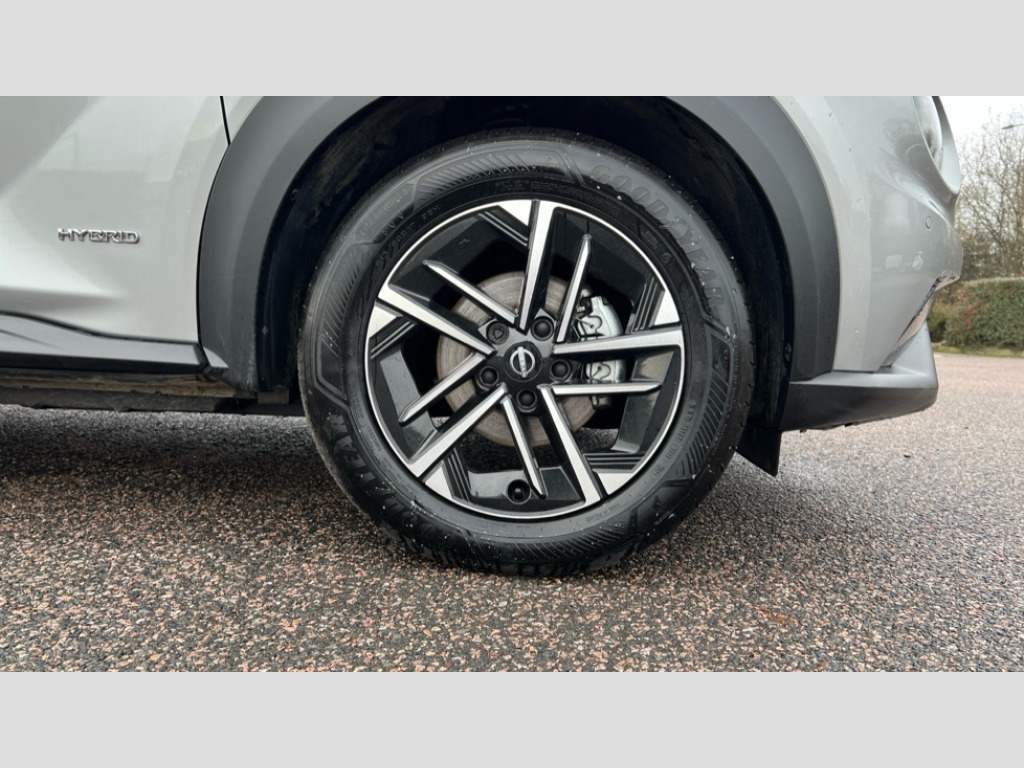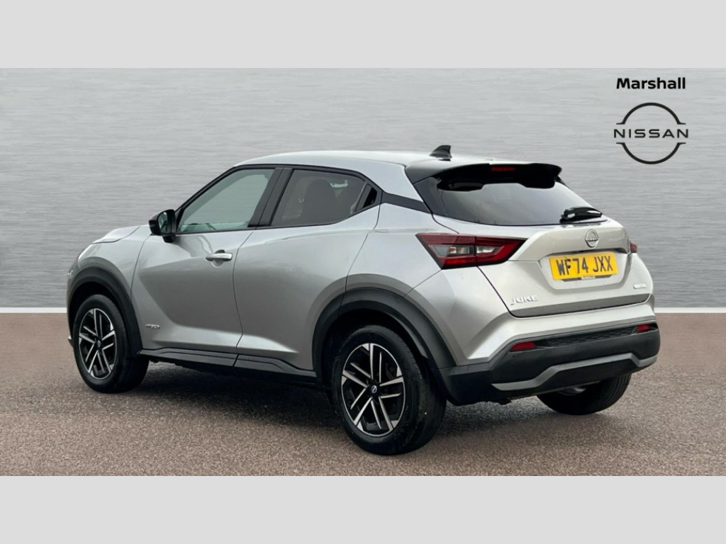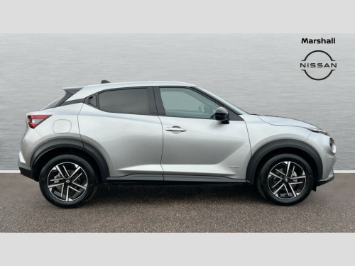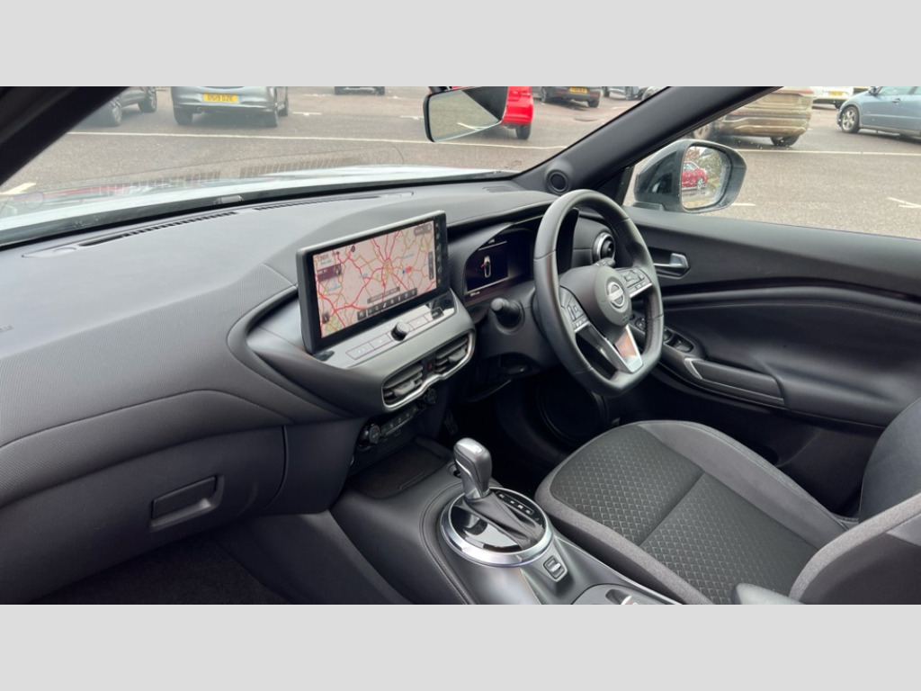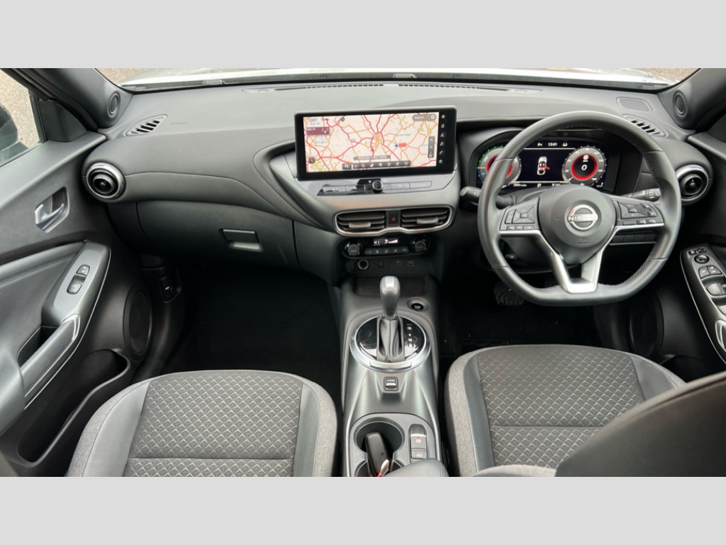 Nissan Juke 1.6 Hybrid N-Connecta 5dr Auto 12.3" full colour TFT screen combimeter, Drive modes select (Eco, normal and sport), e-Pedal step, Emergency and breakdown call, EV mode switch, Front parking sensor, Intelligent driver alert system, Intelligent lane intervention, Lane departure warning system, Nissan connect 12.3" touch screen entertainment system, Nissan connect nav with TomTom traffic, Nissan connect services, Outside temperature sensor, Power Steering, Rear parking sensor, Stop/start button, Traffic sign recognition, Trip computer, Voice recognition, WiFi connectivity, Wireless Apple CarPlay and Google Android auto, Wireless Smartphone charger, 2 X Rear console USB port, 6 speakers, Bluetooth system, USB, Aux-in and 12V socket, DAB Digital radio, Auto dimming frameless rear view mirror, Automatic hazard signal with emergency stop signal, Body colour door handles, Electrically adjustable door mirrors with integrated indicators, Follow me home headlights, Front and rear electric window with one touch driver window, Heated and auto folding door mirrors, High beam assist, LED 3rd brake light, LED daytime running lights, LED headlamps, LED rear fog lamp, LED rear lamps, One touch passenger window, Rain sensor windscreen wipers, Rear privacy glass, Rear side wing doors, Rear wiper, Roof spoiler, Shark fin roof antenna in solid Black, Three blink turn signal, 3 height adjustable rear headrests, 3 seat bench in 2nd row, 60/40 split folding rear seat, Automatic climate control, Card holder on driver sunvisor, Cloth/Synthetic leather with melange fabric inserts, Driver side rear coat hanger, Driver/passenger sunvisors and vanity mirrors, Front and rear cabin lights, Front armrest, Front door pockets with bottle holders, Front head restraints, Front/rear passenger grab handles, Height adjustable driver's seat, Internal chrome door handles, Leather gearshift knob, Luggage board, Luggage space lighting, Monoform sporty seats, Multifunction steering wheel, Rear door bottle holders, Single front passenger seat, Smooth synthetic leather steering wheel, Synthetic leather kneepad, Telescopic steering wheel adjustment, Two cupholders in front centre console, Two rear isofix child seat anchorage points with top tether, Welcome light and console tray ambient lighting, ABS with EBD and brake assist, Active ride control, Active Trace Control, Driver and passenger airbags, Driver and passenger side airbags, Electric handbrake with auto hold function, Electronic Stability Programme (ESP), Front and rear curtain airbags, Height adjustable seatbelts, Hill start assist, Intelligent emergency braking with pedestrian and cyclist recognition, Rear door child safety locks, Seatbelt reminder for driver/front passenger and rear seats, Three 3 point rear seatbelts, Traction control, Tyre pressure monitoring system, VDC Dynamic Vehicle Control, Alarm, Immobiliser, Intelligent key and start push button with walk away lock and approach unlock functions, Remote central locking, 17" Alloy wheels, Tyre puncture repair kit
