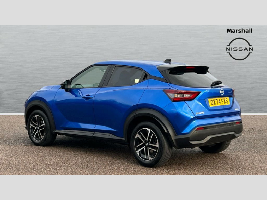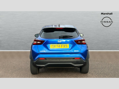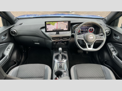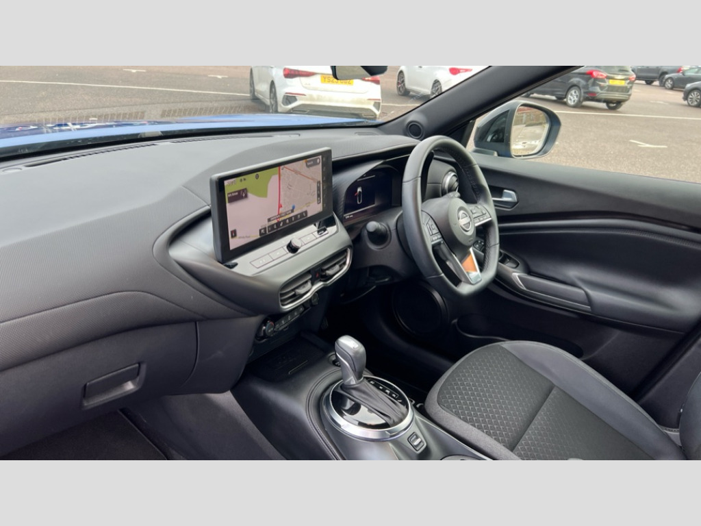 Nissan Juke 1.6 Hybrid N-Connecta 5dr Auto 12.3" full colour TFT screen combimeter, Drive modes select (Eco, normal and sport), e-Pedal step, Emergency and breakdown call, EV mode switch, Front parking sensor, Intelligent driver alert system, Intelligent lane intervention, Lane departure warning system, Nissan connect 12.3" touch screen entertainment system, Nissan connect nav with TomTom traffic, Nissan connect services, Outside temperature sensor, Power Steering, Rear parking sensor, Stop/start button, Traffic sign recognition, Trip computer, Voice recognition, WiFi connectivity, Wireless Apple CarPlay and Google Android auto, Wireless Smartphone charger, 2 X Rear console USB port, 6 speakers, Bluetooth system, USB, Aux-in and 12V socket, DAB Digital radio, Auto dimming frameless rear view mirror, Automatic hazard signal with emergency stop signal, Body colour door handles, Electrically adjustable door mirrors with integrated indicators, Follow me home headlights, Front and rear electric window with one touch driver window, Heated and auto folding door mirrors, High beam assist, LED 3rd brake light, LED daytime running lights, LED headlamps, LED rear fog lamp, LED rear lamps, One touch passenger window, Rain sensor windscreen wipers, Rear privacy glass, Rear side wing doors, Rear wiper, Roof spoiler, Shark fin roof antenna in solid Black, Three blink turn signal, 3 height adjustable rear headrests, 3 seat bench in 2nd row, 60/40 split folding rear seat, Automatic climate control, Card holder on driver sunvisor, Cloth/Synthetic leather with melange fabric inserts, Driver side rear coat hanger, Driver/passenger sunvisors and vanity mirrors, Front and rear cabin lights, Front armrest, Front door pockets with bottle holders, Front head restraints, Front/rear passenger grab handles, Height adjustable driver's seat, Internal chrome door handles, Leather gearshift knob, Luggage board, Luggage space lighting, Monoform sporty seats, Multifunction steering wheel, Rear door bottle holders, Single front passenger seat, Smooth synthetic leather steering wheel, Synthetic leather kneepad, Telescopic steering wheel adjustment, Two cupholders in front centre console, Two rear isofix child seat anchorage points with top tether, Welcome light and console tray ambient lighting, ABS with EBD and brake assist, Active ride control, Active Trace Control, Driver and passenger airbags, Driver and passenger side airbags, Electric handbrake with auto hold function, Electronic Stability Programme (ESP), Front and rear curtain airbags, Height adjustable seatbelts, Hill start assist, Intelligent emergency braking with pedestrian and cyclist recognition, Rear door child safety locks, Seatbelt reminder for driver/front passenger and rear seats, Three 3 point rear seatbelts, Traction control, Tyre pressure monitoring system, VDC Dynamic Vehicle Control, Alarm, Immobiliser, Intelligent key and start push button with walk away lock and approach unlock functions, Remote central locking, 17" Alloy wheels, Tyre puncture repair kit