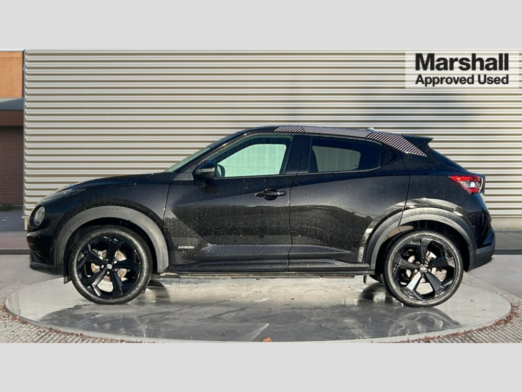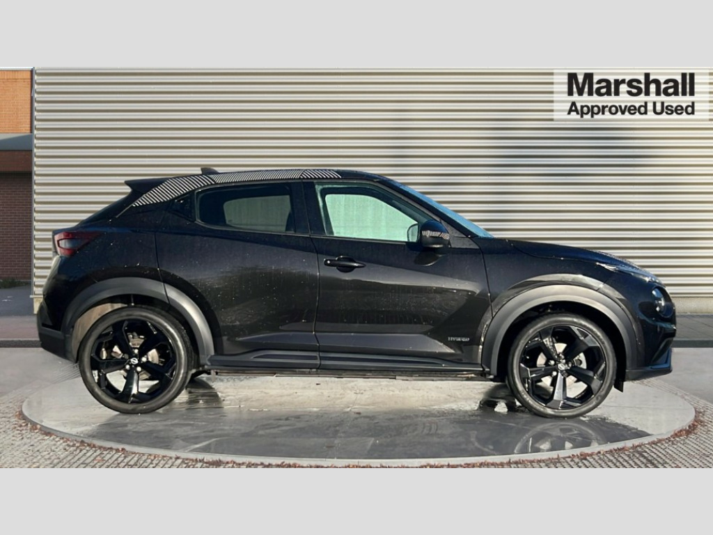 Nissan Juke 1.6 Hybrid Premiere Edition 5dr Auto 7" full colour TFT screen combimeter, Apple CarPlay and Google Android auto, Cruise control + speed limiter, Drive modes select (Eco, normal and sport), e-Pedal step, Emergency and breakdown call, EV mode selector, Front parking sensor, Intelligent lane intervention, Lane departure warning system, Nissan connect 8" touch screen entertainment system, Nissan connect nav with TomTom traffic, Nissan connect services and Wifi connection, Outside temperature sensor, Power Steering, Rear parking sensor, Traffic sign recognition, Trip computer, Voice recognition, Gasoline particulate filter, 6 speakers, Bluetooth system, USB, Aux-in and 12V socket, DAB Digital radio, Rear console USB port, Auto dimming interior rear view mirror, Auto headlights, Automatic hazard signal with emergency stop signal, Body colour bumpers, Body colour door handles, Electrically adjustable door mirrors with integrated indicators, Follow me home headlights, Front and rear electric window with one touch driver window, Heated and auto folding door mirrors, High beam assist, LED daytime running lights, LED front fog lights, LED headlamps, LED rear fog lamp, LED rear lamps, Pearl black door mirrors, Pearl black roof, Rain sensor windscreen wipers, Rear privacy glass, Rear side wing doors, Rear wiper, Shark fin roof antenna in Pearl Black, Textured stickers on door mirrors and roof, Three blink turn signal, 3 height adjustable rear headrests, 3 seat bench in 2nd row, 60/40 split folding rear seat, Automatic climate control, Card holder on driver sunvisor, Driver and passenger sliding and reclining seats, Driver side rear coat hanger, Driver/passenger sunvisors and vanity mirrors, Front and rear cabin lights, Front armrest, Front door pockets with bottle holders, Front head restraints, Front passenger isofix child seat anchorage point, Front/rear passenger grab handles, Grey synthetic leather kneepad, Height adjustable driver's seat, Internal chrome door handles, Leather gearshift knob, Leather steering wheel, Luggage board, Luggage space lighting, Monoform sporty seats, Multifunction steering wheel, Rear door bottle holders, Single front passenger seat, Steering wheel mounted gearshift paddles, Synthetic leather upholstery with light grey accents and two tone dashboard, Telescopic steering wheel adjustment, Two cupholders in front centre console, Two rear isofix child seat anchorage points with top tether, Welcome light and console tray ambient lighting, ABS with EBD and brake assist, Active ride control, Active Trace Control, Driver and passenger airbags, Driver and passenger side airbags, Electric handbrake with auto hold function, Electronic Stability Programme (ESP), Front and rear curtain airbags, Height adjustable seatbelts, Hill start assist, Intelligent emergency braking with pedestrian and cyclist recognition, Rear door child safety locks, Seatbelt reminder for driver/front passenger and rear seats, Single tone horn, Three 3 point rear seatbelts, Traction control, Tyre pressure monitoring system, VDC Dynamic Vehicle Control, Ventilated rear brake discs, Alarm, Immobiliser, Intelligent key and start push button with walk away lock and approach unlock functions, Remote central locking, 19" Glossy black alloy wheels, Tyre puncture repair kit