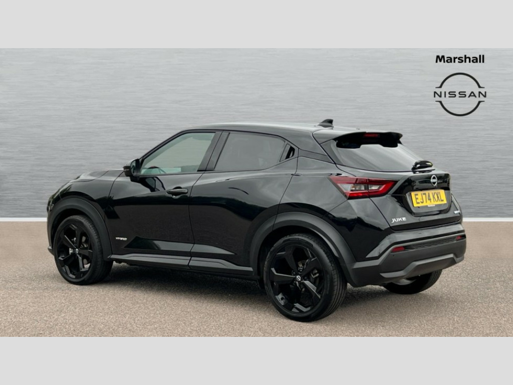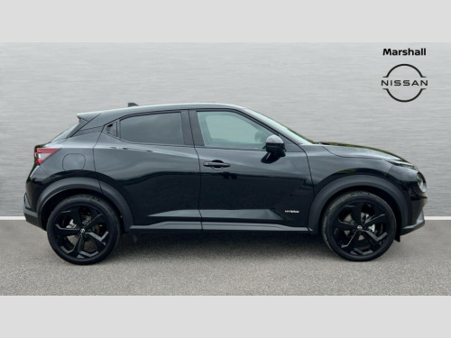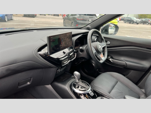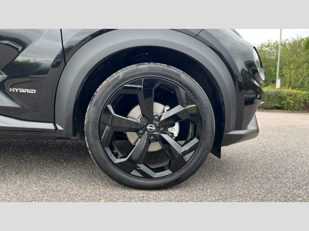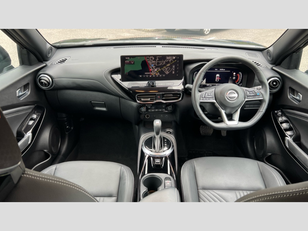 Nissan Juke 1.6 Hybrid Tekna 5dr Auto 12.3" full colour TFT screen combimeter, Drive modes select (Eco, normal and sport), e-Pedal step, Emergency and breakdown call, EV mode switch, Front parking sensor, Intelligent driver alert system, Intelligent lane intervention, Lane departure warning system, Nissan connect 12.3" touch screen entertainment system, Nissan connect nav with TomTom traffic, Nissan connect services, Outside temperature sensor, Power Steering, Rear parking sensor, Stop/start button, Traffic sign recognition, Trip computer, Voice recognition, WiFi connectivity, Wireless Apple CarPlay and Google Android auto, Wireless Smartphone charger, 10 Bose speakers 6 speakers and 2 headrest speakers for driver/passenger seats, 2 X Rear console USB port, Bluetooth system, USB, Aux-in and 12V socket, Bose personal sound stage control, DAB Digital radio, Auto dimming frameless rear view mirror, Automatic hazard signal with emergency stop signal, Body colour door handles, Electrically adjustable door mirrors with integrated indicators, Follow me home headlights, Front and rear electric window with one touch driver window, Heated and auto folding door mirrors, High beam assist, LED 3rd brake light, LED daytime running lights, LED front fog lights, LED headlamps, LED rear fog lamp, LED rear lamps, One touch passenger window, Rain sensor windscreen wipers, Rear privacy glass, Rear side wing doors, Rear wiper, Roof spoiler, Shark fin roof antenna in solid Black, Three blink turn signal, 3 height adjustable rear headrests, 3 seat bench in 2nd row, 60/40 split folding rear seat, Automatic climate control, Card holder on driver sunvisor, Door ambient lighting, Driver seat back pocket, Driver side rear coat hanger, Driver/passenger sunvisors and vanity mirrors, Front and rear cabin lights, Front armrest, Front door pockets with bottle holders, Front head restraints, Front/rear passenger grab handles, Gear console ambient circle lighting, Height adjustable driver's seat, Internal chrome door handles, Leather gearshift knob, Luggage board, Luggage space lighting, Monoform sporty seats, Multifunction steering wheel, Passenger seat back pocket, Rear door bottle holders, Single front passenger seat, Smooth synthetic leather steering wheel, Synthetic leather kneepad, Synthetic leather upholstery, Telescopic steering wheel adjustment, Two cupholders in front centre console, Two rear isofix child seat anchorage points with top tether, Welcome light and console tray ambient lighting, Heat pack with height adjustable passenger seats - Juke, ProPilot pack - Juke Auto, ABS with EBD and brake assist, Active ride control, Active Trace Control, Driver and passenger airbags, Driver and passenger side airbags, Electric handbrake with auto hold function, Electronic Stability Programme (ESP), Front and rear curtain airbags, Height adjustable seatbelts, Hill start assist, Intelligent emergency braking with pedestrian and cyclist recognition, Rear door child safety locks, Seatbelt reminder for driver/front passenger and rear seats, Three 3 point rear seatbelts, Traction control, Tyre pressure monitoring system, VDC Dynamic Vehicle Control, Alarm, Immobiliser, Intelligent key and start push button with walk away lock and approach unlock functions, Remote central locking, 19" Alloy wheels, Tyre puncture repair kit