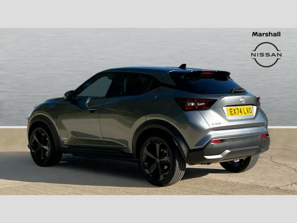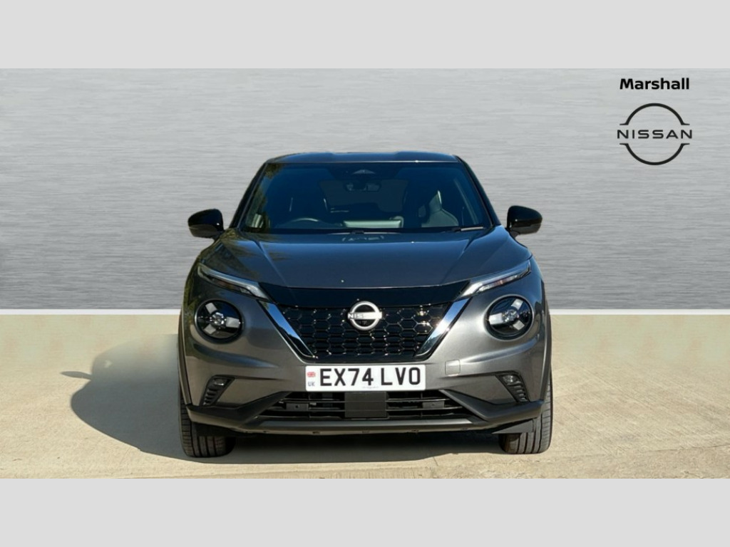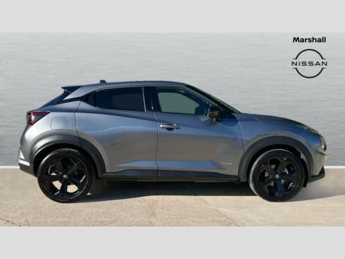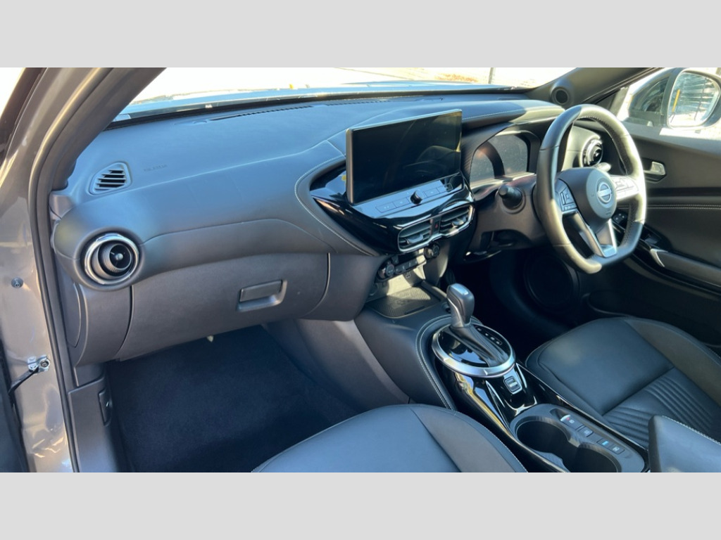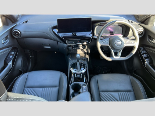 Nissan Juke 1.6 Hybrid Tekna 5dr Auto 12.3" full colour TFT screen combimeter, Drive modes select (Eco, normal and sport), e-Pedal step, Emergency and breakdown call, EV mode switch, Front parking sensor, Intelligent driver alert system, Intelligent lane intervention, Lane departure warning system, Nissan connect 12.3" touch screen entertainment system, Nissan connect nav with TomTom traffic, Nissan connect services, Outside temperature sensor, Power Steering, Rear parking sensor, Stop/start button, Traffic sign recognition, Trip computer, Voice recognition, WiFi connectivity, Wireless Apple CarPlay and Google Android auto, Wireless Smartphone charger, 10 Bose speakers 6 speakers and 2 headrest speakers for driver/passenger seats, 2 X Rear console USB port, Bluetooth system, USB, Aux-in and 12V socket, Bose personal sound stage control, DAB Digital radio, Auto dimming frameless rear view mirror, Automatic hazard signal with emergency stop signal, Body colour door handles, Electrically adjustable door mirrors with integrated indicators, Follow me home headlights, Front and rear electric window with one touch driver window, Heated and auto folding door mirrors, High beam assist, LED 3rd brake light, LED daytime running lights, LED front fog lights, LED headlamps, LED rear fog lamp, LED rear lamps, One touch passenger window, Rain sensor windscreen wipers, Rear privacy glass, Rear side wing doors, Rear wiper, Roof spoiler, Shark fin roof antenna in solid Black, Three blink turn signal, 3 height adjustable rear headrests, 3 seat bench in 2nd row, 60/40 split folding rear seat, Automatic climate control, Card holder on driver sunvisor, Door ambient lighting, Driver seat back pocket, Driver side rear coat hanger, Driver/passenger sunvisors and vanity mirrors, Front and rear cabin lights, Front armrest, Front door pockets with bottle holders, Front head restraints, Front/rear passenger grab handles, Gear console ambient circle lighting, Height adjustable driver's seat, Internal chrome door handles, Leather gearshift knob, Luggage board, Luggage space lighting, Monoform sporty seats, Multifunction steering wheel, Passenger seat back pocket, Rear door bottle holders, Single front passenger seat, Smooth synthetic leather steering wheel, Synthetic leather kneepad, Synthetic leather upholstery, Telescopic steering wheel adjustment, Two cupholders in front centre console, Two rear isofix child seat anchorage points with top tether, Welcome light and console tray ambient lighting, Heat pack with height adjustable passenger seats - Juke, ProPilot pack - Juke Auto, ABS with EBD and brake assist, Active ride control, Active Trace Control, Driver and passenger airbags, Driver and passenger side airbags, Electric handbrake with auto hold function, Electronic Stability Programme (ESP), Front and rear curtain airbags, Height adjustable seatbelts, Hill start assist, Intelligent emergency braking with pedestrian and cyclist recognition, Rear door child safety locks, Seatbelt reminder for driver/front passenger and rear seats, Three 3 point rear seatbelts, Traction control, Tyre pressure monitoring system, VDC Dynamic Vehicle Control, Alarm, Immobiliser, Intelligent key and start push button with walk away lock and approach unlock functions, Remote central locking, 19" Alloy wheels, Tyre puncture repair kit