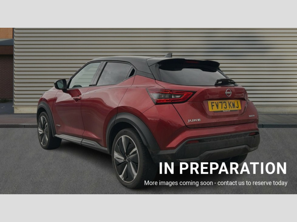 Nissan Juke 1.6 Hybrid Tekna+ 5dr Auto 7" full colour TFT screen combimeter, Apple CarPlay and Google Android auto, Drive modes select (Eco, normal and sport), e-Pedal step, Emergency and breakdown call, EV mode selector, Front parking sensor, Intelligent lane intervention, Lane departure warning system, Nissan connect 8" touch screen entertainment system, Nissan connect nav with TomTom traffic, Nissan connect services and Wifi connection, Outside temperature sensor, Power Steering, Rear parking sensor, Traffic sign recognition, Trip computer, Voice recognition, Gasoline particulate filter, 10 Bose speakers 6 speakers and 2 headrest speakers for driver/passenger seats, Bluetooth system, USB, Aux-in and 12V socket, Bose personal sound stage control, DAB Digital radio, Rear console USB port, Auto dimming interior rear view mirror, Auto headlights, Automatic hazard signal with emergency stop signal, Body colour bumpers, Body colour door handles, Electrically adjustable door mirrors with integrated indicators, Follow me home headlights, Front and rear electric window with one touch driver window, Heated and auto folding door mirrors, High beam assist, LED daytime running lights, LED front fog lights, LED headlamps, LED rear fog lamp, LED rear lamps, Rain sensor windscreen wipers, Rear privacy glass, Rear side wing doors, Rear wiper, Satin silver front bumper finisher, Thermaclear heated windscreen, Three blink turn signal, 3 height adjustable rear headrests, 3 seat bench in 2nd row, 60/40 split folding rear seat, Automatic climate control, Card holder on driver sunvisor, Door ambient lighting, Driver and passenger sliding and reclining seats, Driver seat back pocket, Driver side rear coat hanger, Driver/passenger sunvisors and vanity mirrors, Front and rear cabin lights, Front armrest, Front door pockets with bottle holders, Front head restraints, Front passenger isofix child seat anchorage point, Front/rear passenger grab handles, Gear console ambient circle lighting, Grey synthetic leather kneepad, Heated front seats, Height adjustable driver's seat, Height adjustable passenger seat, Internal chrome door handles, Leather gearshift knob, Leather steering wheel, Luggage board, Luggage space lighting, Monoform sporty seats, Multifunction steering wheel, Passenger seat back pocket, Rear door bottle holders, Single front passenger seat, Steering wheel mounted gearshift paddles, Telescopic steering wheel adjustment, Two cupholders in front centre console, Two rear isofix child seat anchorage points with top tether, Welcome light and console tray ambient lighting, ProPilot pack - Juke, ABS with EBD and brake assist, Active ride control, Active Trace Control, Driver and passenger airbags, Driver and passenger side airbags, Electric handbrake with auto hold function, Electronic Stability Programme (ESP), Front and rear curtain airbags, Height adjustable seatbelts, Hill start assist, Intelligent emergency braking with pedestrian and cyclist recognition, Rear door child safety locks, Seatbelt reminder for driver/front passenger and rear seats, Single tone horn, Three 3 point rear seatbelts, Traction control, Tyre pressure monitoring system, VDC Dynamic Vehicle Control, Ventilated rear brake discs, Alarm, Immobiliser, Intelligent key and start push button with walk away lock and approach unlock functions, Remote central locking, 19" Aero alloy wheels