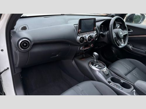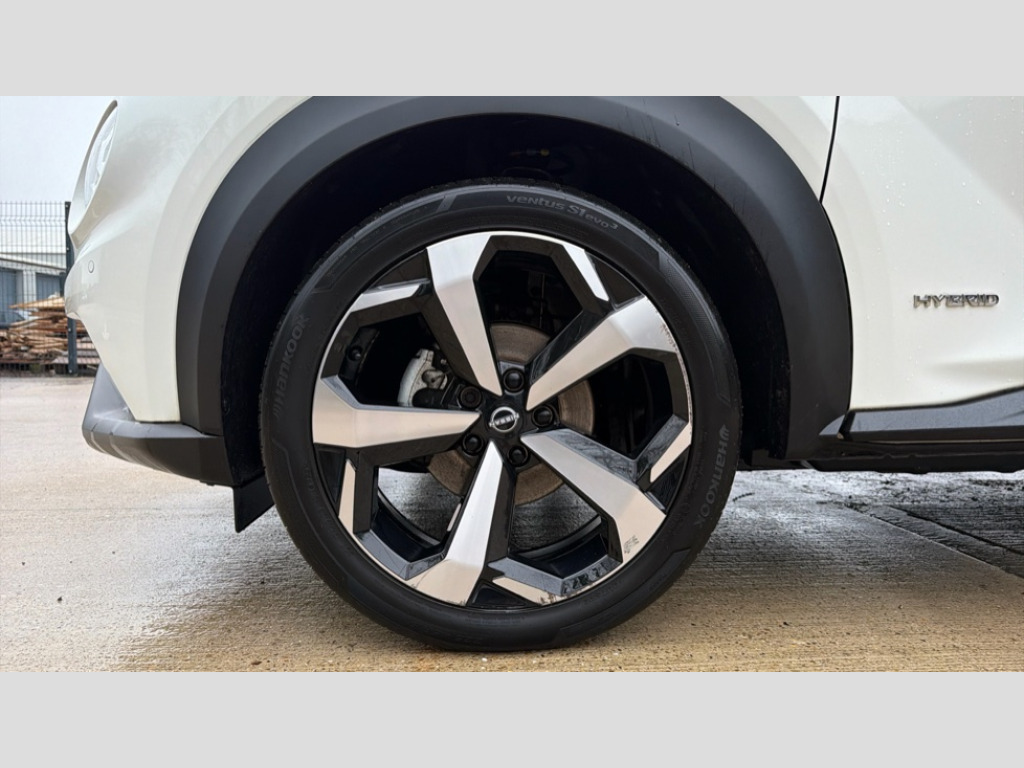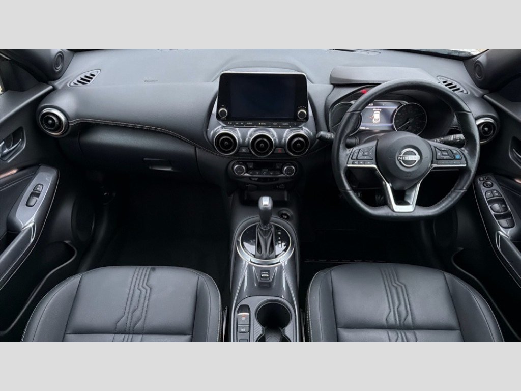 Nissan Juke 1.6 Hybrid Tekna 5dr Auto 7" full colour TFT screen combimeter, Apple CarPlay and Google Android auto, Drive modes select (Eco, normal and sport), e-Pedal step, Emergency and breakdown call, EV mode selector, Front parking sensor, Intelligent lane intervention, Lane departure warning system, Nissan connect 8" touch screen entertainment system, Nissan connect nav with TomTom traffic, Nissan connect services and Wifi connection, Outside temperature sensor, Power Steering, Rear parking sensor, Traffic sign recognition, Trip computer, Voice recognition, Gasoline particulate filter, 10 Bose speakers 6 speakers and 2 headrest speakers for driver/passenger seats, Bluetooth system, USB, Aux-in and 12V socket, Bose personal sound stage control, DAB Digital radio, Rear console USB port, Auto dimming interior rear view mirror, Auto headlights, Automatic hazard signal with emergency stop signal, Body colour bumpers, Body colour door handles, Electrically adjustable door mirrors with integrated indicators, Follow me home headlights, Front and rear electric window with one touch driver window, Heated and auto folding door mirrors, High beam assist, LED 3rd brake light, LED daytime running lights, LED front fog lights, LED headlamps, LED rear fog lamp, LED rear lamps, Rain sensor windscreen wipers, Rear privacy glass, Rear side wing doors, Rear wiper, Roof spoiler, Shark fin roof antenna in Pearl Black, Thermaclear heated windscreen, Three blink turn signal, 3 height adjustable rear headrests, 3 seat bench in 2nd row, 60/40 split folding rear seat, Automatic climate control, Card holder on driver sunvisor, Door ambient lighting, Driver and passenger sliding and reclining seats, Driver seat back pocket, Driver side rear coat hanger, Driver/passenger sunvisors and vanity mirrors, Front and rear cabin lights, Front armrest, Front door pockets with bottle holders, Front head restraints, Front passenger isofix child seat anchorage point, Front/rear passenger grab handles, Gear console ambient circle lighting, Grey synthetic leather kneepad, Heated front seats, Height adjustable driver's seat, Height adjustable passenger seat, Internal chrome door handles, Leather gearshift knob, Leather steering wheel, Luggage board, Luggage space lighting, Monoform sporty seats, Multifunction steering wheel, Passenger seat back pocket, Rear door bottle holders, Single front passenger seat, Steering wheel mounted gearshift paddles, Synthetic leather upholstery, Telescopic steering wheel adjustment, Two cupholders in front centre console, Two rear isofix child seat anchorage points with top tether, Welcome light and console tray ambient lighting, ProPilot pack - Juke, ABS with EBD and brake assist, Active ride control, Active Trace Control, Driver and passenger airbags, Driver and passenger side airbags, Electric handbrake with auto hold function, Electronic Stability Programme (ESP), Front and rear curtain airbags, Height adjustable seatbelts, Hill start assist, Intelligent emergency braking with pedestrian and cyclist recognition, Rear door child safety locks, Seatbelt reminder for driver/front passenger and rear seats, Single tone horn, Three 3 point rear seatbelts, Traction control, Tyre pressure monitoring system, VDC Dynamic Vehicle Control, Ventilated rear brake discs, Alarm, Immobiliser, Intelligent key and start push button with walk away lock and approach unlock functions, Remote central locking