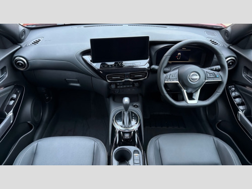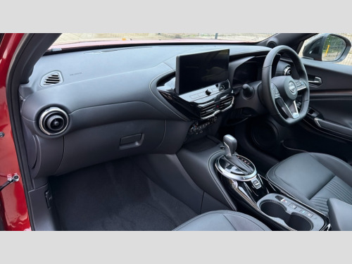 Nissan Juke 1.6 Hybrid Tekna 5dr Auto 12.3" full colour TFT screen combimeter, Drive modes select (Eco, normal and sport), e-Pedal step, Emergency and breakdown call, EV mode switch, Front parking sensor, Intelligent driver alert system, Intelligent lane intervention, Lane departure warning system, Nissan connect 12.3" touch screen entertainment system, Nissan connect nav with TomTom traffic, Nissan connect services, Outside temperature sensor, Power Steering, Rear parking sensor, Stop/start button, Traffic sign recognition, Trip computer, Voice recognition, WiFi connectivity, Wireless Apple CarPlay and Google Android auto, Wireless Smartphone charger, 10 Bose speakers 8 speakers and 2 headrest speakers for driver/passenger seats, 2 X Rear console USB port, Bluetooth system, USB, Aux-in and 12V socket, Bose personal plus audio system, DAB Digital radio, Auto dimming frameless rear view mirror, Automatic hazard signal with emergency stop signal, Body colour door handles, Electrically adjustable door mirrors with integrated indicators, Follow me home headlights, Front and rear electric window with one touch driver window, High beam assist, LED 3rd brake light, LED daytime running lights, LED headlamps, LED rear fog lamp, LED rear lamps, One touch passenger window, Rear privacy glass, Rear side wing doors, Rear wiper, Roof spoiler, Shark fin roof antenna in solid Black, Solid black door mirrors, Three blink turn signal, 3 height adjustable rear headrests, 3 seat bench in 2nd row, 60/40 split folding rear seat, Card holder on driver sunvisor, Door ambient lighting, Driver seat back pocket, Driver side rear coat hanger, Driver/passenger sunvisors and vanity mirrors, Front and rear cabin lights, Front armrest, Front door pockets with bottle holders, Front head restraints, Front/rear passenger grab handles, Gear console ambient circle lighting, Height adjustable driver's seat, Internal chrome door handles, Luggage board, Luggage space lighting, Monoform sporty seats, Multifunction steering wheel, Passenger seat back pocket, PVC fabric upholstery, Rear door bottle holders, Single front passenger seat, Smooth synthetic leather steering wheel, Synthetic leather kneepad, Synthetic leather shift knob, Telescopic steering wheel adjustment, Two cupholders in front centre console, Two rear isofix child seat anchorage points with top tether, Welcome light and console tray ambient lighting, Comfort pack - Juke, Heat pack with height adjustable passenger seats - Juke, ProPilot pack - Juke Auto, ABS with EBD and brake assist, Active ride control, Active Trace Control, Driver and passenger airbags, Driver and passenger side airbags, Electric handbrake with auto hold function, Electronic Stability Programme (ESP), Front and rear curtain airbags, Height adjustable seatbelts, Hill start assist, Intelligent emergency braking with pedestrian and cyclist recognition, Rear door child safety locks, Seatbelt reminder for driver/front passenger and rear seats, Three 3 point rear seatbelts, Traction control, Tyre pressure monitoring system, VDC Dynamic Vehicle Control, Alarm, Immobiliser, Intelligent key and start push button with walk away lock and approach unlock functions, Remote central locking, 19" Alloy wheels, Tyre puncture repair kit