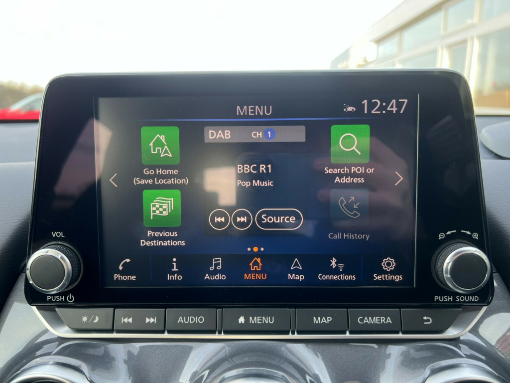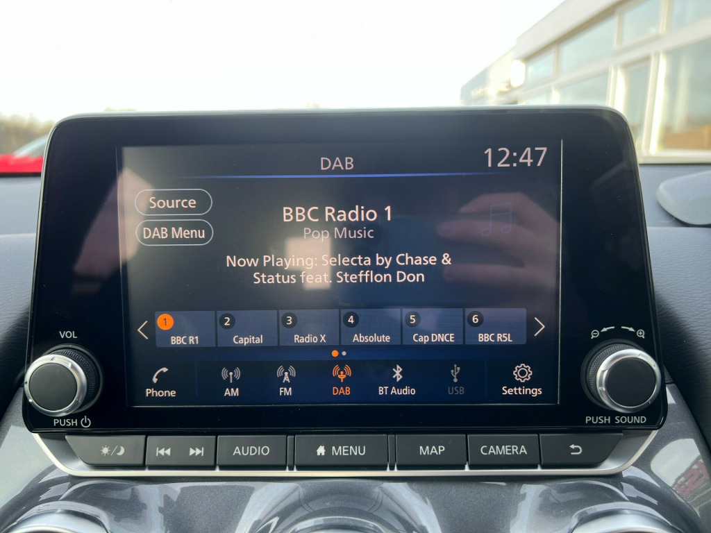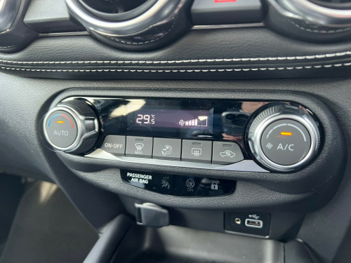 in alloy wheels, body coloured handles, electric folding and heated door mirrors, front and rear electric windows with one touch driver window, privacy glass, rear spoiler, tyre repair kit, 2 x cup holder on centre console, 3 adjustable rear head restraints, 60-40 split rear folding seats, auto dimming rear view mirror, automatic air conditioning, cabin light front and rear, card holder on drivers sun visor, chrome interior door handles, comfort pack, door ambient lighting, door and dashboard pvc embellisher, driver and passenger sun visor with illuminated vanity mirror, front armrest, front passenger one-touch electric window, front seat back pockets, front and rear door pockets with drinks bottle holders, gear console ambient circle lighting, grab handles passenger and rear, grey synthetic leather knee pad, height adjustable driver seat, leather gear knob, leather steering wheel, luggage board system, luggage space lighting, manually adjustable drivers seat - slide - recline and lifter, manually adjustable passenger seat - slide and recline, monoform sporty seats, multifunctional steering wheel, rain sensing wipers, rear hand grip with coat hanger, telescopic steering wheel adjustment, three blink turn signal, welcome light and console tray ambient lighting, 7in full colour tft screen combimeter, 8in colour display with touch screen, android auto and apple carplay, bluetooth - usb - aux - 12v socket, connected services and wifi, dab radio with 4 speakers, emergency and breakdown call, nissan connect navi with tomtom traffic, rear console usb port, speakers x6, abs with ebd and brake assist, automatic hazard signal and emergency stop signal, driver-passenger-side and curtain airbags, esp - electronic stability programme, electric parking brake with auto hold function, front seat belt height adjustment, front and rear seatbelt reminder, hill start assist, isofix child seat anchoring points - rear x2, intelligent emergency braking with pedestrian and cyclist recognition, intelligent key with start push button, intelligent lane intervention and warning, vdc - vehicle dynamic control - traction control - active trace control - active ride control, cruise control with speed limiter, drive modes - sport-normal-eco, outside temperature sensor, parking sensor - front, power assisted steering, rear parking camera, rear parking sensors, tpms - tyre pressure monitoring system, traffic sign recognition, voice recognition switch on steering wheel, headlights - follow me home function, headlights - high beam assist, led daytime running lights, led front fog lights, led headlights, led rear fog lights, led rear lights