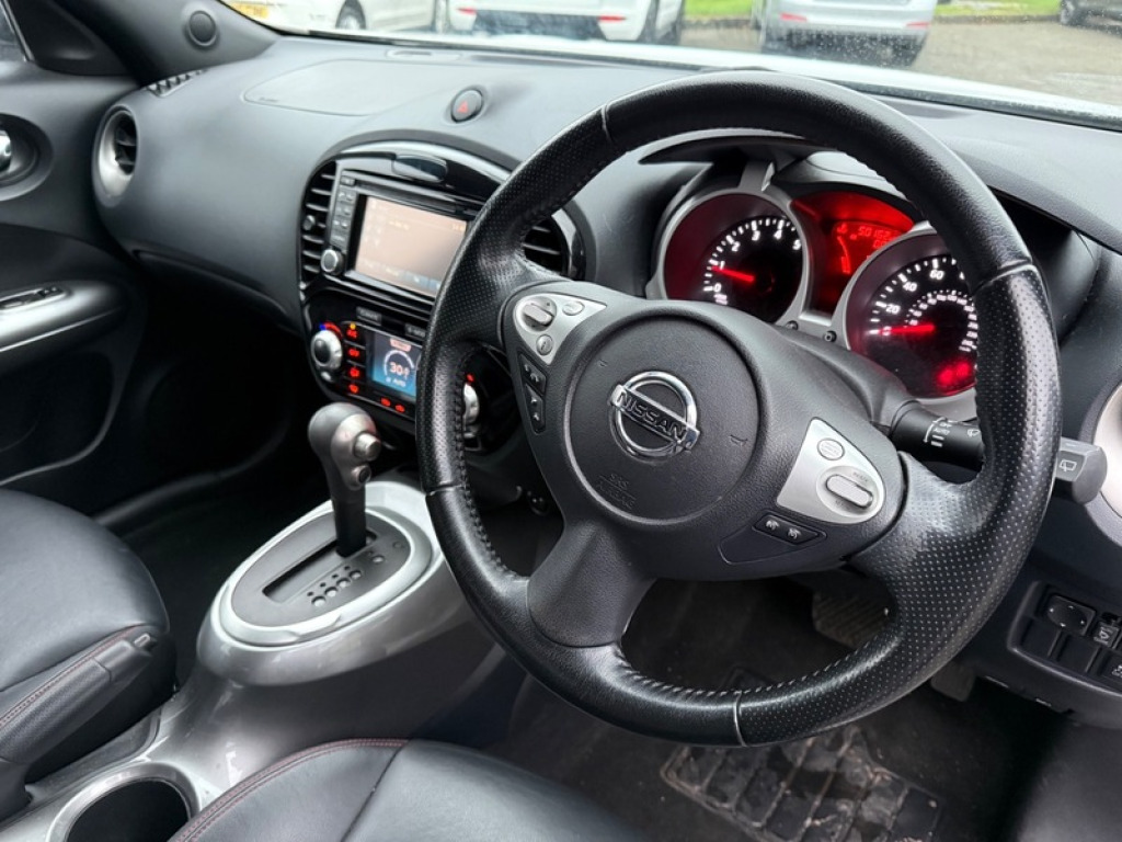 Due into stock on 5th Dec from a local BMW part ex sale a very popular great spec AUTOMATIC Petrol Juke. If you are looking for a Automatic Juke beware of the gearboxes on these as they are not very reliable when new from Nissan , this one has just had a new updated version at a cost of £2000 Sadly loss of history so we shall add a service and a years MOT when sold Also listed as a CAT N back in 2016,however a tried and tested car and a massive saving of £1000 on the same car that?s a non cat N £215 a year road tax ? Bluetooth Preparation ? Cruise Control ? Parking Sensor(s) ? Climate Control ? Leather Trim ? 17' Alloy Wheels PX Welcome We can supply you with finance,some deals available with £0 deposit,if you call Autobahn Finance on 01656 760563 and tell them what vehicle you are after , together with the Registration and Mileage they will talk you through the process and an answer within 3/4 hours Will come with our customary 3 Months National Warranty with the option to extend and 1 years FREE AA Membership as we are a AA Approved garage ABS, Adjustable Steering, Alloy Wheels, Bluetooth, Central Locking, Climate Control, Cruise Control, ESP, Electric Windows, Heated Door Mirrors, MP3, Parking Sensors, Radio, Satellite Navigation, Speakers, Traction Control