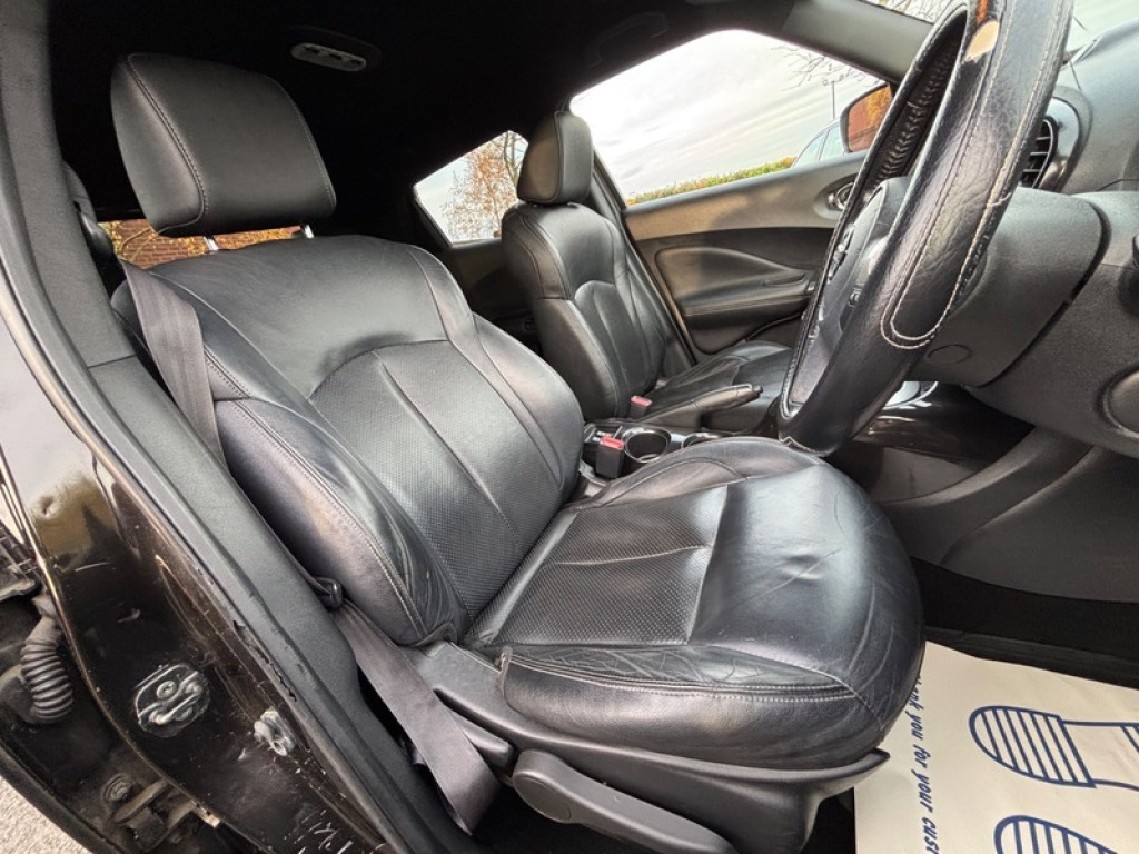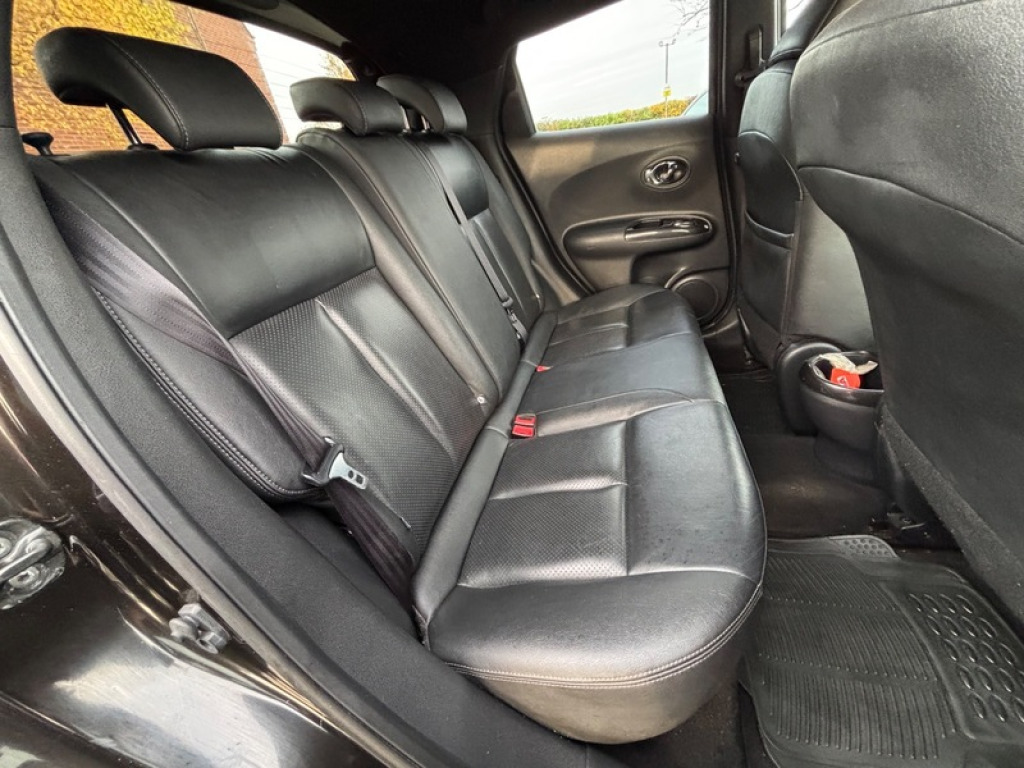 £20 ANNUAL TAX ! What a lot of motor car here for the money. No expense spared with a FULL SERVICE TODAY Including the all important timing belt kit and water pump, new back brakes, ready for a fresh 12 month MOT the day you say ?yes if course I will have her? FULL HEATED LEATHER SEATS, full colour integrated sat nav, Bluetooth aux port usb Bluetooth masses of specification. Cruise control climate control the list goes on. Lane departure warning too and 360 cameras, this one really is top of the shop. She has a comprehensive service record and as noted we have just done EVERYTHING she needs and the timing belt. So you dont have to. Only one key at the moment. This Juke is really clean, the alloys are like brand new clearly very recently refurbished, there are some small marks on the body given the age and mileage but the car is overall far better condition than you will be expecting, that I guarantee. Yes we take part exchange and arrange finance, we give 6 months nationally approved warranty on our retail cars. 17in Alloy Wheels, ABS, Adjustable Steering, Air Conditioning, Alarm, Alloy Wheels, Automatic Headlight Levelling, Automatic Rearview Mirror Dimming, Bluetooth, Body Coloured Bumpers, Brake Assist, Central Locking, Cruise Control, Cup Holders, Day/night Rearview Mirror, Daytime Running Lights, ESP, Electric Folding Mirrors, Electric Heated Seats, Electric Mirrors, Electric Windows, Engine Immobiliser, Folding Rear Seats, Front Airbags, Front Fog Lights, Heated Door Mirrors, Heated Rear Windshield, Hill-Start Assist, ISOFix Anchor Point, LED Lights, Lane Assist, Launch Control, Leather Seats, MOT, MP3, Metallic Paint, Parking Assistance, Parking Camera, Parking Sensors, Particule Filter, Power Assisted Steering, Privacy/Tinted Glass, Radio, Reading Lights, Rear Air Vents, Safety Belts, Safety Belts Rear, Satellite Navigation, Service History, Side Impact Airbags, Speakers, Start Stop System, Steering Wheel Controls, Surround Sound System, Traction Control, V5 Registration Document