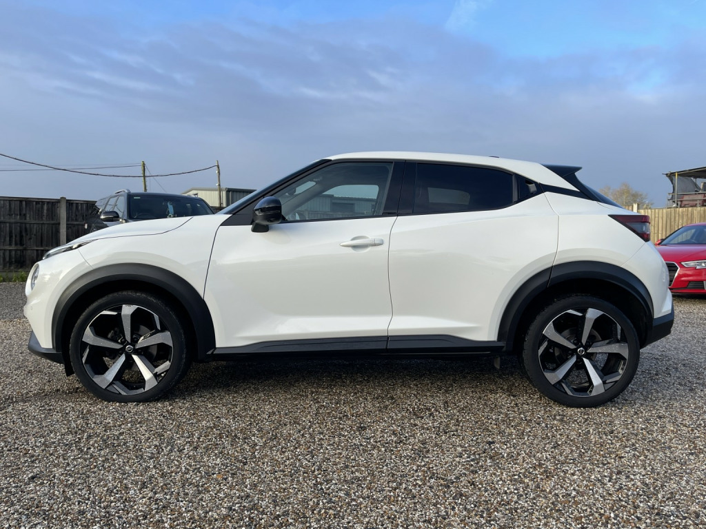 Essex Car Fleet are delighted to present this 2021 (71) Nissan Juke 1.0 DiG-T Tekna 5-Door DCT, finished in Arctic White. This stunning example boasts an impressive specification, including a 7 full-colour TFT combimeter, 8 touchscreen infotainment display, Nissan Connect Navigation with TomTom Traffic, and the Bose Personal Plus audio system for exceptional sound quality. Comfort and convenience are enhanced with automatic climate control, heated front seats, and an idle start/stop system, while safety features include front and rear parking sensors, intelligent lane intervention, and a lane departure warning system. A superbly equipped vehicle that combines style, technology, and comfort and thats just to name a few of the many features on offer. With our location based in Battlesbridge in Essex, Enjoy haggle-free buying experience where you can drive away the same day of prior arranged appointment. Please see our website for details. Call now or enquire online for a no-obligation test drive, finance quote or part-exchange valuation, 5 Star Dealer, Finance Available, Delivery Available, Part exchange Available, all cars are supplied with a 3 months warranty, 12 months MOT. Please call all a member of the team on 01268 572992 and we will be delighted to help you move your enquiry forward 5 Star Dealer, Finance Available, Delivery Available. , Our preparation team have inspected to the highest level possible for the age and mileage of vehicle, You can rest assured your car has been cared for to our highest Standard. With our location based in Battlesbridge in Essex you can enjoy a haggle-free buying experience where you can drive away the same day if prior arranged appointment. £150 admin fee applies, please see our website for details.