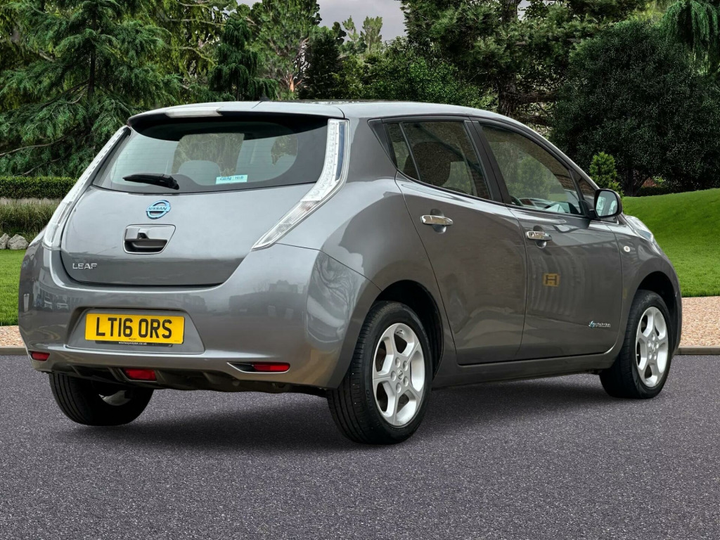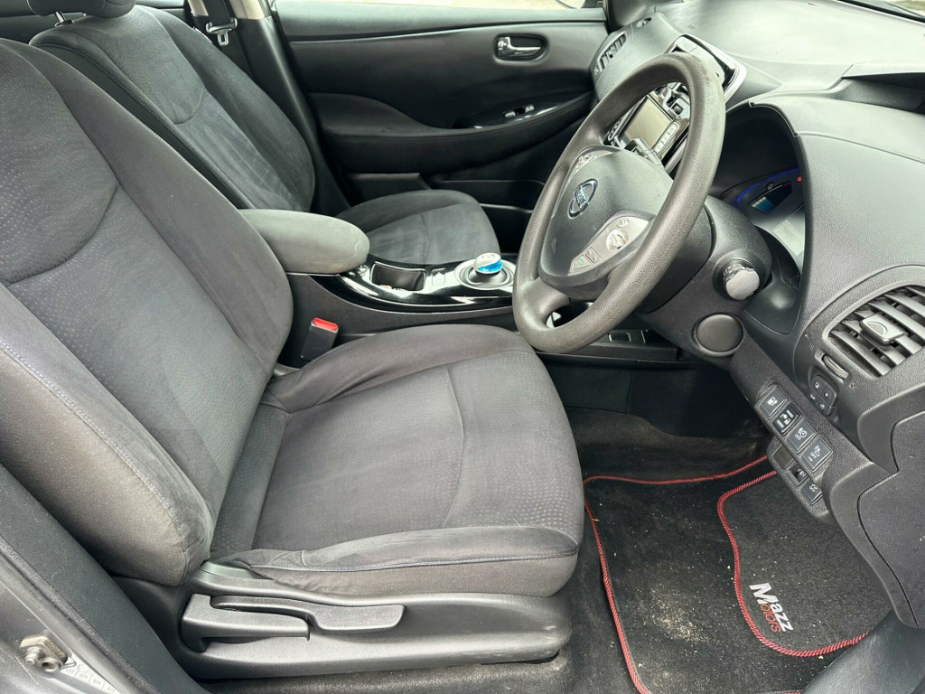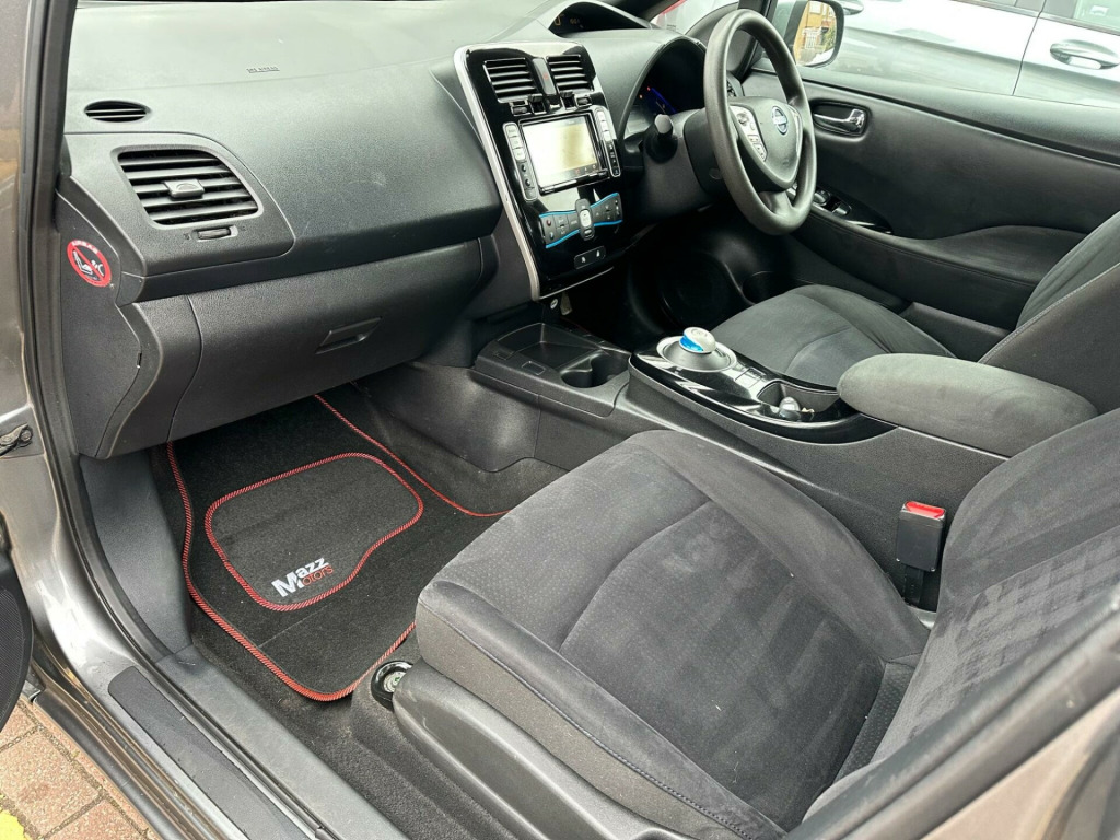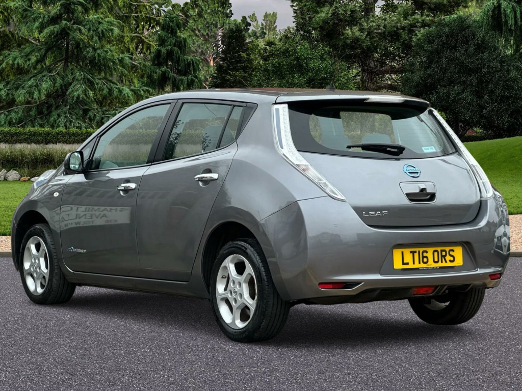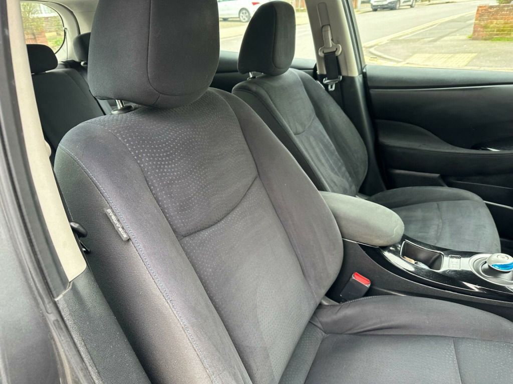 This 2016 Nissan Leaf Acenta boasts exceptionally low mileage for its age, having covered just 37,500 miles. As an electric vehicle, it offers an environmentally conscious driving experience with a 24 kWh battery providing a maximum range of 124 miles when new. Charging is convenient, taking approximately 8 hours for a full charge at home using a 7kW charger, or a rapid 30 minutes from empty to 80% at a public charging station. This Leaf comes with 12 months MOT and a clear vehicle history check, ensuring peace of mind. Notable features include energy-efficient auto air conditioning with climate control, the NissanConnect EV Telematics System with Bluetooth and rear parking camera, Nissan Intelligent Key with keyless entry and engine start button, automatic headlights, and Bluetooth telephone integration.The generous boot space in this Nissan Leaf makes it a practical choice for everyday use, easily accommodating shopping or luggage. Its electric powertrain, combined with the low mileage and comprehensive features, positions it favourably against other vehicles in its class. The inclusion of features like the rear parking camera and automatic headlights enhances both convenience and safety during your journeys. This Acenta trim level offers a well-equipped and efficient way to embrace electric motoring. v socket, 16in alloy wheels, 2 front 3 point seat belts with height adjusted - double pretensioner load limiter and reminder, 3 rear 3 point seat belts with emergency locking retractor - isofix x2, 3.3kw charger, 6 speakers, 60-40 split rear folding seats, 7 pin mode 3 type 2 cable, abs with ebd and brake assist, am-fm-cd audio system, aux socket for mp3 player, alarm - thatcham, armrest - driver, auto air conditioning with rear duct, auto rain sensing wipers, automatic headlights, bluetooth telephone integration, body coloured door mirrors, body coloured front and rear bumper, charge port illumination and remote open switch, cruise control with speed limiter, daytime running lights, deadlocking, door handles - chrome, door-boot open warning light, driver-passenger-side and curtain airbags, esp - electronic stability programme, evse cable - 3 pin - 10 amp, evse lock link to cdl, eco driving mode, eco meter, electric folding door mirrors, electric speed-sensitive power steering, energy efficient auto air conditioning - digital, external temperature sensor, front fog lights, front laminated uv reducing green glass, front seat back pockets, front seat belts with load limiter and pretensioners, front and rear electric windows, grey front centre console with 2 cup holders, halogen headlights with follow me home function, head restraints - 3 rear, head restraints - front, heat pump energy-saving cabin heating system, heated rear windscreen, height adjustable driver seat, hill start assist, ims - instant mobility system, isofix child seat anchoring points, illluminated glove box, immobiliser, nissan intelligent key with engine start button, nissanconnect ev telematics system, ptc heater - 5kw, pollen filter, rapid charge port - allowing 50kw dc charging, rear door child locks, rear green glass, rear hand grip with coat hanger, rear view camera, rear wiper, remote heating, remote timer charger, safety kit, seat belt reminder - front, steering wheel mounted audio controls, tpms - tyre pressure monitoring system, tilt adjustable steering wheel, traction control, usb - ipod connectivity, vsp - vehicle sound for pedestrians
