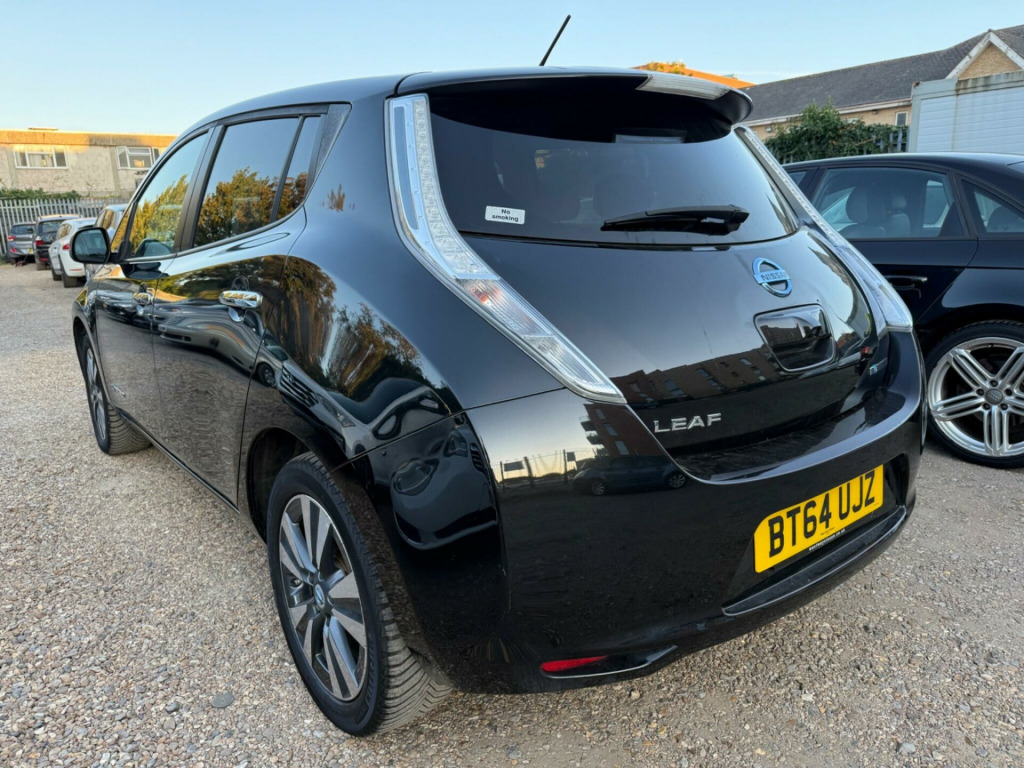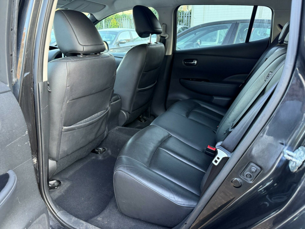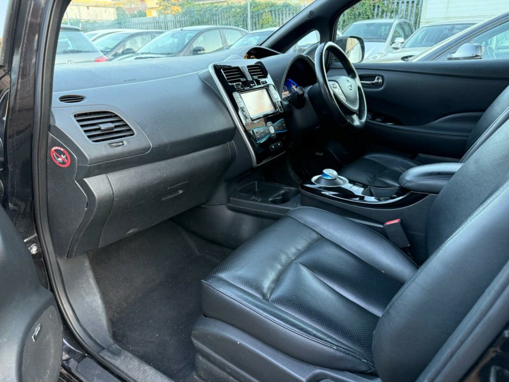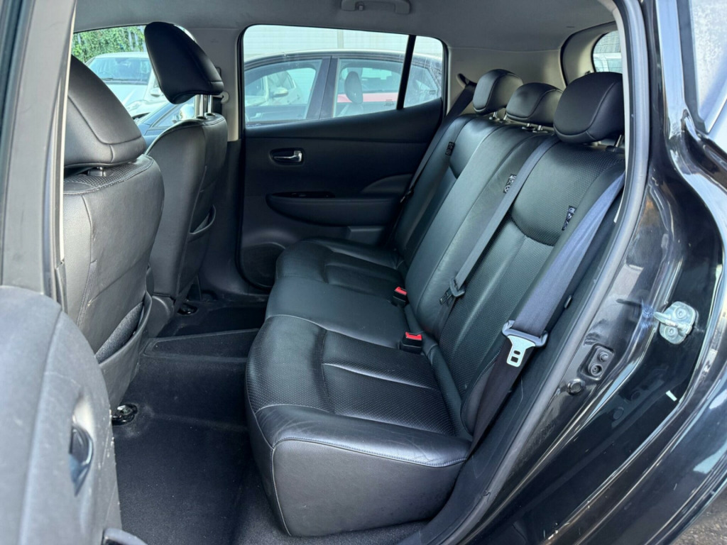 This 2014 Nissan Leaf Tekna boasts a full service history and a clear vehicle history check, offering peace of mind for its next owner. As an electric vehicle, it features a 24 kWh battery with a maximum range of 124 miles when new. Charging at home on a 7kW charger takes approximately 8 hours for a full charge, while rapid public charging can take you from empty to 80% in just 30 minutes. This Tekna model comes with a 3 month warranty and has had only 2 owners.The Nissan Leaf Tekna is equipped with a range of notable features designed to enhance your driving experience. These include an Around View Monitor for 360 degree parking assistance, energy efficient digital climate control, and Bluetooth compatibility for seamless connectivity. For added comfort, it offers heated front seats and keyless entry via the Intelligent Key system. The generous boot space provides ample room for your shopping or luggage, making this Leaf a practical choice for everyday use. ather - black, 17in alloy wheels, 3.3kw charger, 60-40 split rear folding seats, abs - anti lock brakes, airbag - driver, airbag - front passenger, airbags - curtain, airbags - side, alarm, armrest - driver, around view monitor - 360 bird-view, auto rain sensing wipers, automatic headlights, battery heater heat pump, bluetooth compatibility, body coloured door mirrors, bose audio system - speakers x7, charge port illumination and remote open switch, cruise control with speed limiter, daytime running lights, deadlocking, display screen - colour 7in, door handles - chrome, driver seat height adjustment, ebd - electronic brakeforce distribution, ev it - carwings telematics system, evse lock link to cdl, eco driving mode, eco meter, electric folding and heated door mirrors, energy efficient auto air conditioning - digital, front fog lights, front seat back pockets, front and rear electric windows, glovebox, headlights - automatic levelling, headlights - follow me home function, headlights - led, higher braking driving mode - b-mode, hill start assist, ims - instant mobility system, ims kit, isofix child seat anchoring points, illluminated glove box, immobiliser, intelligent key, ptc heater - 5kw, pollen filter, power assisted steering, push start-stop button, quick charger, radio - cd player, rapid charge port - allowing 50kw dc charging, rear hand grip with coat hanger, rear heating ducts, rear privacy glass, remote heating, remote timer charger, satellite navigation - nissan connect, seats - heated front, seats - heated rear, steering wheel - heated, steering wheel mounted audio controls, tpms - tyre pressure monitoring system, tilt adjustable steering wheel, traction control, usb - ipod connectivity, vdc - vehicle dynamic control, vsp - vehicle sound for pedestrians, voice recognition