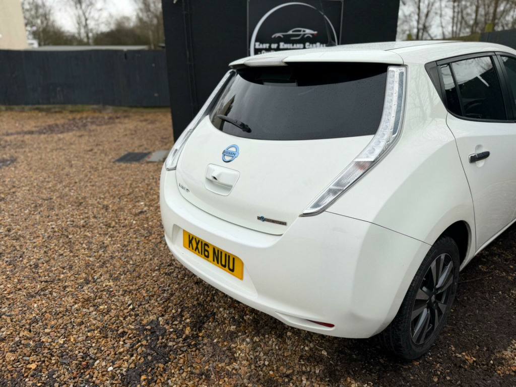 This Nissan Leaf 24kWh Tekna Auto is a fully electric hatchback offering smooth, quiet and economical motoring, ideal for city driving, commuting or anyone looking to reduce running costs. With zero emissions, £0 road tax and ULEZ compliance, it’s a fantastic choice for affordable and environmentally friendly driving.The Tekna specification is the top trim level and comes very well equipped. Features include leather interior, heated front and rear seats, heated steering wheel, Bose sound system and 360-degree cameras, providing both comfort and convenience. The automatic transmission makes driving effortless, especially in traffic or urban environments.On the road, the Leaf delivers instant electric acceleration and a refined driving experience, with excellent visibility and a comfortable ride. The 24kWh battery is well suited to daily journeys and local commuting, with easy home or public charging options available.Inside, the cabin is clean, modern and well maintained, offering a spacious interior for passengers and a practical boot for everyday use. Overall, this is a reliable, well-equipped electric vehicle that represents excellent value for money and is ready to drive away today.. 12V Socket, 17in Alloy Wheels, 2 Front 3 Point Seat Belts with Height Adjusted - Double Pretensioner Load Limiter and Reminder, 3 Rear 3 Point Seat Belts with Emergency Locking Retractor - ISOFIX x2, 3.3kW Charger, 60-40 Split Rear Folding Seats, 7 Pin Mode 3 Type 2 Cable, ABS with EBD and Brake Assist, AM-FM-CD Audio System, AUX Socket for MP3 Player, Alarm - Thatcham, Armrest - Driver, Around View Monitor - 360 Bird-View, Auto Air Conditioning with Rear Duct, Auto Rain Sensing Wipers, Automatic Headlights, Bluetooth Telephone Integration, Body Coloured Door Mirrors, Body Coloured Front and Rear Bumper, Bose Audio System - Speakers x7, Charge Port Illumination and Remote Open Switch, Cruise Control with Speed Limiter, Daytime Running Lights, Deadlocking, Door Handles - Chrome, Door-Boot Open Warning Light, Driver-Passenger-Side and Curtain Airbags, ESP - Electronic Stability Programme, EVSE Cable - 3 Pin - 10 Amp, EVSE Lock Link to CDL, Eco Driving Mode, Eco Meter, Electric Folding and Heated Door Mirrors, Electric Speed-Sensitive Power Steering, Energy Efficient Auto Air Conditioning - Digital, External Temperature Sensor, Front Fog Lights, Front Laminated UV Reducing Green Glass, Front Seat Back Pockets, Front Seat Belts with Load Limiter and Pretensioners, Front and Rear Electric Windows, Front and Rear Heated Seats, Grey Front Centre Console with 2 Cup Holders, Head Restraints - 3 Rear, Head Restraints - Front, Heat Pump Energy-Saving Cabin Heating System, Heated Rear Windscreen, Height Adjustable Driver Seat, Hill Start Assist, IMS - Instant Mobility System, ISOFIX Child Seat Anchoring Points, Illluminated Glove Box, Immobiliser, LED Headlights with Follow Me Home Function, Nissan Intelligent Key with Engine Start Button, NissanConnect EV Telematics System, PTC Heater - 5Kw, Pollen Filter, Rapid Charge Port - Allowing 50kW DC Charging, Rear Door Child Locks, Rear Green Glass, Rear Hand Grip with Coat Hanger, Rear Privacy Glass, Rear Wiper, Remote Heating, Remote Timer Charger, Safety Kit, Seat Belt Reminder - Front, Steering Wheel - Heated, Steering Wheel Mounted Audio Controls, TPMS - Tyre Pressure Monitoring System, Tilt Adjustable Steering Wheel, Traction Control, USB - iPod Connectivity, VSP - Vehicle Sound for Pedestrians. Part service history