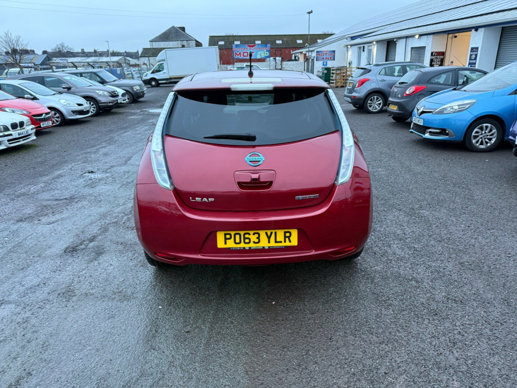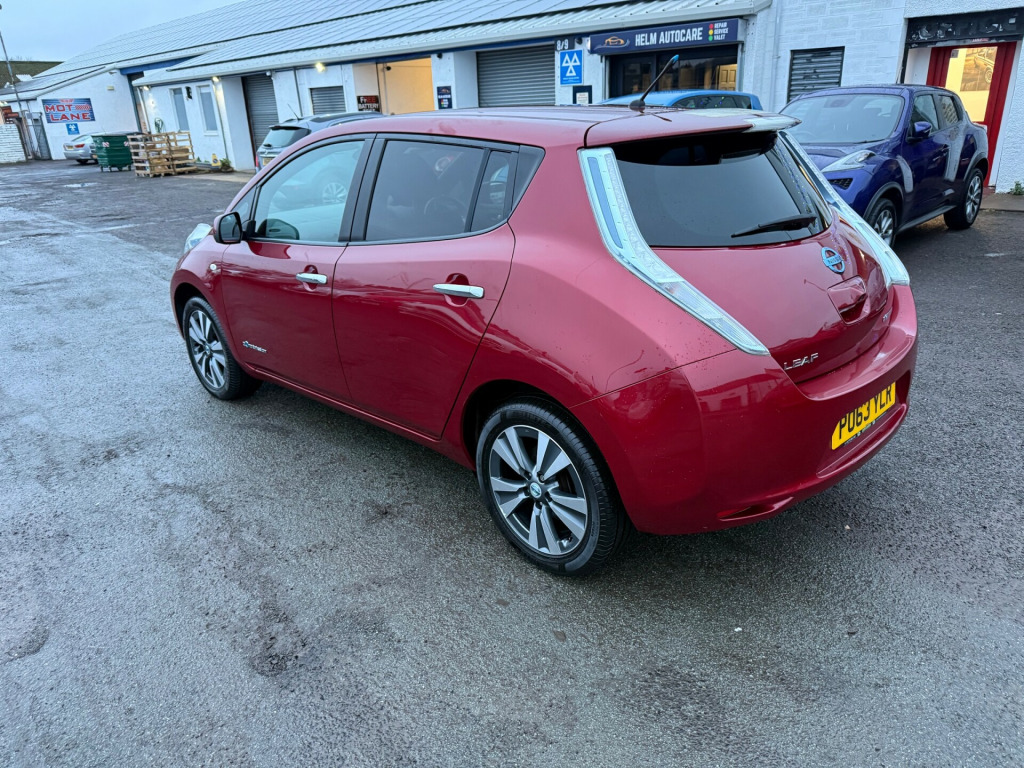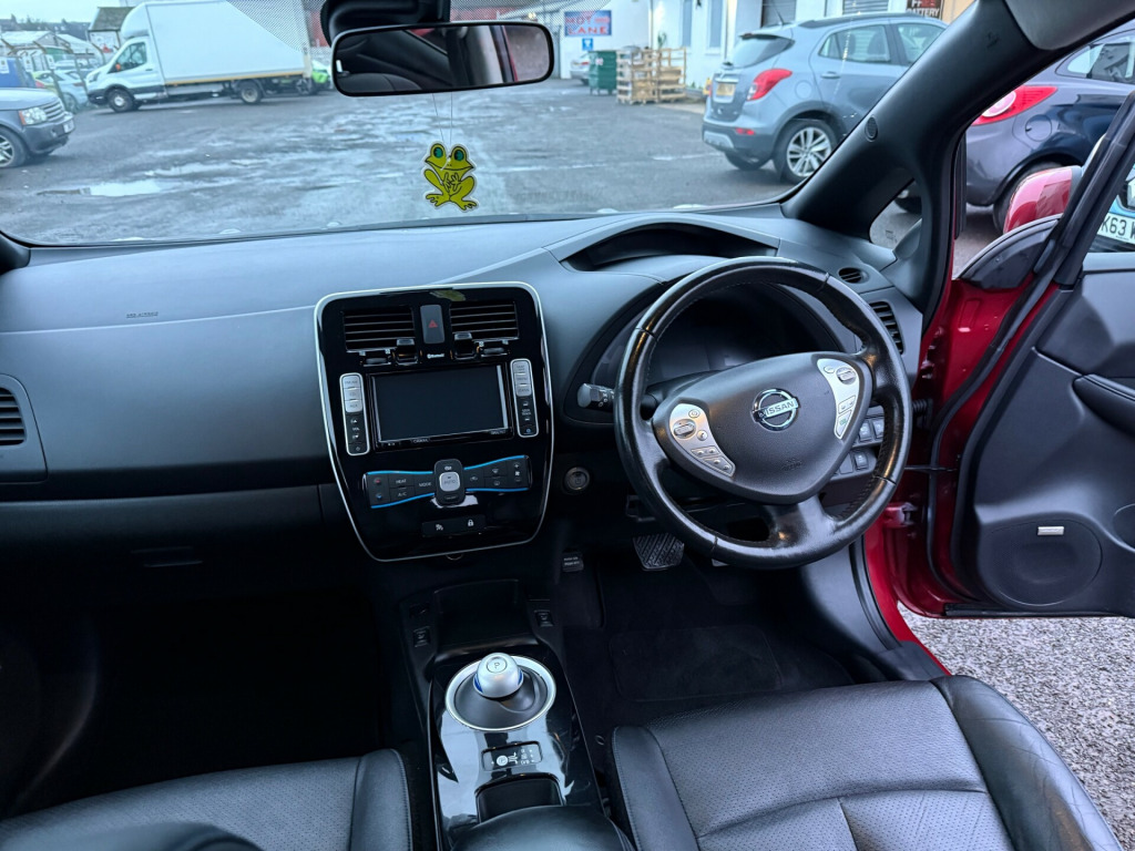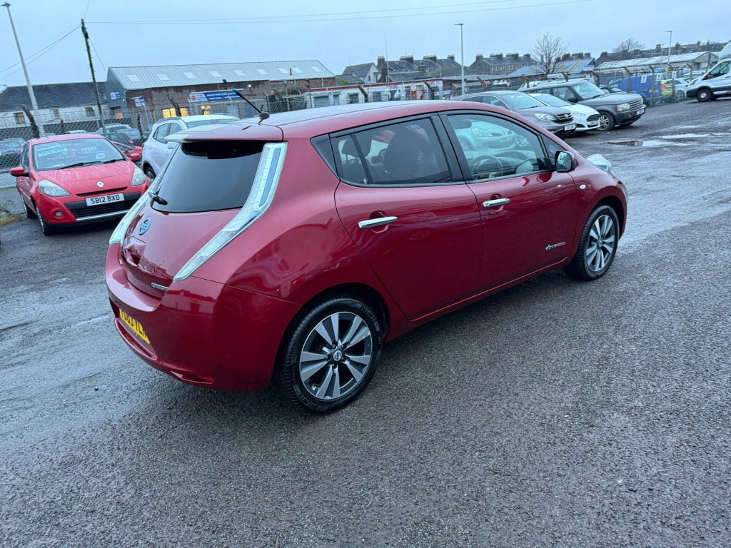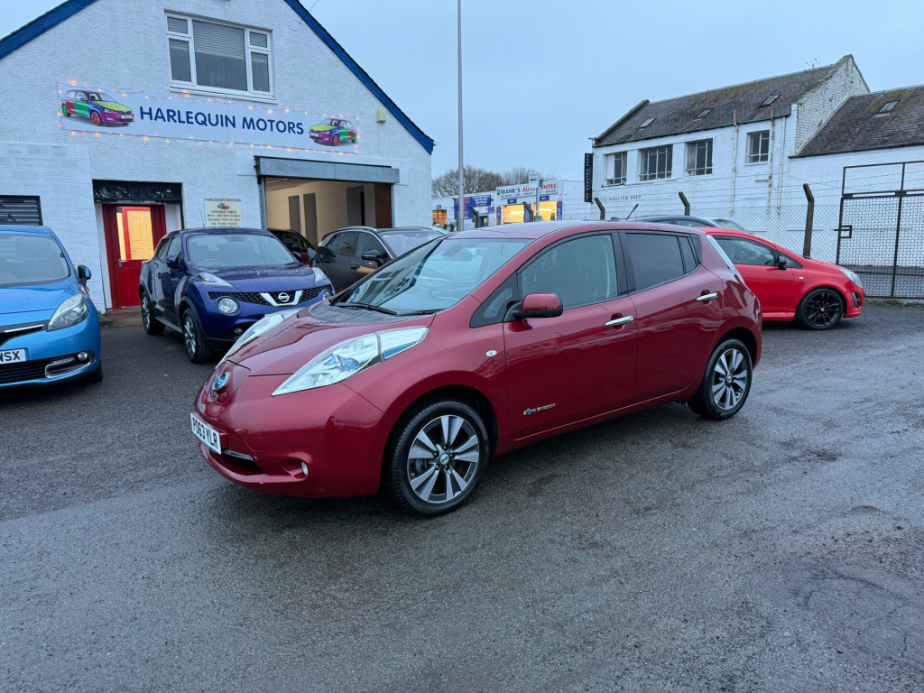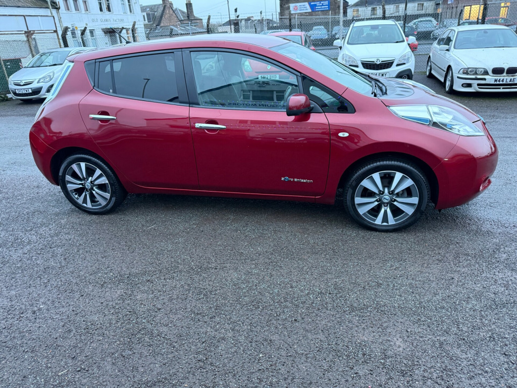 2013 Nissan Leaf Tekna 5 Door AutomaticTop of the line model with only 56k on the clock. It comes with all optional extras. 360' degree cameras. Heated steering wheel and from and rear seats, keyless entry, sat nav, LED headlights and many more. It just had 4 new tyres. Everything is in excellent working order. Both charging cables are present. It's an ideal runaround or additional car in the family. *****FINANCE AVAILABLE****To apply for finance please click the link belowThe car will be sold with . Full year MOT. Fully serviced. 3 months parts and labour warranty. Additional free service in a year or when it's next due and pre mot health checkTo view more photos visit our Facebook page Harlequin MotorsIf you have any further questions or to arrange a viewing please give us a callPlease view our other adds you might see something else that you fancyHarlequin Motors22 Old Glamis RoadDundeeDD3 8JAThank you r conditioning, bluetooth connection, climate control, colour satnav, door mirrors electrically foldable, full leather, keyless go, rain-sensing wipers, satellite navigation, usb/ipod interface, adjustable steering column, cruise control, digital instrument cluster, esp, multi-function steering wheel, parking camera, power steering, stability control, traction control, trip computer, abs, air bag, brake assist, child locks, curtain airbags, isofix child seat anchor points, multiple airbags, passenger airbag, quick-clear screen, side air bags, twin air bags, tyre pressure monitor, bose, cd player, radio, radio/cd, steering wheel audio controls