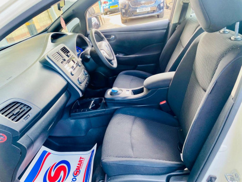 This is a 2015 Nissan Leaf Visia, an electric car, and it comes in the Visia trim. It has only had two owners and has a clear vehicle history check. The car is equipped with automatic air conditioning, which includes climate control, ensuring a comfortable environment inside. Bluetooth compatibility is included for hands-free connectivity. The intelligent key system provides keyless entry, adding to the convenience. The 24 kWh battery offers a maximum range of 124 miles when new. Charging at home using a 7kW charger takes approximately 8 hours for a full charge. For quicker top-ups, public charging can take the battery from empty to 80% in just 30 minutes. The Leaf also boasts a large boot space, making it more practical than other similar vehicles.