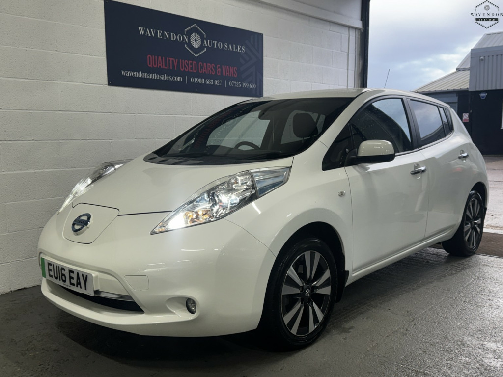 Wavendon Auto Sales are pleased to offer this 2016 Nissan Leaf 30KWH electric vehicle. , Well maintained, this Nissan Leaf has a good battery health and drives well. The in car entertainment system has limited functions and as such the touch screen Navigation system and Bluetooth phone function is unavailable. , You have access to Radio controls via the steering wheel and facia buttons. , Approximate range is 70-80 miles on a full charge. Comes complete with 2 keys and both Type 1-Type2 and 3 pin domestic charging cables. , Zero Emission vehicle, cheap to run, easy to drive. , Heated leather seats, climate control, Eco mode. Auto headlights and wipers, reverse parking camera.