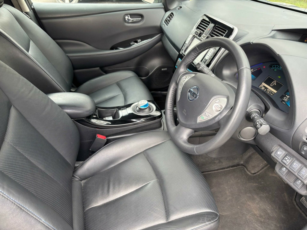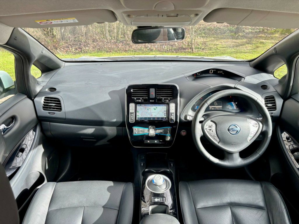 This absolutely delightful Nissan Leaf Tekna has a full service history and a mass of receipts in support. This electric vehicle features a 30 kWh battery and comes with both a fast charge cable as well as a simple home plug in cable for overnight or schedule. As a 'TOP OF RANGE' car it has all the best spec - full leather, heated stearing wheel and seats back and front, as well as Bose Sound around View Monitor for 360 degree parking assistance, Bluetooth telephone integration, and the NissanConnect EV Telematics System AND MUCH MORE! You'll also appreciate the Nissan Intelligent Key with push button start and keyless entry. Iy looks great with bodywork and interior in terrific shape. Even the Diamond cut alloys look great. A joy to drive and for anyone wanting to start electric this is a great buy. A simply Superb '2nd Car'for not a huge price- and only £20 road taxCall us now or see more pictures and vehicle information on our website https://www.thatchersmotors.co.uk. Still not sure? Please read OUR GOOGLE REVIEWS.*** All of our vehicles are fully prepared, HPI Clear and we do try to show the vehicle as well as we can so no horrible surprises or feelings of disappointment when you arrive to view. Also, as there are often more vehicle pictures - as well as additional vehicles on our own website https://www.thatchersmotors.co.uk feel free to take a look around. Bare in mind that we sell cars and vans across the entire UK, so if you're not local to us, don't worry, we can provide full HD videos upon request. Know exactly what you're getting before you set out on a long journey. Mechanical inspections are carried out and any mechanical defects are rectified. (Extended Warranties available). Every vehicle will be valeted to a high standard before handover.***ONE FINAL THING- SOME OF OUR VEHICLES MAY NOT BE PRESENT ON SITE SO, PLEASE CALL US BEFORE SETTING OFF *** Finally, we at Thatchers look forward to meeting you *** P.S. We PURCHASE cars too!! So even if you don't buy from us we may be just the place for you to sell to *** v socket, 17in alloy wheels, 2 front 3 point seat belts with height adjusted - double pretensioner load limiter and reminder, 3 rear 3 point seat belts with emergency locking retractor - isofix x2, 3.3kw charger, 60-40 split rear folding seats, 7 pin mode 3 type 2 cable, abs with ebd and brake assist, am-fm-cd audio system, aux socket for mp3 player, alarm - thatcham, armrest - driver, around view monitor - 360 bird-view, auto air conditioning with rear duct, auto rain sensing wipers, automatic headlights, bluetooth telephone integration, body coloured door mirrors, body coloured front and rear bumper, bose audio system - speakers x7, charge port illumination and remote open switch, cruise control with speed limiter, daytime running lights, deadlocking, door handles - chrome, door-boot open warning light, driver-passenger-side and curtain airbags, esp - electronic stability programme, evse cable - 3 pin - 10 amp, evse lock link to cdl, eco driving mode, eco meter, electric folding and heated door mirrors, electric speed-sensitive power steering, energy efficient auto air conditioning - digital, external temperature sensor, front fog lights, front laminated uv reducing green glass, front seat back pockets, front seat belts with load limiter and pretensioners, front and rear electric windows, front and rear heated seats, grey front centre console with 2 cup holders, head restraints - 3 rear, head restraints - front, heat pump energy-saving cabin heating system, heated rear windscreen, height adjustable driver seat, hill start assist, ims - instant mobility system, isofix child seat anchoring points, illluminated glove box, immobiliser, led headlights with follow me home function, nissan intelligent key with engine start button, nissanconnect ev telematics system, ptc heater - 5kw, pollen filter, rapid charge port - allowing 50kw dc charging, rear door child locks, rear green glass, rear hand grip with coat hanger, rear privacy glass, rear wiper, remote heating, remote timer charger, safety kit, seat belt reminder - front, steering wheel - heated, steering wheel mounted audio controls, tpms - tyre pressure monitoring system, tilt adjustable steering wheel, traction control, usb - ipod connectivity, vsp - vehicle sound for pedestrians, leather - black