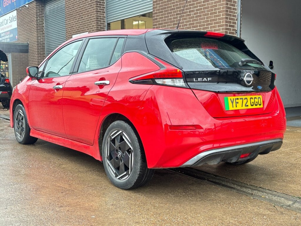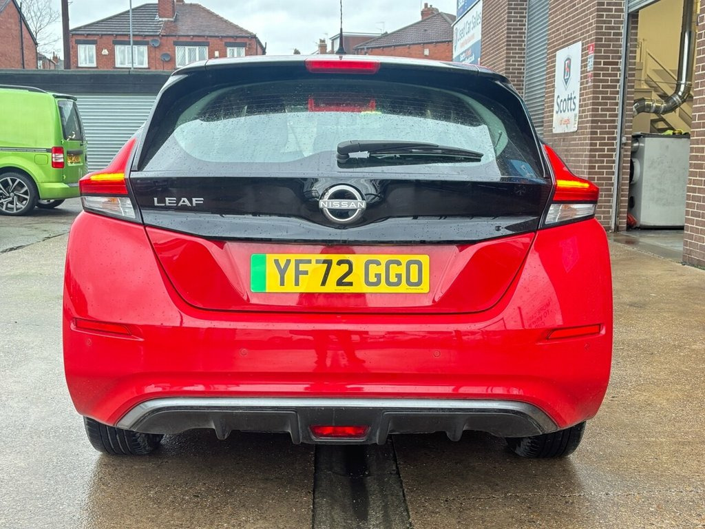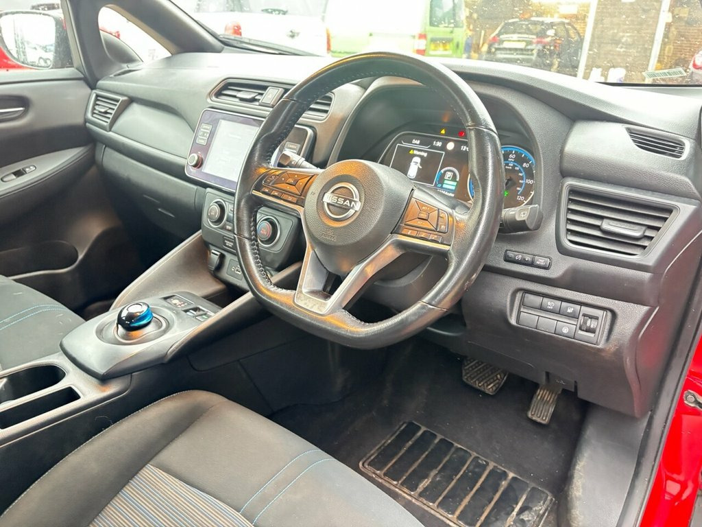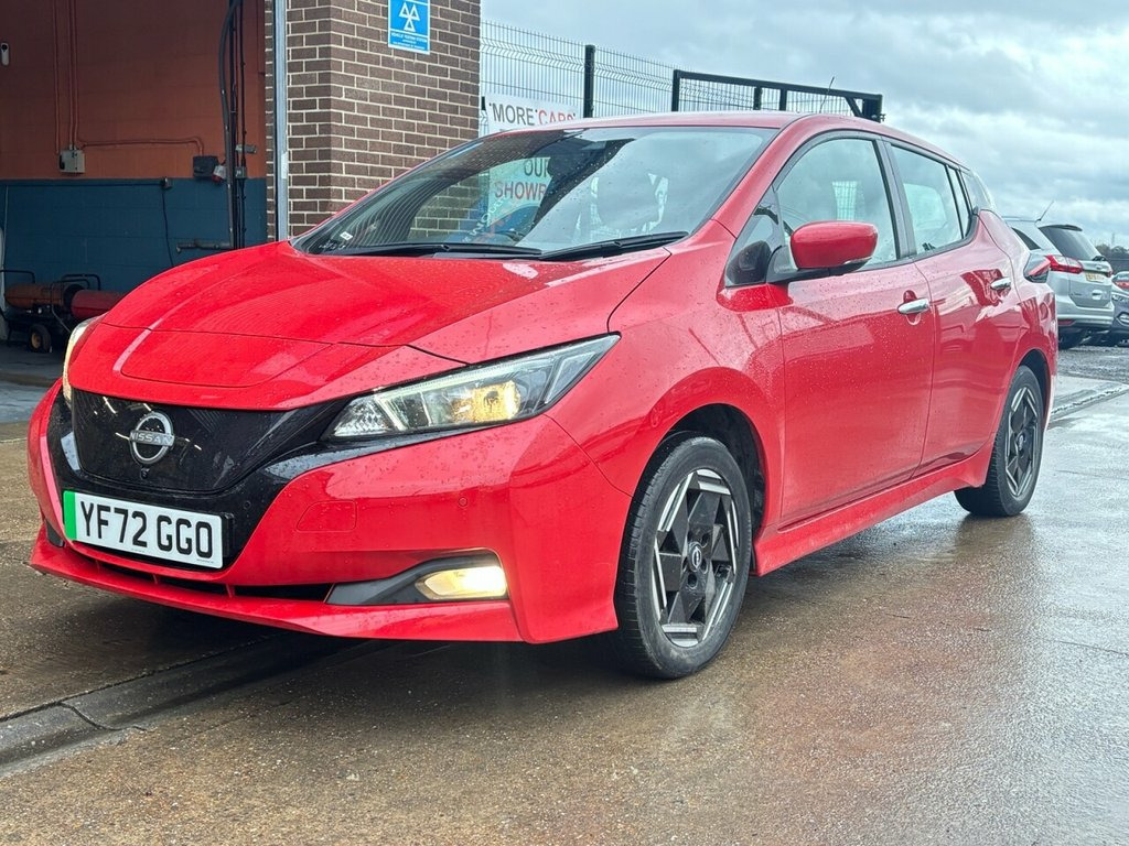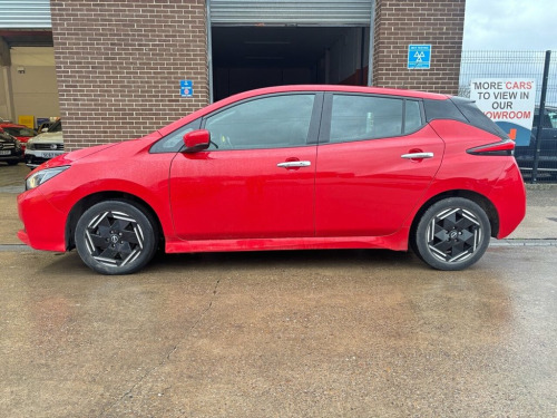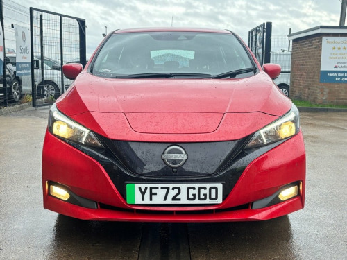 Scott's of Leeds used Car Sales are pleased to offer this NISSAN LEAF 39kWh Acenta Hatchback 5 Door Electric Automatic in Red. The car is in good condition throughout, in a lovely colour combination and a great specification including adaptive cruise control, Speed limiter, DAB radio, Bluetooth, apple carplay, AUX and USB, 360 reverse camera, Front and Rear parking sensors, automatic lights and wipers, alloy wheels, isofix, Keyless entry, Pushbutton start, and much much more. 1 Owner from New supplied with an up to date service record including 4 services, an MOT until November 2026 and 2 Keys ready to drive away. 3 MONTH NATIONWIDE WARRANTY provided with all vehicles. NATIONWIDE DELIVERY also available. A guaranteed 12 Months MOT can be added for an extra £100. DISCLAIMER: The above specification is true and correct. Any other specification listed elsewhere can sometimes be incorrect. Please check with Sales Executive to clarify this if needed prior to purchase. 16in Alloy Wheels - Black Diamond Cut, 50kW CHAdeMO Quick Charger, 6 Airbags, 6.6kW AC On Board Charger, 6m Type 2 Cable, 7in Combimeter, 8in Colour Display with Touch Screen, ABS with EBD and Brake Assist, Alarm - Thatcham, Android Auto and Apple CarPlay, Audio System with 6 Speakers, Auto Hazard Lights, Automatic Climate Control with Pollen Fi, Blind Spot Intervention, Bluetooth with Audio Streaming, Body Coloured Door Mirrors, Charging Port Remote Opening, Digital Radio - DAB, Door Handles - Chrome, E-Pedal, ESP - Electronic Stability Programme, Electric Power Steering, Electrically Driven Intelligent Braking , Front Electric Windows, Front Fog Lights, Headlights - Follow Me Home Function