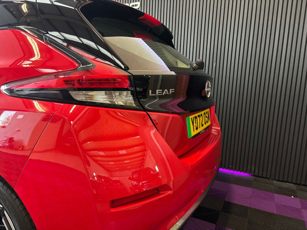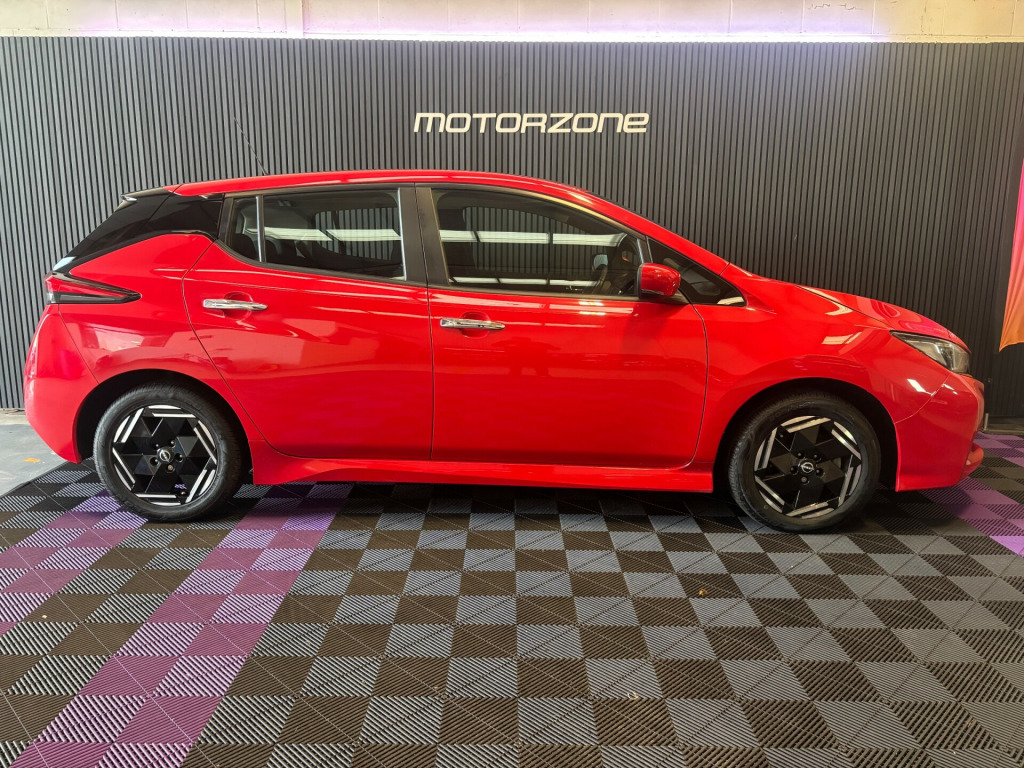 Check out this 2022 Nissan LEAF 39kWh Acenta Hatchback with 24686 miles on the clock. This electric vehicle comes with 5 seats and 5 doors, making it a practical choice for everyday use. With its MOT valid until 04/08/2026 and ULEZ compliant status, you can have peace of mind knowing that it meets the necessary requirements. The 150 ps engine provides a smooth and efficient drive, while the included features like 16in Alloy Wheels, Charging Port Remote Opening, and Front Electric Windows add convenience and style. This car is perfect for those looking for a reliable and eco-friendly hatchback that doesn't compromise on performance. in alloy wheels - black diamond cut, body coloured door mirrors, charging port remote opening, door handles - chrome, front electric windows, integrated turn signals in mirrors, rear bumper finisher - grey, roof spoiler - aero, 50kw chademo quick charger, 6.6kw ac on board charger, 6m type 2 cable, blind spot intervention, e-pedal, electric power steering, intelligent cruise control, lane departure warning, macpherson strut front suspension and twist beam axle rear suspension, rear view camera, speed limiter, tpms - tyre pressure monitoring system, 6 airbags, abs with ebd and brake assist, alarm - thatcham, auto hazard lights, esp - electronic stability programme, electrically driven intelligent braking system, hill start assist, isofix on rear, immobiliser, intelligent emergency braking with pedestrian recognition, intelligent key with start push button, intelligent lane intervention, intelligent ride control, intelligent trace control, rear cross traffic alert, rear door child locks, remote central locking with deadlocking, 7in combimeter, automatic climate control with pollen filter and timer, illuminated charge port, leather steering wheel, multifunctional steering wheel, rain sensing windscreen wipers, telescopic steering wheel adjustment, 8in colour display with touch screen, android auto and apple carplay, audio system with 6 speakers, bluetooth with audio streaming, digital radio - dab, rear usb ports, usb port, front fog lights, headlights - follow me home function, headlights - high beam assist, intelligent auto headlights, led signature daytime running lights, led signature tail lights