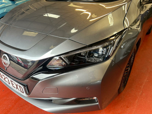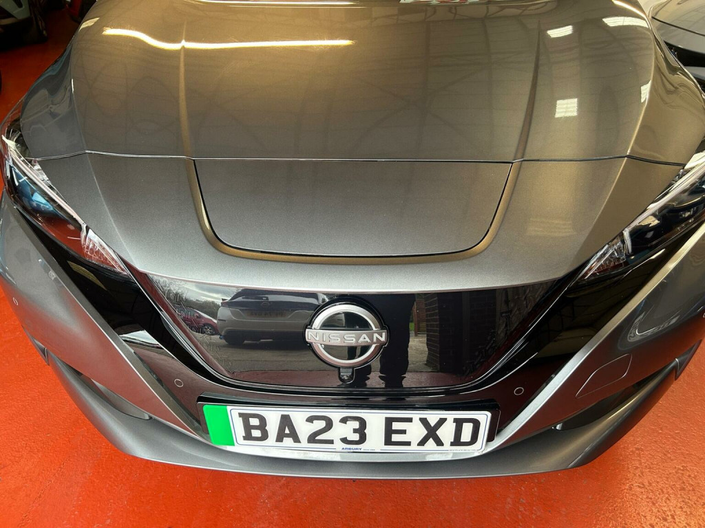 This 2023 Nissan Leaf Tekna presents an exceptional ownership proposition with its remarkably low mileage of just 7617 miles, having been cherished by only one owner since new. As a fully electric vehicle, it boasts a 41 kWh battery offering a maximum range of 168 miles when fully charged. Recharging at home with a 7kW charger takes approximately 7 hours and 30 minutes, while rapid public charging can take the battery from empty to 80% in around 1 hour and 20 minutes. This Tekna trim level is further enhanced by the Tech Pack, which includes a 360 degree camera system along with front and rear parking sensors for effortless manoeuvring. The Heat Pack ensures comfort in all seasons with heated seats and a heated steering wheel, complemented by automatic climate control with a pollen filter and timer. Further enhancing the driving experience are intelligent cruise control with adaptive capabilities and seamless integration of Android Auto and Apple CarPlay, keeping you connected and in control. The Nissan Leaf also offers a generous boot space, making it a practical choice for everyday needs and longer journeys. These carefully selected features and its outstanding provenance demonstrate how this particular Nissan Leaf Tekna stands out, offering a refined and efficient electric motoring experience that is both economical and enjoyable.