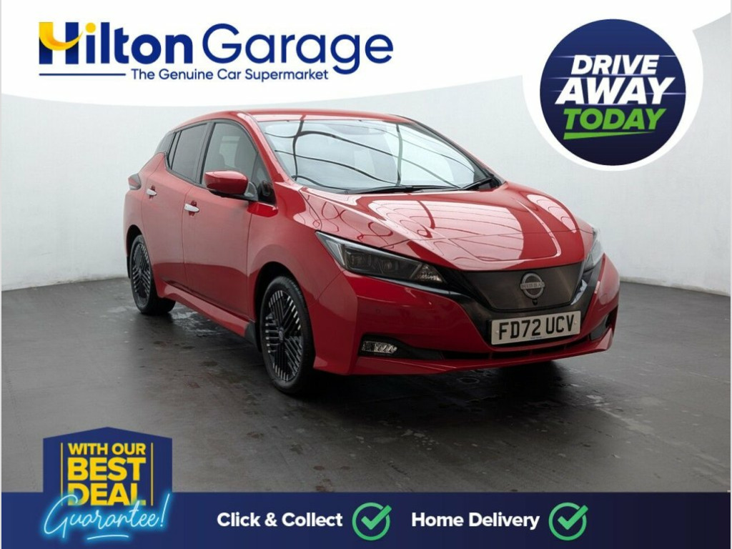 17" alloys, Navigation, Hill start assist, Bluetooth and Rear privacy glass. 2 services - last service done at 8425 miles on 28/08/2024. Discover this exceptional 2022 Nissan Leaf Tekna, boasting remarkably low mileage for its age at just 10,538 miles. This electric Tekna variant offers a substantial 41 kWh battery, providing a maximum range of 168 miles when new. Recharging at home on a 7kW charger takes approximately 7 hours and 30 minutes, while rapid public charging can take you from empty to 80% in just 1 hour and 20 minutes. This Nissan Leaf Tekna comes equipped with a host of desirable features that set it apart. Enjoy immersive sound with the BOSE Premium Audio System featuring 7 speakers, and stay comfortable year round with the Heat Pack, including heated seats and a heated steering wheel. The LED Pack ensures excellent visibility with LED headlights, while seamless connectivity is provided by Bluetooth with Audio Streaming, and compatibility with Android Auto and Apple CarPlay. Furthermore, you'll appreciate the generous boot space, making it a practical choice for everyday life and longer journeys. 17in Alloy Wheels - Black Diamond Cut, 50kW CHAdeMO Quick Charger, 6 Airbags, 6.6kW AC On Board Charger, 6m Type 2 Cable, 7in Combimeter, 8in Colour Display with Touch Screen, ABS with EBD and Brake Assist, Alarm - Thatcham, Android Auto and Apple CarPlay, Auto Dimming Rear View Mirror, Auto Hazard Lights, Automatic Climate Control with Pollen Fi, Blind Spot Intervention, Bluetooth with Audio Streaming, Body Coloured Door Mirrors, BOSE Premium Audio System with 7 Speaker, Charging Port Remote Opening, Digital Radio - DAB, Door Handles - Chrome, E-Pedal, Electric Power Steering, Electrically Driven Intelligent Braking , Energy-Saving Cabin Heating System with , ESP - Electronic Stability Prog