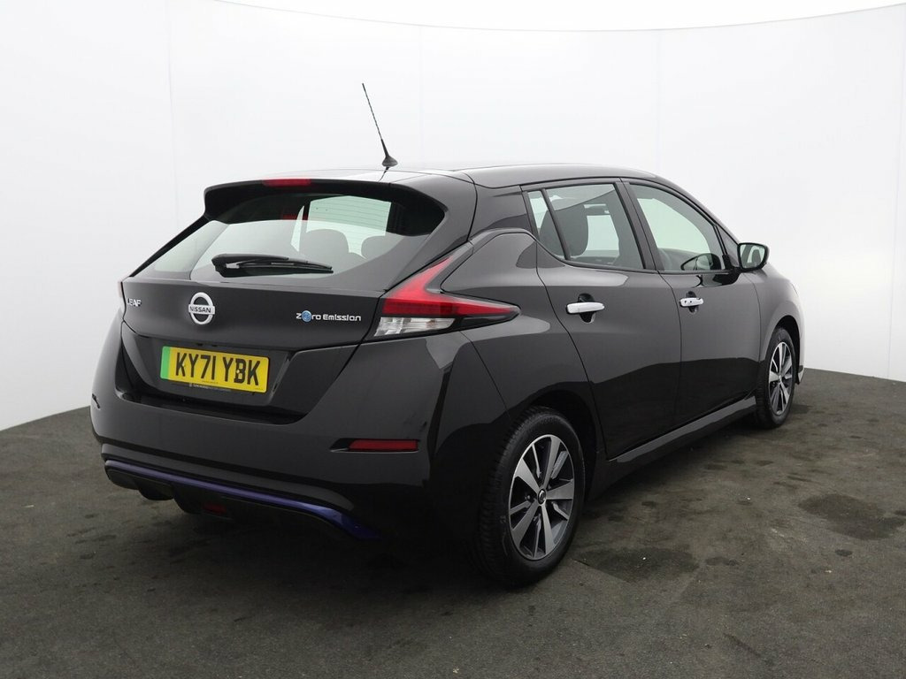 This 2021 Nissan Leaf Acenta presents an exceptional opportunity with remarkably low mileage for its age, having covered just 17,543 miles. As an electric vehicle, it offers a smooth and quiet driving experience, powered by a 40 kWh battery that provides a maximum range of 168 miles when new. Recharging at home with a 7kW charger takes approximately 7 hours and 30 minutes, while rapid public charging can take the battery from empty to 80% in just 1 hour and 20 minutes. This particular Leaf benefits from a long MOT, offering peace of mind for the coming years. The Acenta trim level comes equipped with a suite of intelligent features designed to enhance your driving. These include a Rear View Camera for easier parking assistance, Blind Spot Intervention and Warning systems to help you navigate traffic safely, and Intelligent Cruise Control for relaxed journeys. Automatic headlights that switch on when needed are also included. Furthermore, the Nissan Leaf boasts a generously sized boot, providing ample space for shopping, luggage, or any other items you need to carry, making it a practical choice for everyday use and longer trips. 12V Socket, 8in Touchscreen Entertainment System, Audio System with 6 Speakers, DAB Radio with Apple CarPlay and Android, USB Port, 16in Alloy Wheels, Body Coloured Door Mirrors, Door Handles - Chrome, Front and Rear Electric Windows, Integrated Turn Signals in Mirrors, Manual Folding Mirrors, Metallic Blue Rear Bumper Accents, 7in Combimeter, Automatic Air Conditioning, Front Seat Back Pockets, Illuminated Charge Port, Leather Steering Wheel, Manually Adjustable Drivers Seat - Slide, Manually Adjustable Passenger Seat - Sli, Rain Sensing Windscreen Wipers, Steering Column - Rake and Reach, 50kW CHAdeMO Quick Charger, 6.6kW AC On Board Charger, E-Pedal, Electric Power Steering, EVSE 6M or Mo