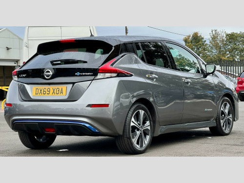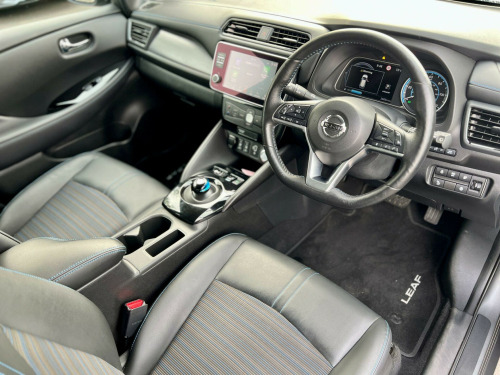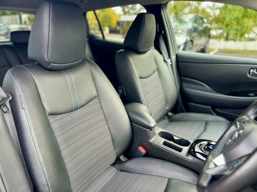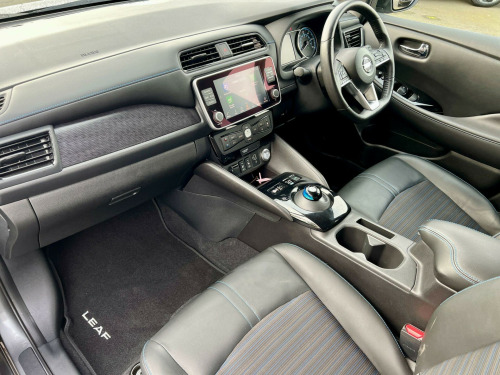 This 2020 Nissan Leaf N-Connecta boasts exceptionally low mileage, having covered just 2600 miles, and has had only one owner from new. As an electric vehicle with a 40 kWh battery, it offers a maximum range of 168 miles when new. Charging is convenient, with a full charge at home taking approximately 7 hours and 30 minutes using a 7kW charger, while rapid public charging can replenish the battery from empty to 80% in around 1 hour and 20 minutes. This N-Connecta model comes equipped with Intelligent Auto Headlights featuring a Follow Me Home Functionality and Auto Hazard Lights, alongside Intelligent Cruise Control with adaptive capabilities.Further enhancing the driving experience are the Tech Pack features, including a 360 degree camera system with front and rear parking sensors for effortless manoeuvring, and Blind Spot Warning to provide an extra layer of safety. The cabin benefits from Automatic Air Conditioning for consistent comfort. The generous boot space is a practical highlight, offering ample room for luggage or shopping. These features, combined with its minimal use and single ownership, position this Nissan Leaf as an outstanding choice compared to other vehicles of its type., v socket, 17in alloy wheels, 3 pin evse charging cable, 50kw chademo rapid charger, 6 speakers, 6.6kw ac on board charger, 60-40 split folding rear seats, 7in tft screen combimeter, abs with ebd and brake assist, am-fm-dab audio system, aux socket, alarm - thatcham, android auto and apple carplay, auto dimming rear view mirror, auto wipers, automatic air conditioning, blind spot warning, body coloured door mirrors with integrated led indicators, door handles - chrome, driver - passenger - side - curtain airbags, e-pedal, esp - electronic stability programme, ev connect telematics system, electric folding door mirrors, electric power steering, front centre console and armrest, front fog lights, front seat back pockets, front and rear electric windows, gloss black b-pillar, halogen headlamps with led signature, headlights - high beam assist, heat pack, heat pump, hill start assist, isofix child seat anchoring points - front and rear, illuminated charge port, intelligent auto headlights with follow me-home functionality and auto hazard lights, intelligent cruise control, intelligent emergency braking with pedestrian recognition, intelligent lane intervention, intelligent trace control, led signature daytime running lights, led signature tail lights, lane departure warning, leather d shaped steering wheel, manually adjustable drivers seat - slide - recline and lifter, manually adjustable passenger seat - slide and recline, metallic blue rear finisher, mode 3 type 2 charging cable, nissan connect evo 8in touchscreen navigation and entertainment system, nissan i-key, rear cross traffic alert, rear privacy glass, rear view camera, remote audio control, speed limiter, start push button, tech pack, tilt adjustable steering wheel, traction control, usb port